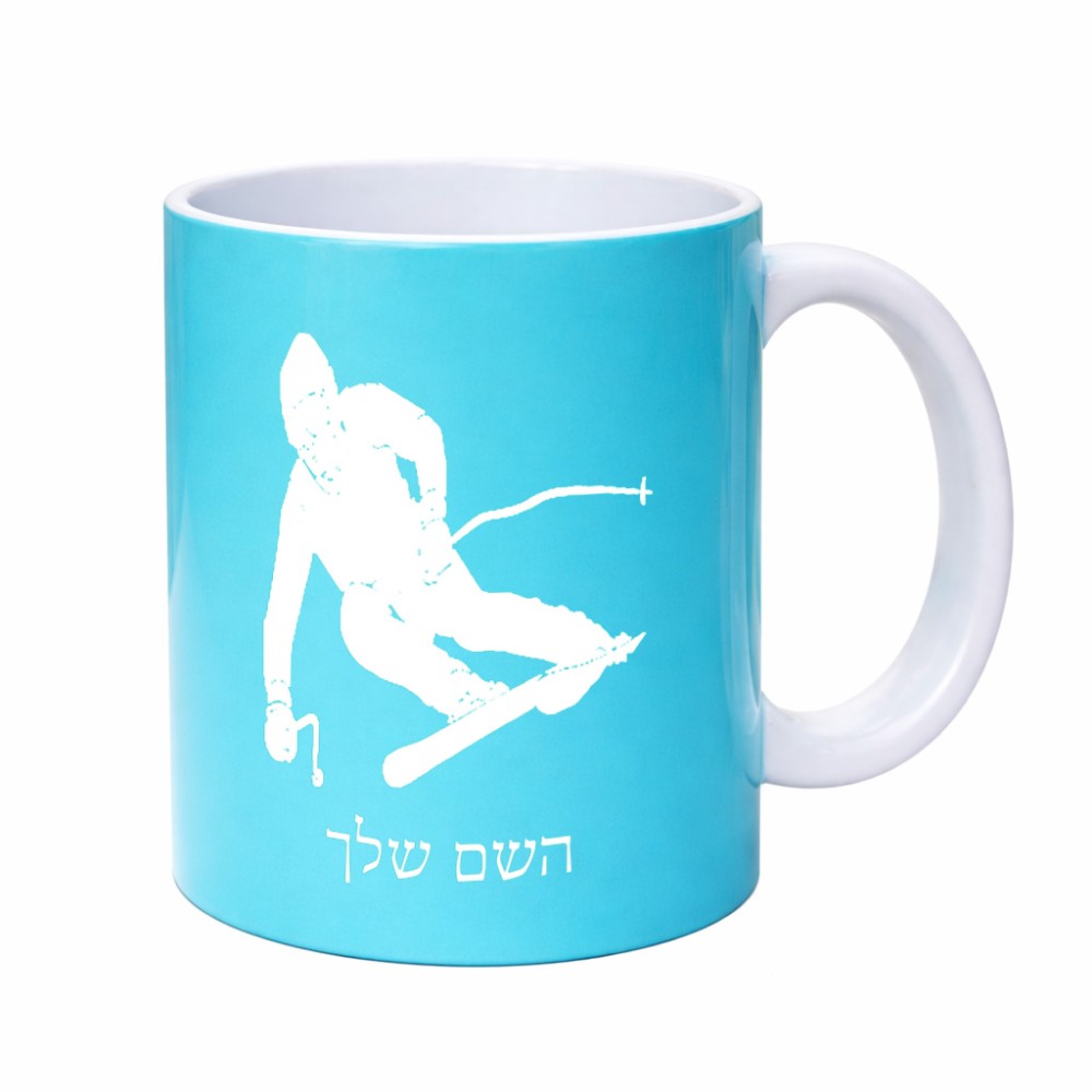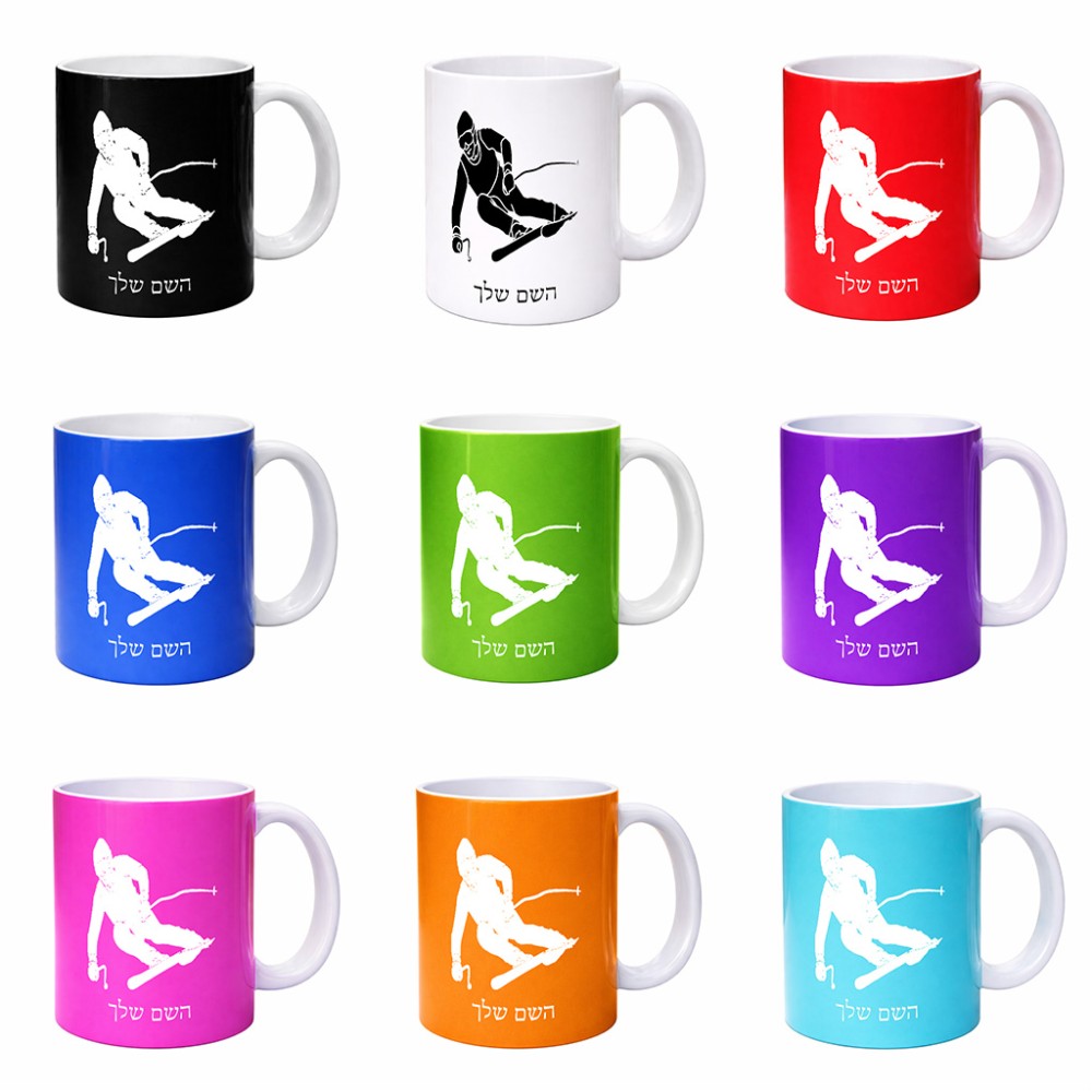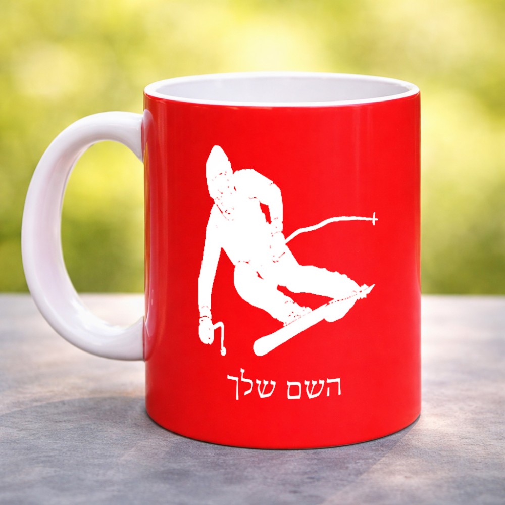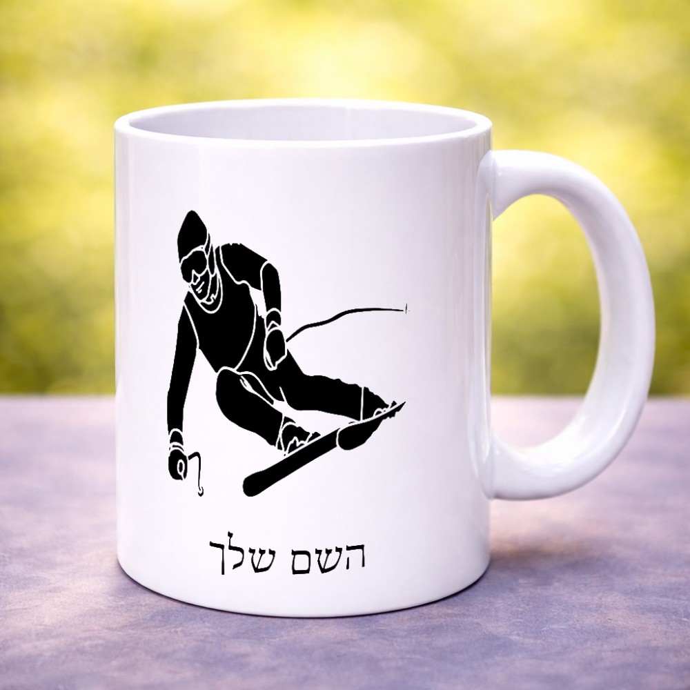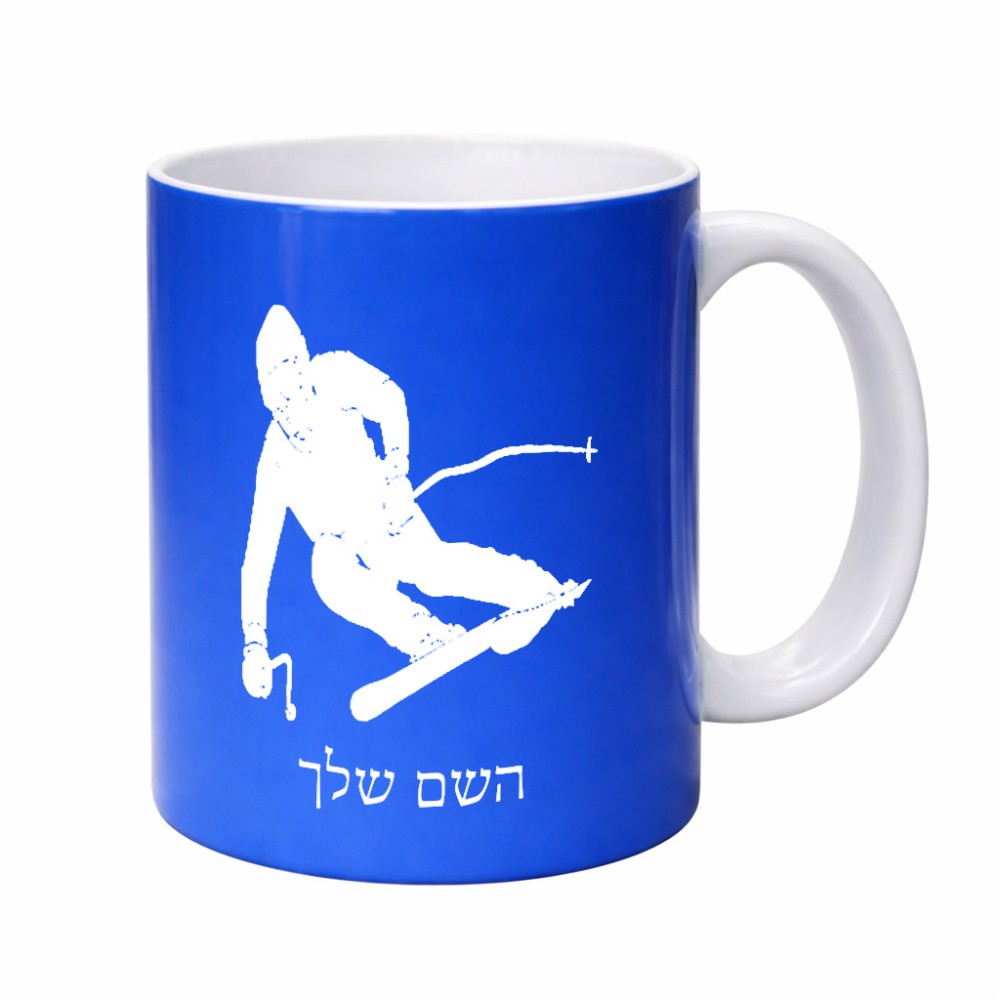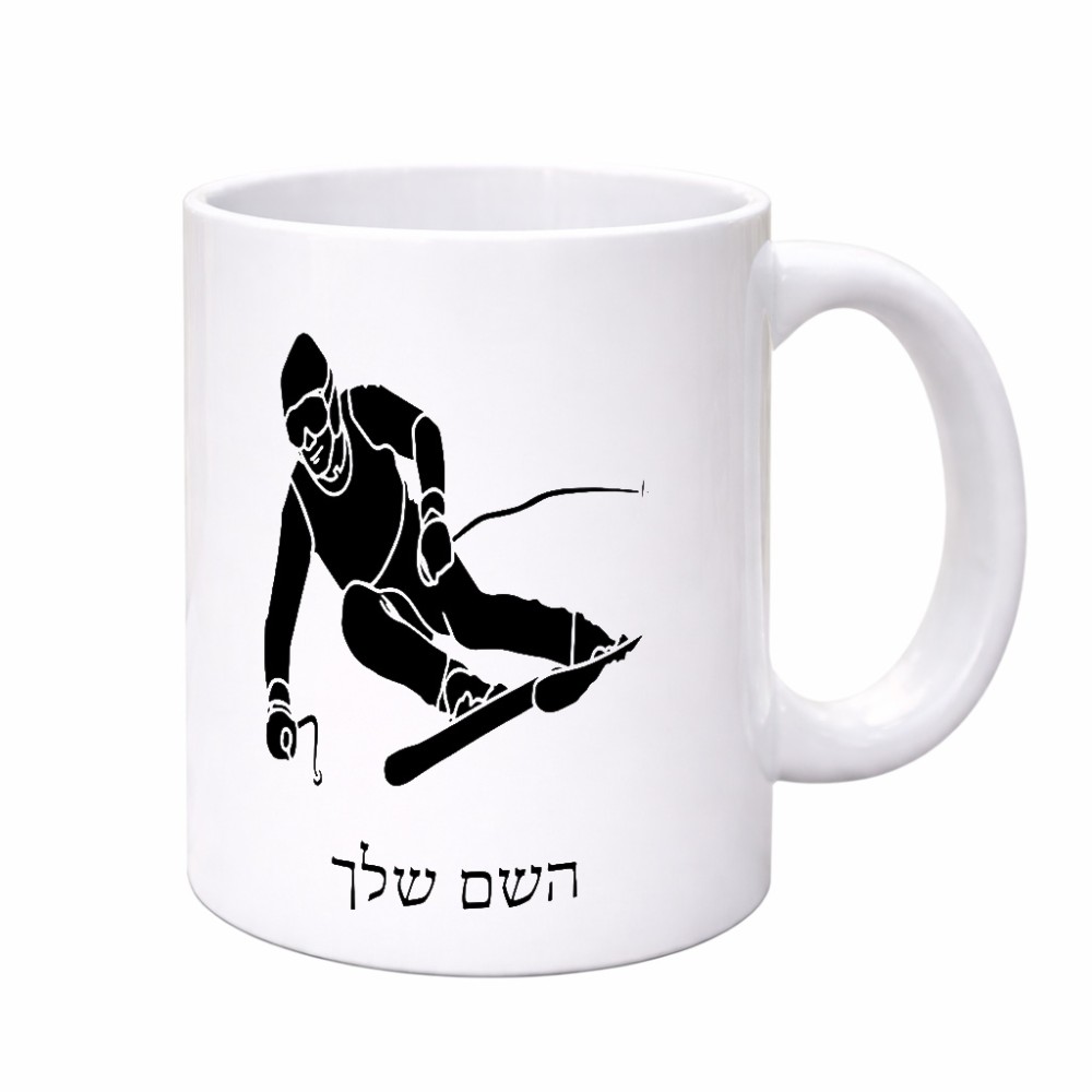 ספל תה \ קפה בעיצוב אישי עם השם שלך בעיצוב סקי גדול הספל 325 מ"ל, הספל בעלת ידית לאחיזה יציבה. את השם המבוקש ניתן לציין בהזמנה, אם לא צויין אנחנו ניצור קשר לבירור.