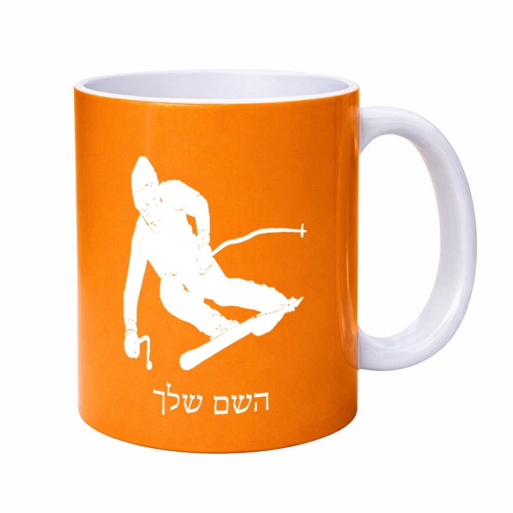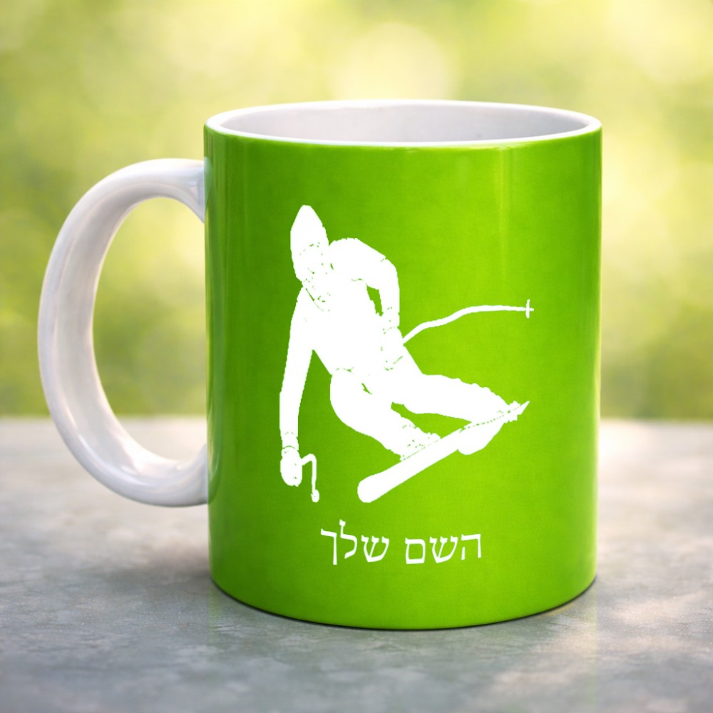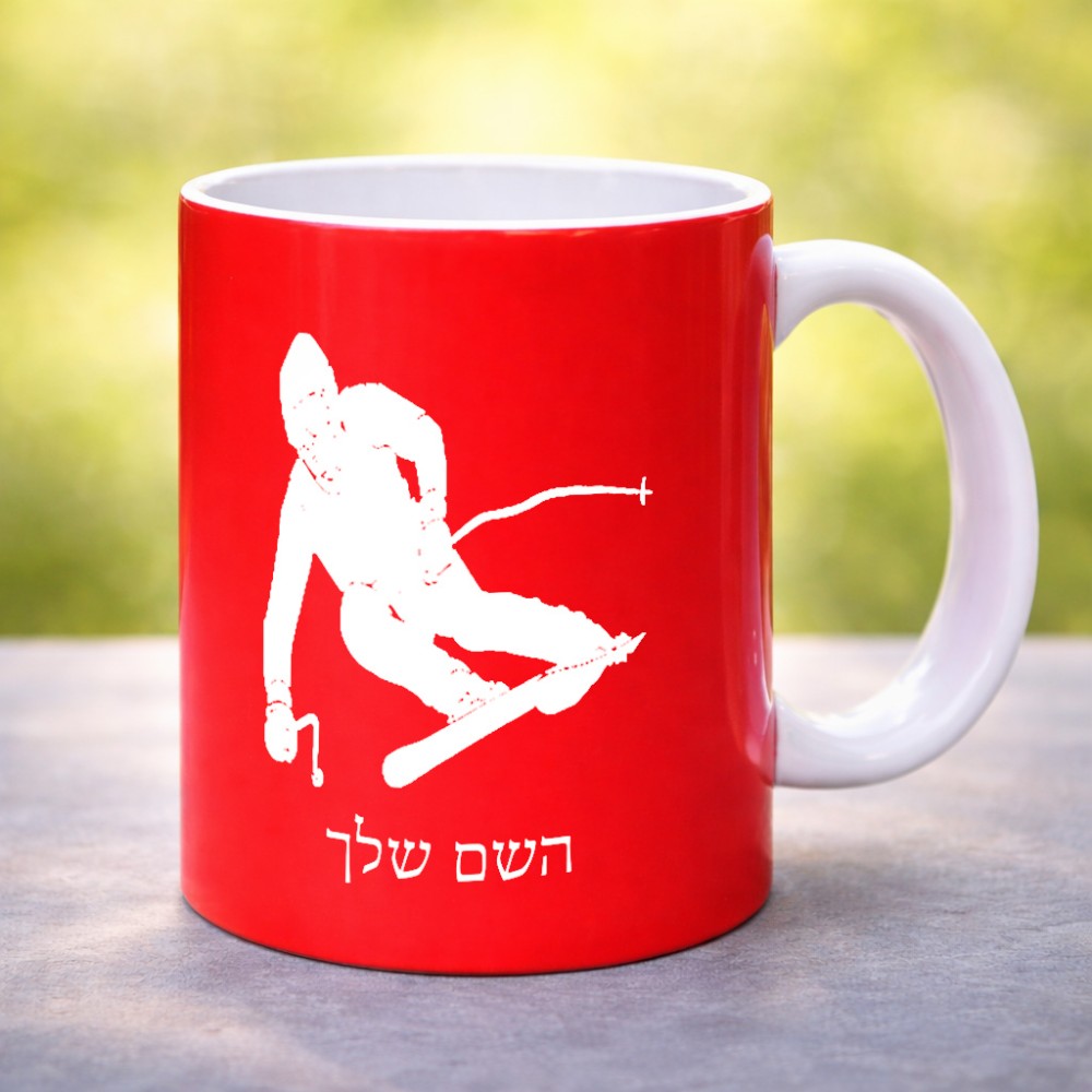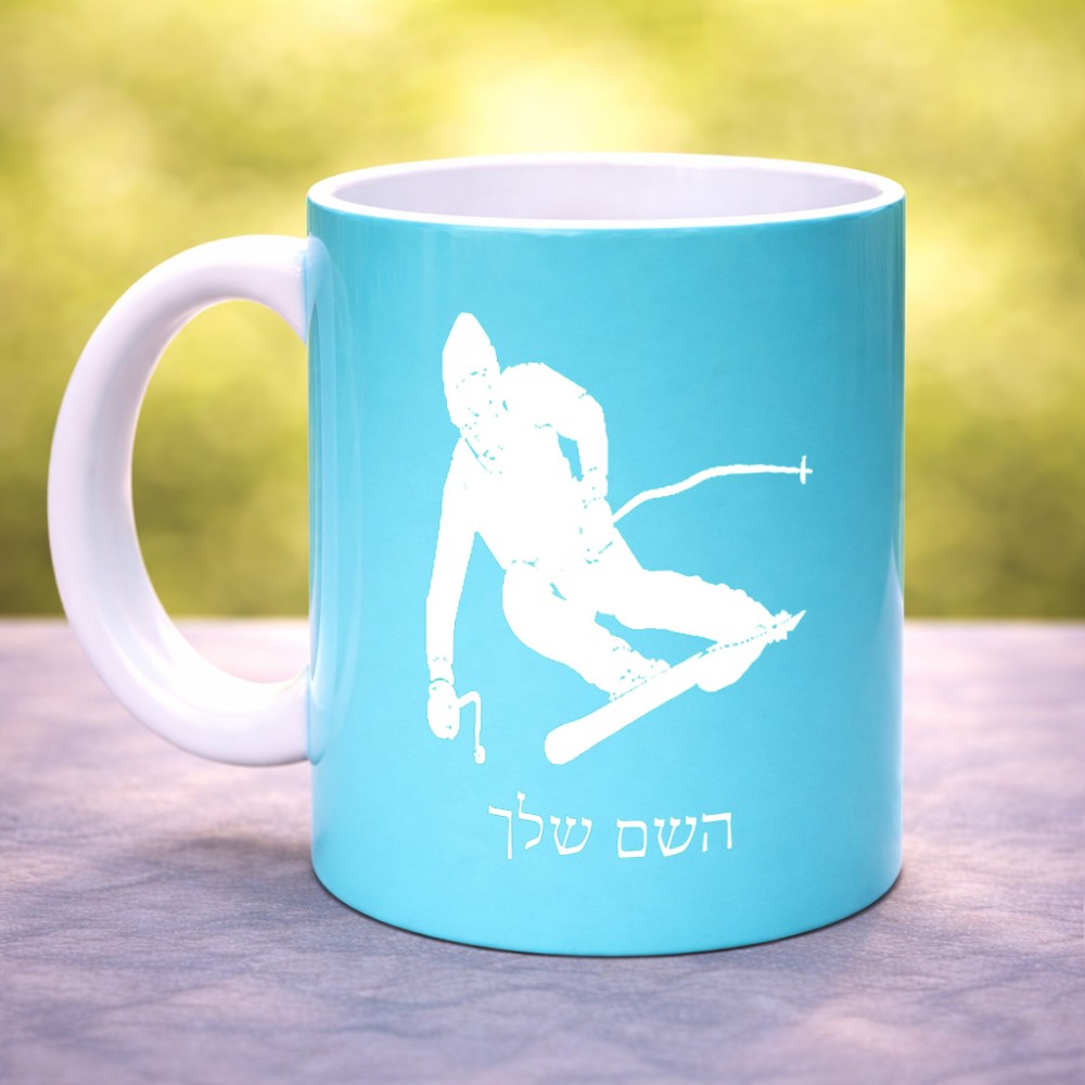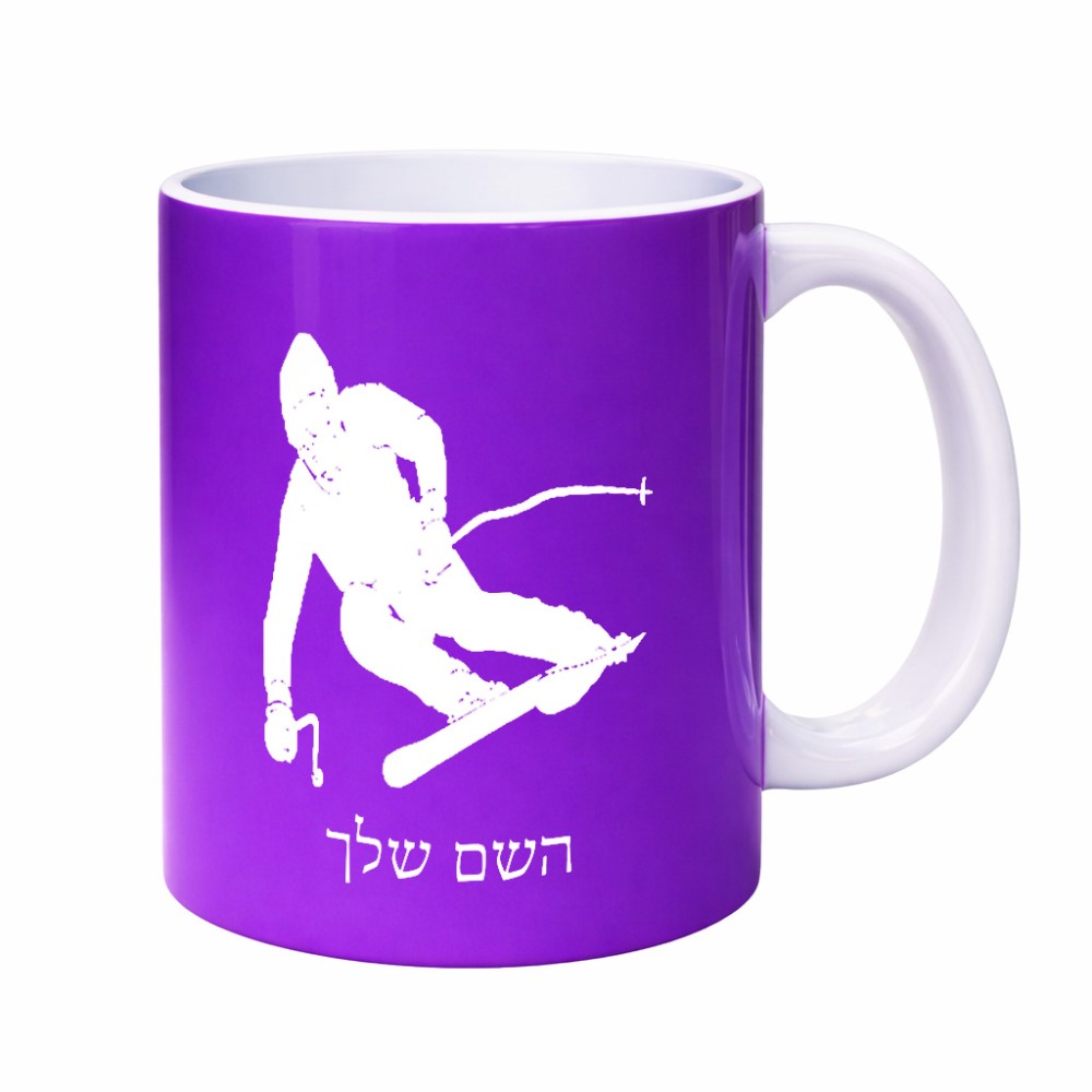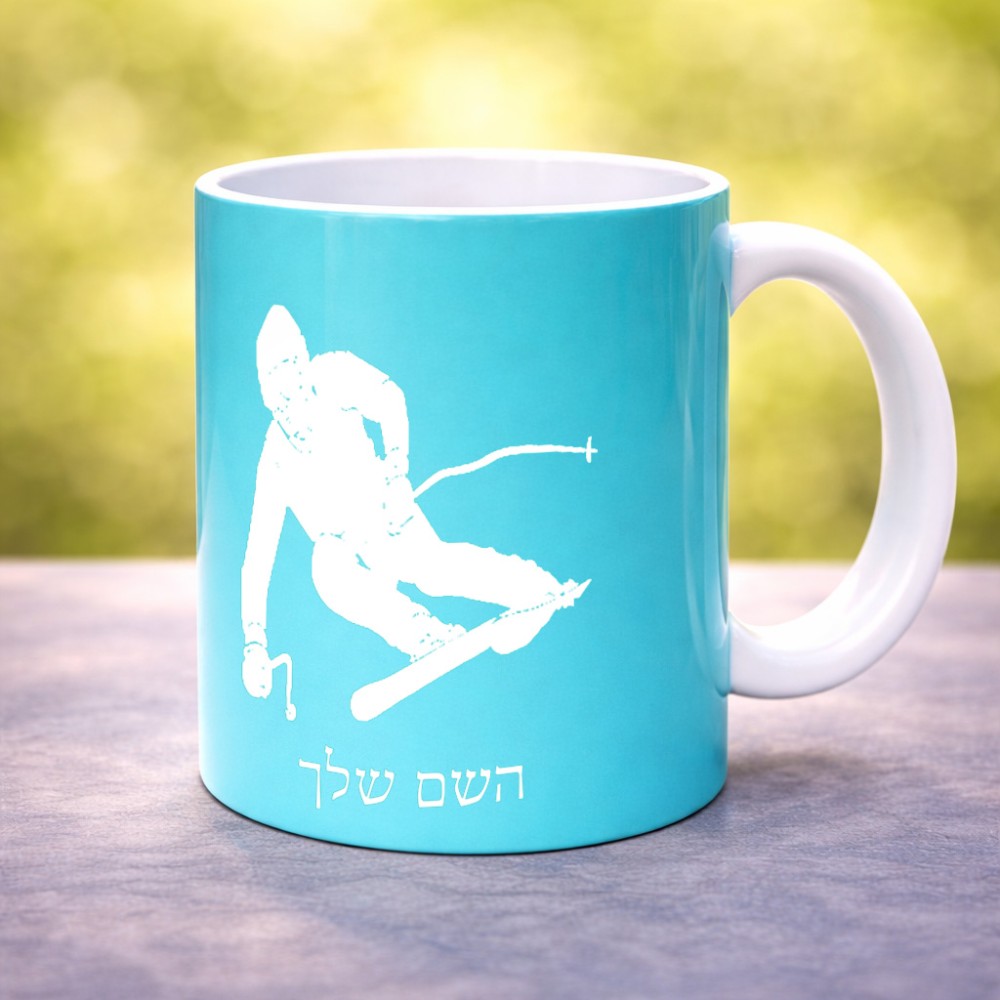 ספל תה \ קפה בעיצוב אישי עם השם שלך בעיצוב סקי גדול הספל 325 מ"ל, הספל בעלת ידית לאחיזה יציבה. את השם המבוקש ניתן לציין בהזמנה, אם לא צויין אנחנו ניצור קשר לבירור.