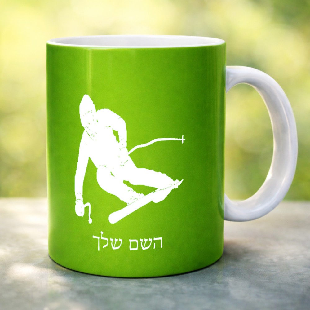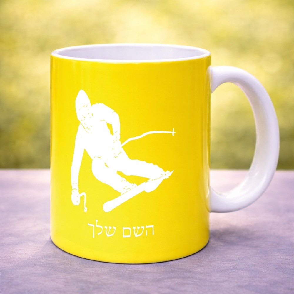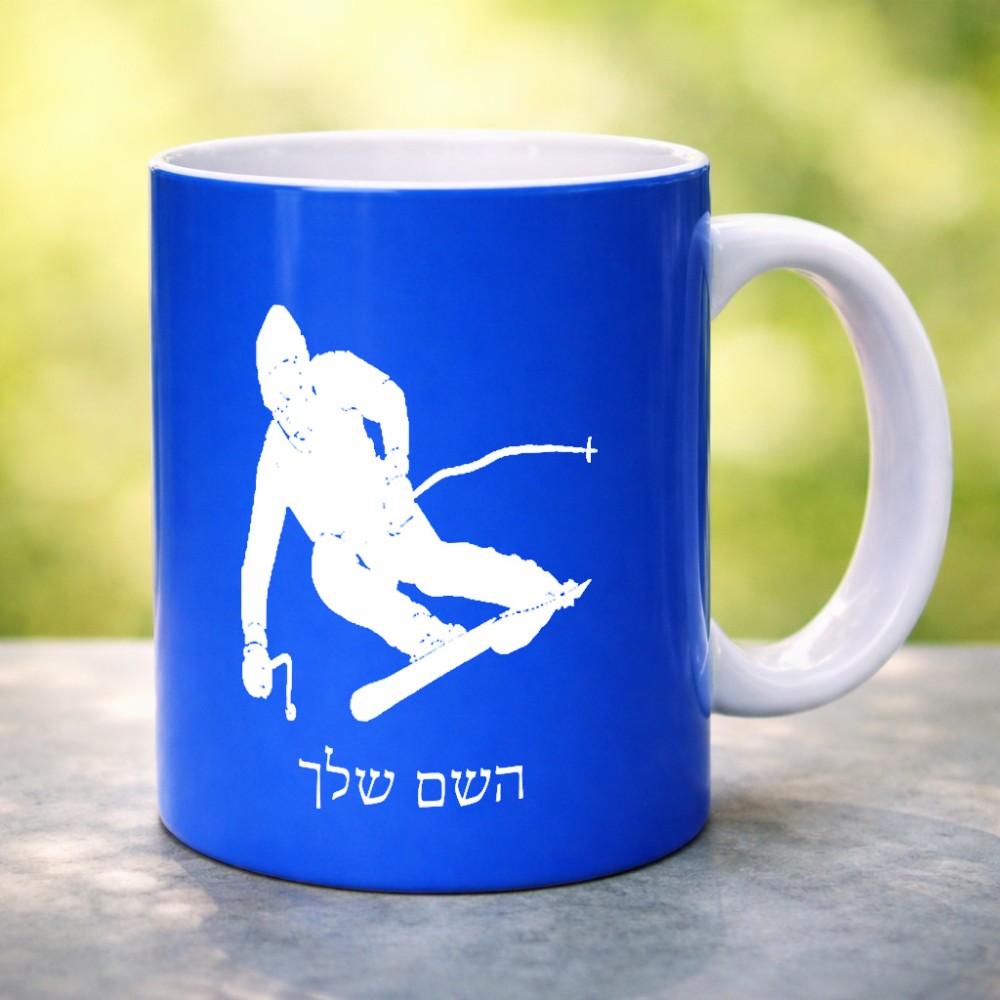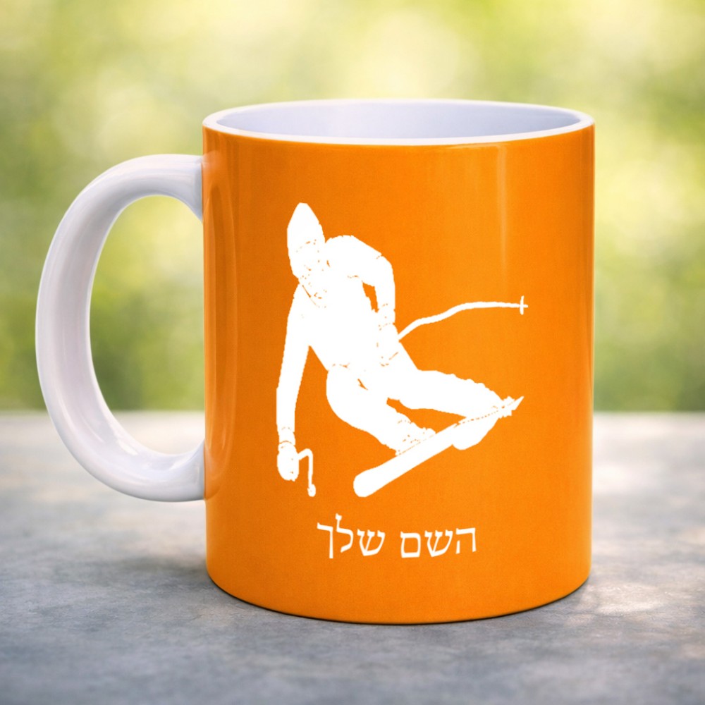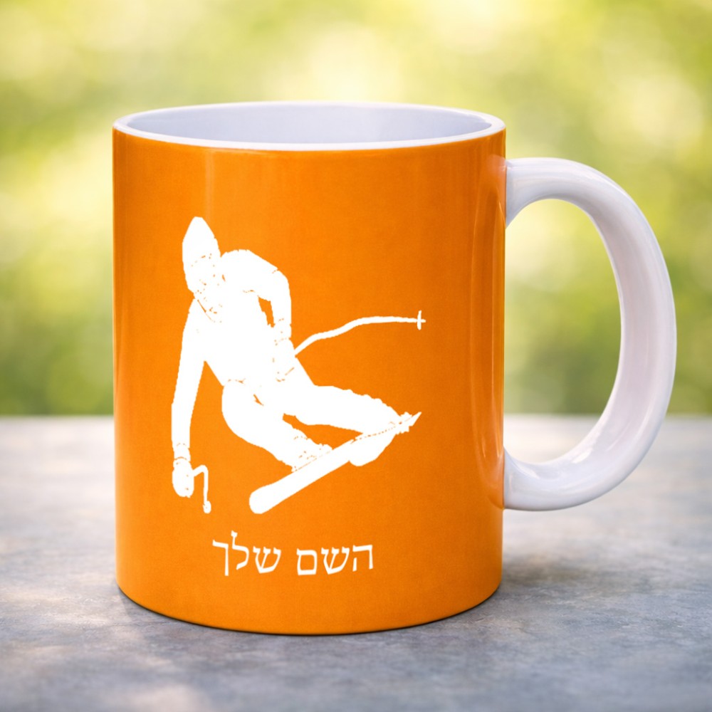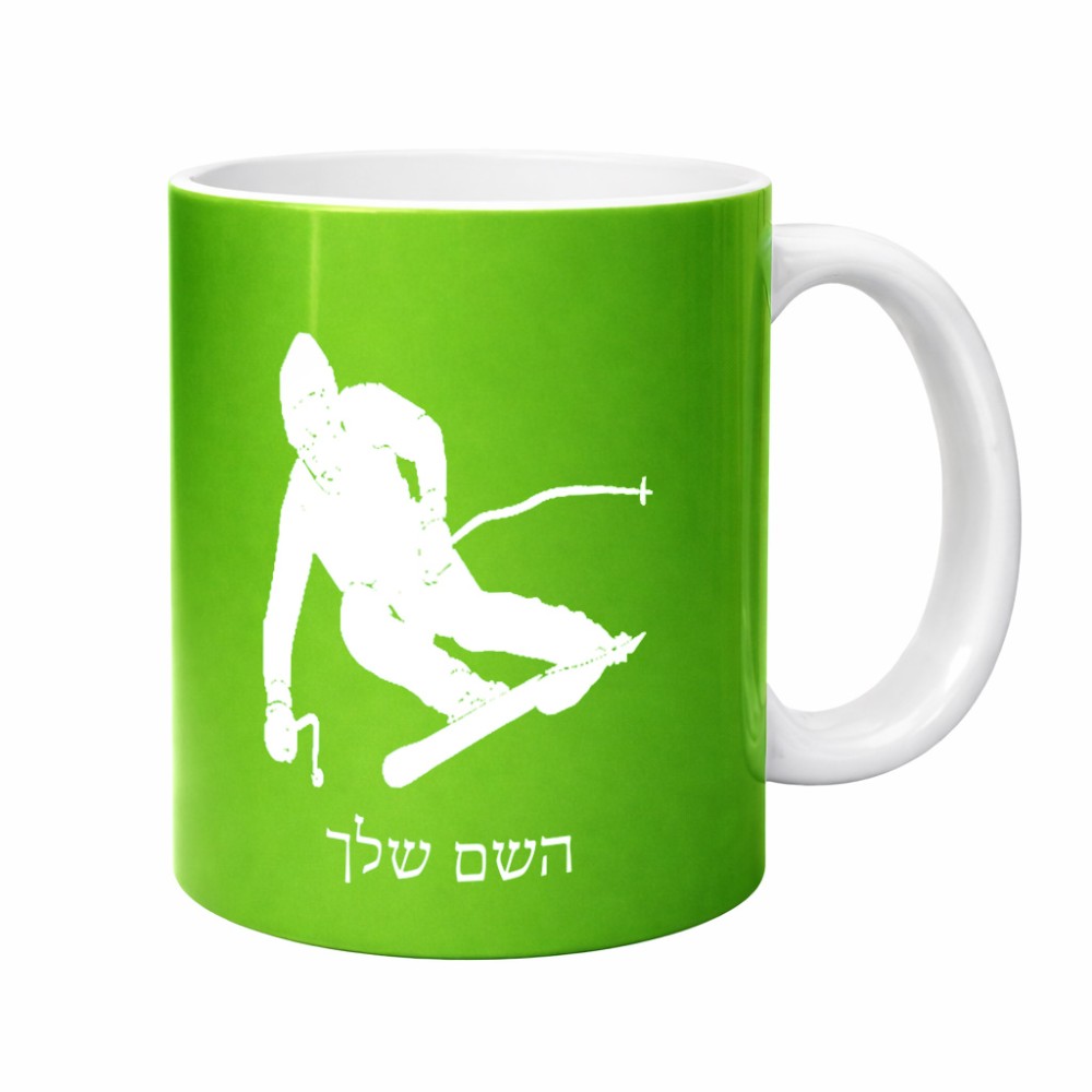ספל תה \ קפה בעיצוב אישי עם השם שלך בעיצוב סקי גדול הספל 325 מ"ל, הספל בעלת ידית לאחיזה יציבה. את השם המבוקש ניתן לציין בהזמנה, אם לא צויין אנחנו ניצור קשר לבירור.