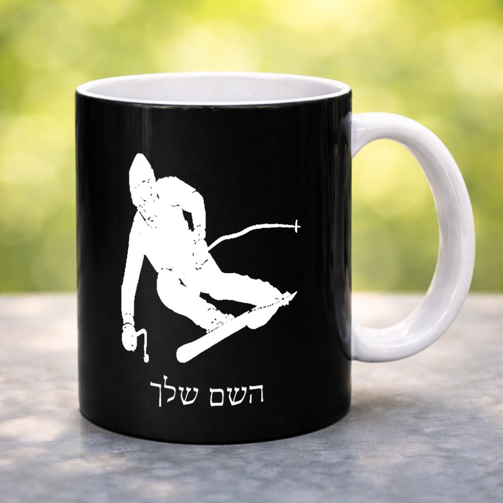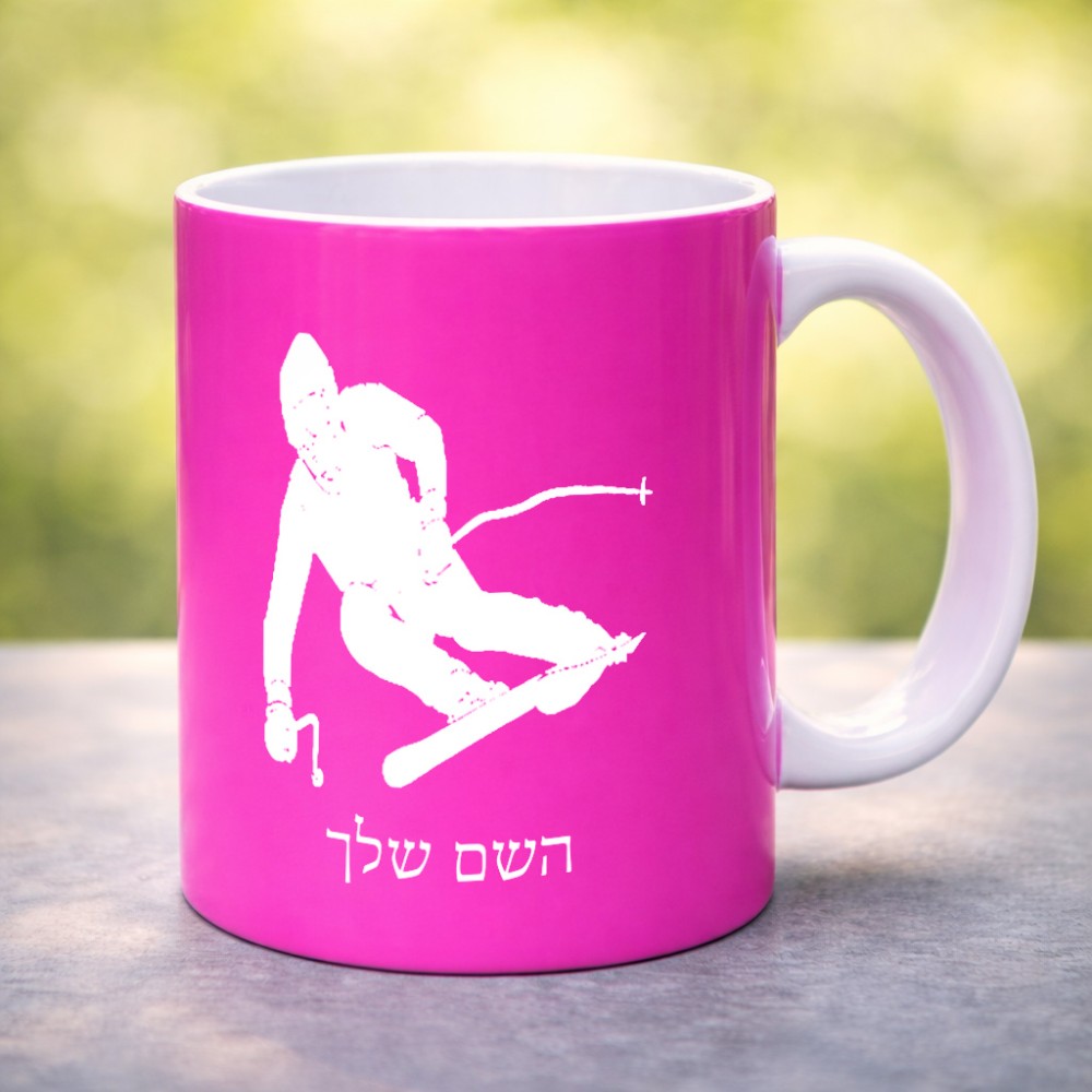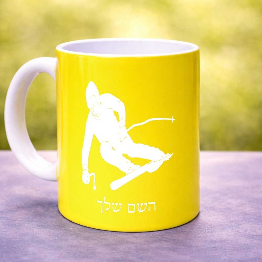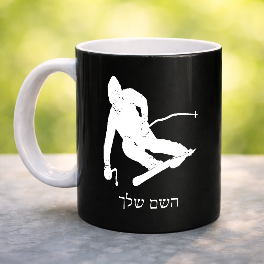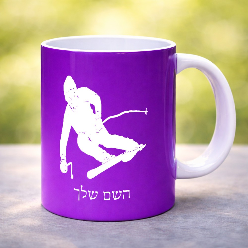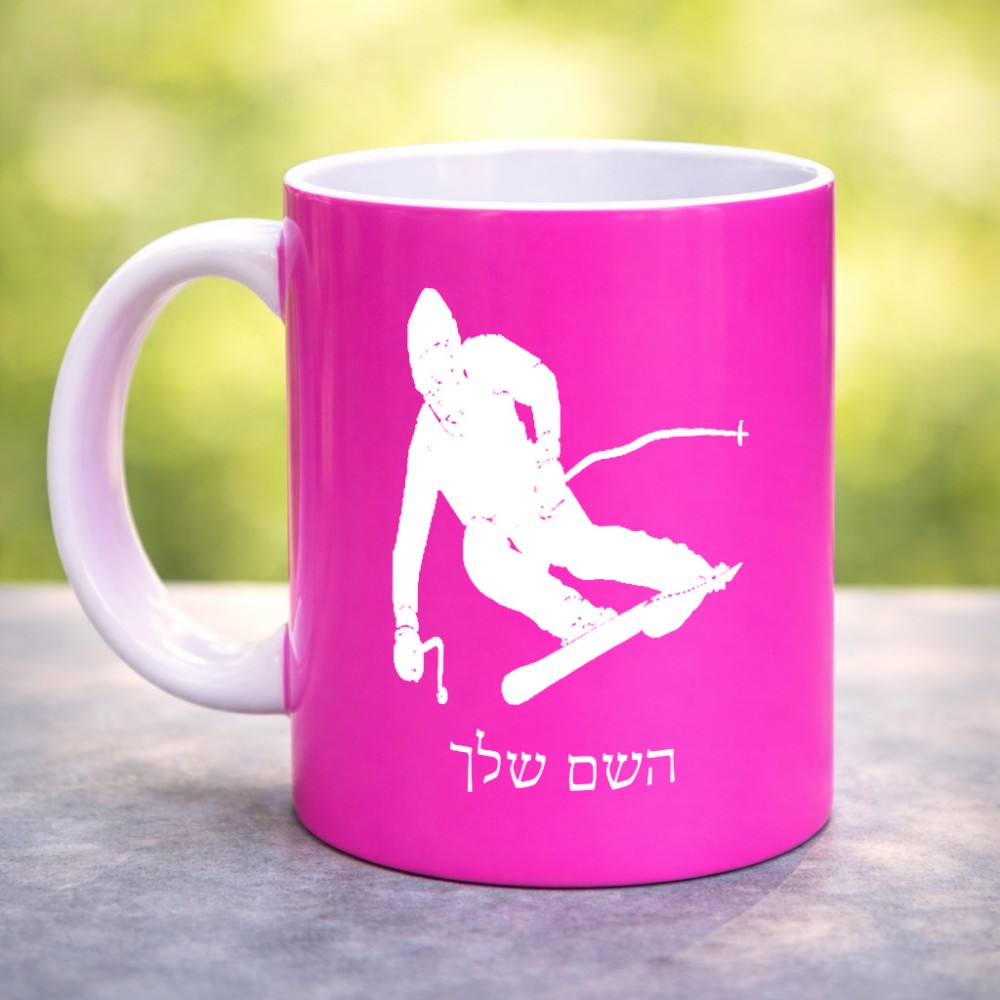 ספל תה \ קפה בעיצוב אישי עם השם שלך בעיצוב סקי גדול הספל 325 מ"ל, הספל בעלת ידית לאחיזה יציבה. את השם המבוקש ניתן לציין בהזמנה, אם לא צויין אנחנו ניצור קשר לבירור.