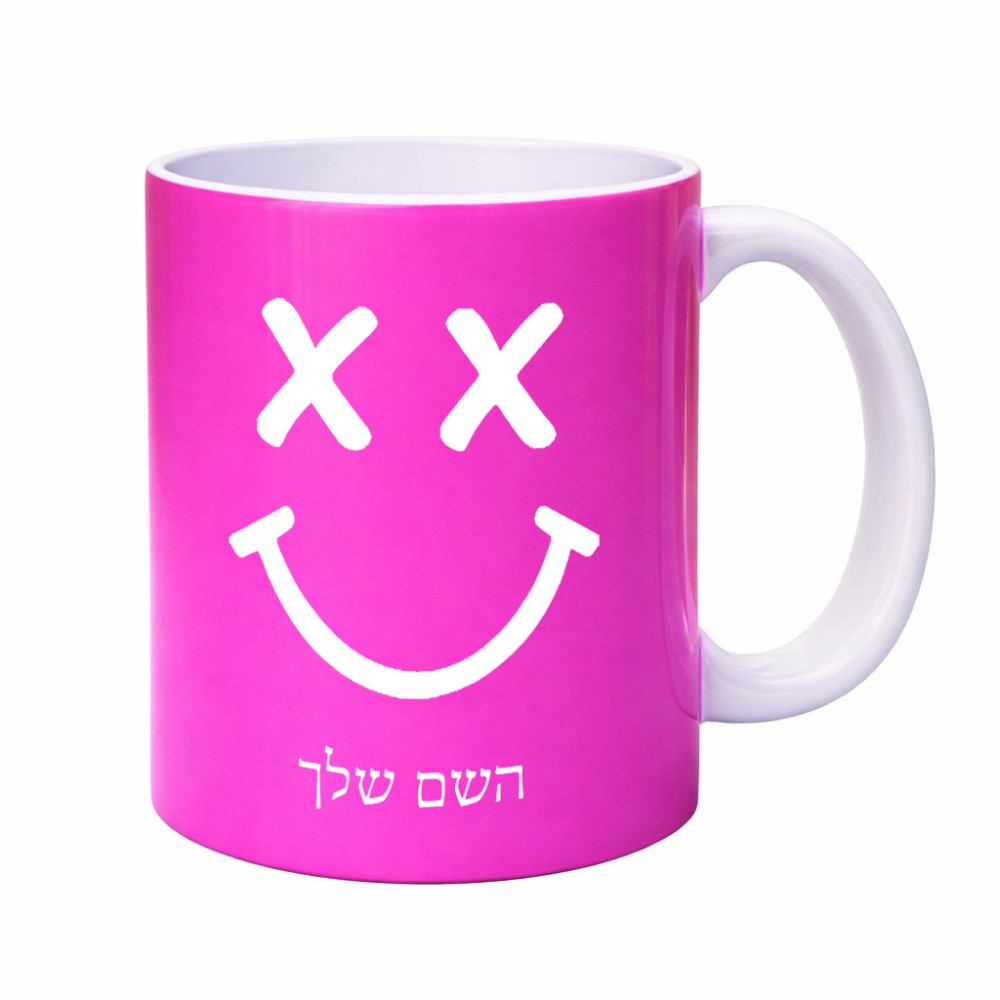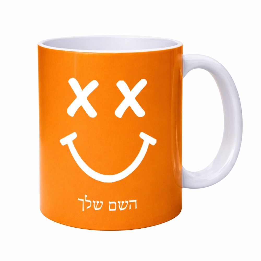 ספל תה \ קפה בעיצוב אישי עם השם שלך בעיצוב סמיילי גדול הספל 325 מ"ל, הספל בעלת ידית לאחיזה יציבה. את השם המבוקש ניתן לציין בהזמנה, אם לא צויין אנחנו ניצור קשר לבירור.