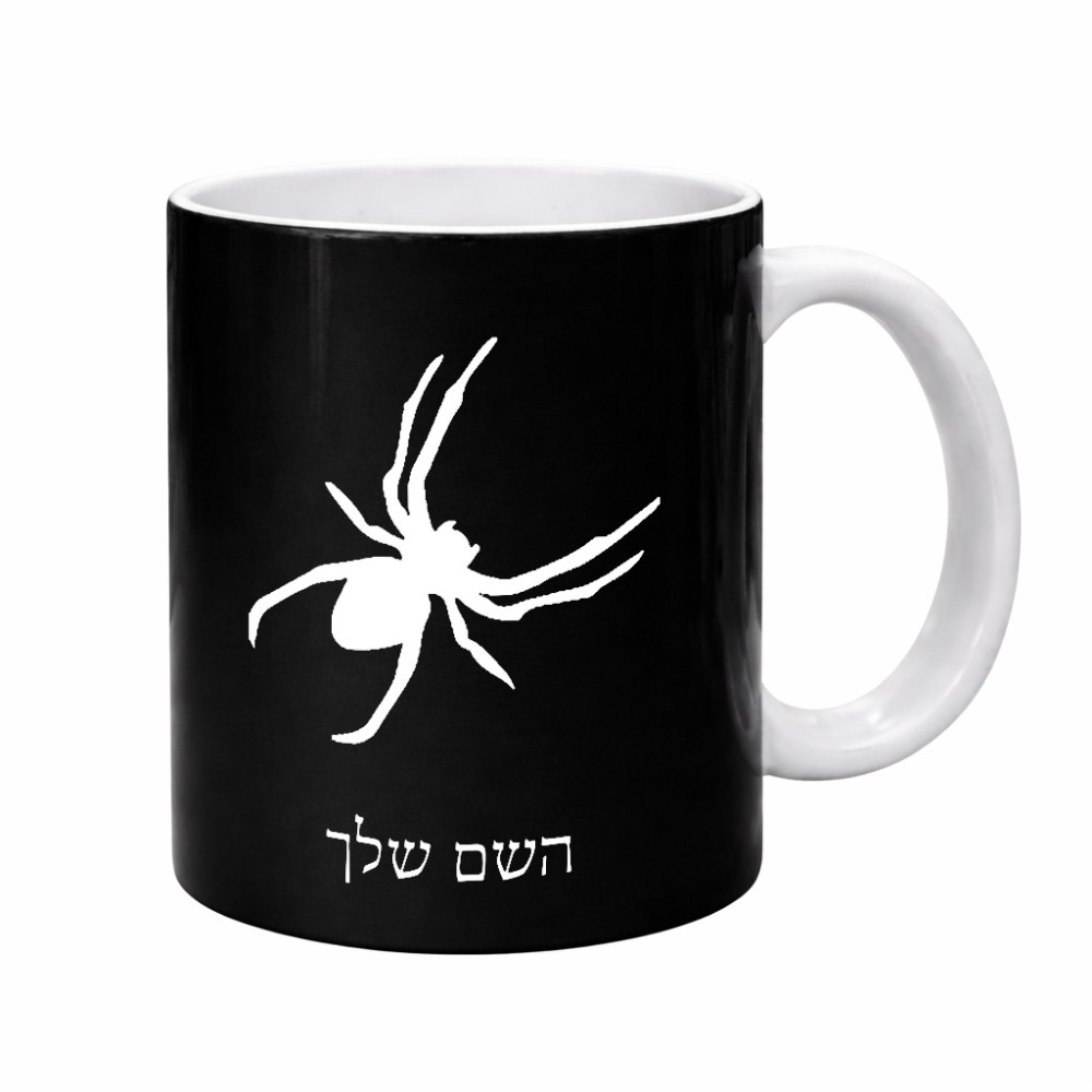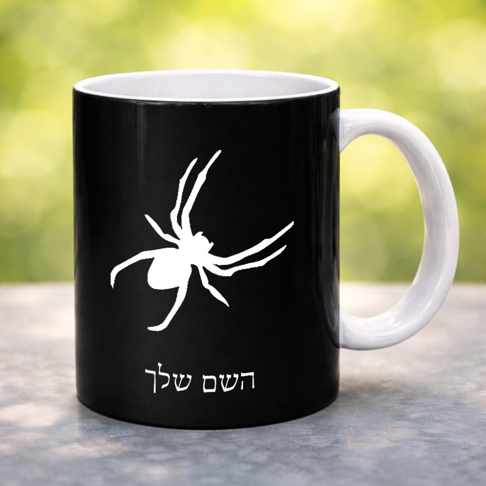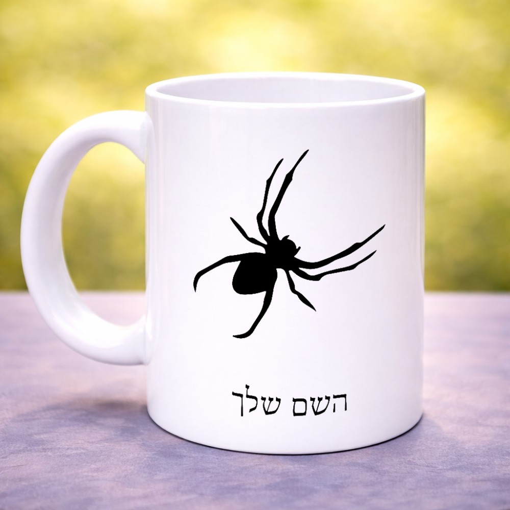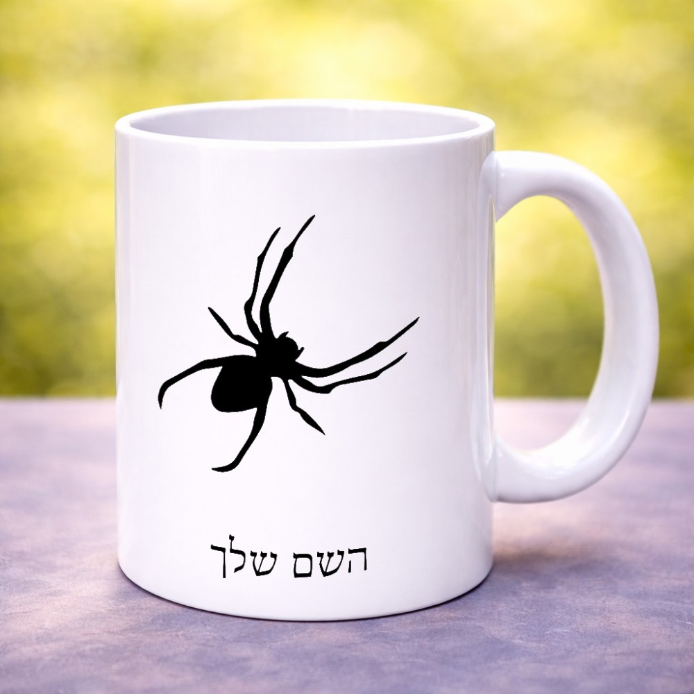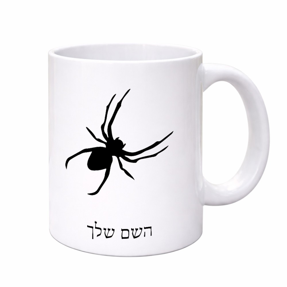 ספל תה \ קפה בעיצוב אישי עם השם שלך בעיצוב עכביש גדול הספל 325 מ"ל, הספל בעלת ידית לאחיזה יציבה. את השם המבוקש ניתן לציין בהזמנה, אם לא צויין אנחנו ניצור קשר לבירור.