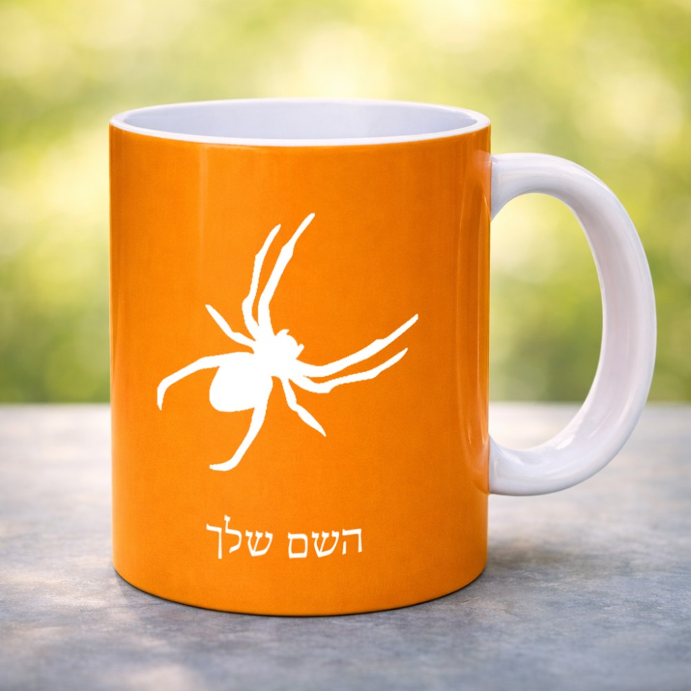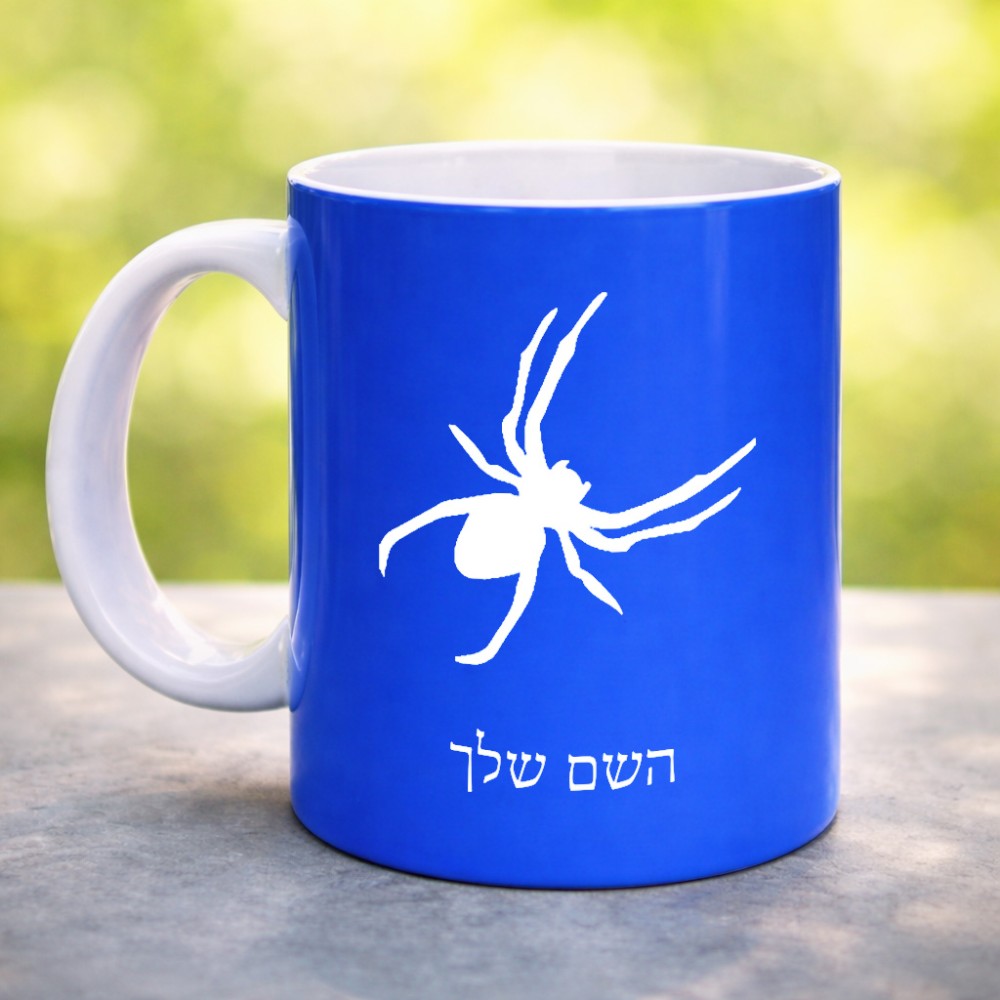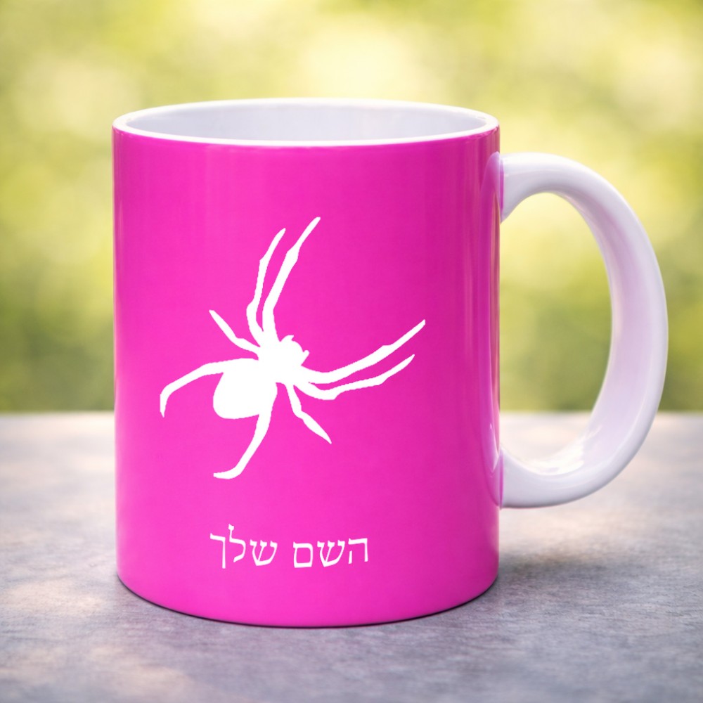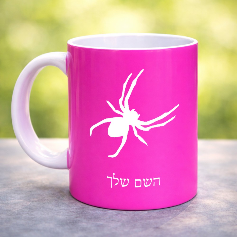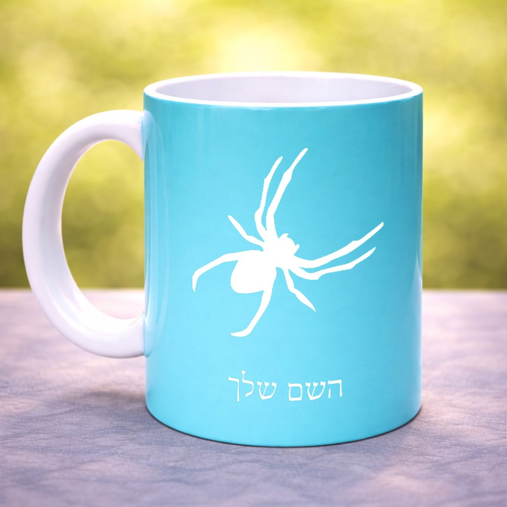 ספל תה \ קפה בעיצוב אישי עם השם שלך בעיצוב עכביש גדול הספל 325 מ"ל, הספל בעלת ידית לאחיזה יציבה. את השם המבוקש ניתן לציין בהזמנה, אם לא צויין אנחנו ניצור קשר לבירור.