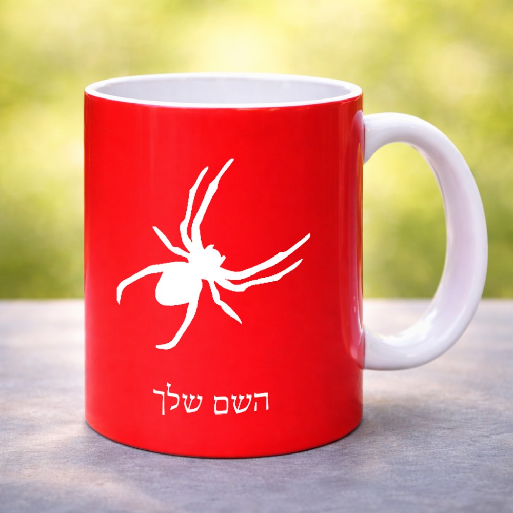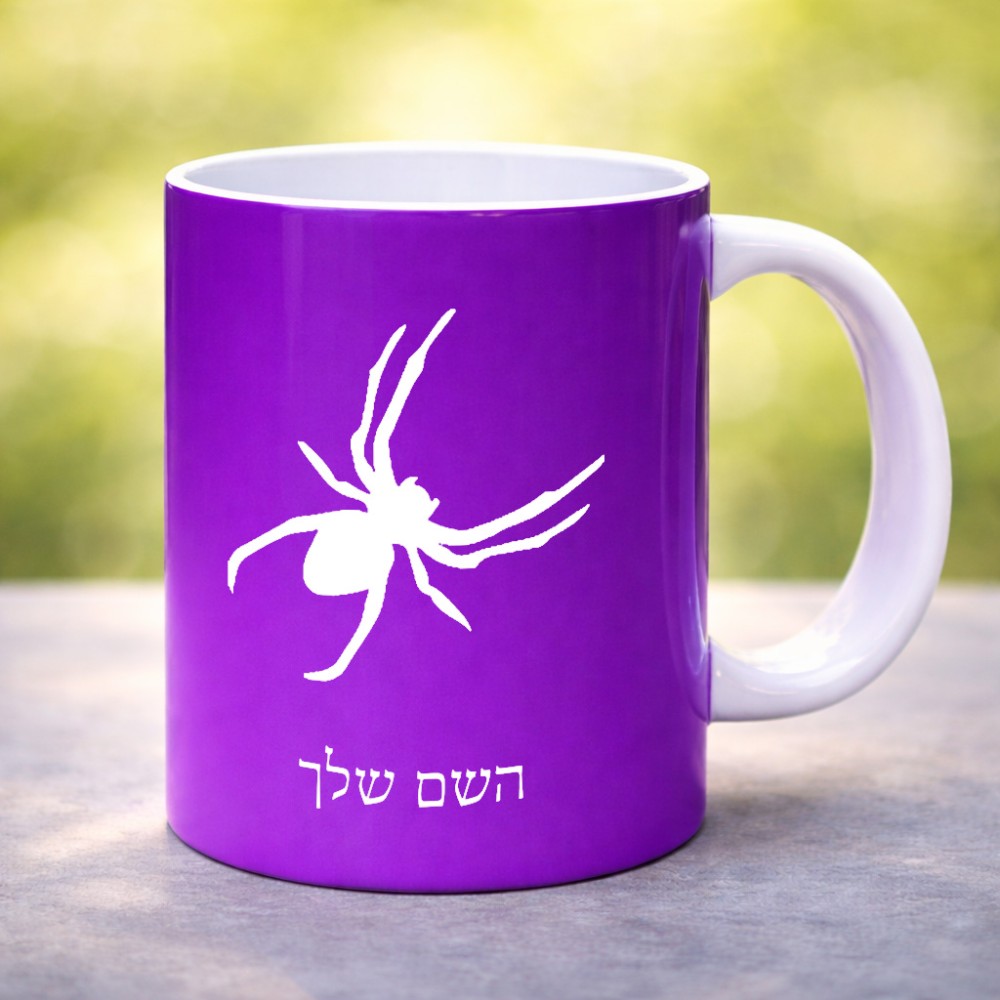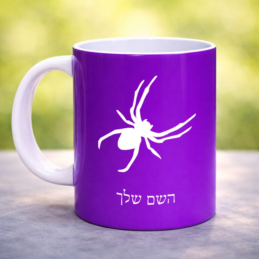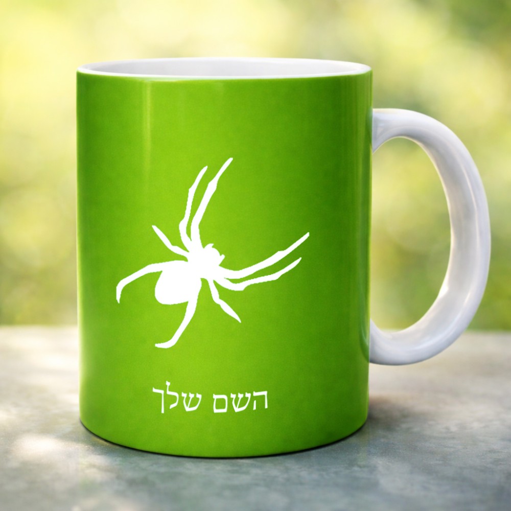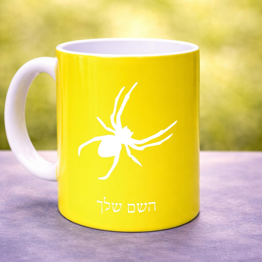 ספל תה \ קפה בעיצוב אישי עם השם שלך בעיצוב עכביש גדול הספל 325 מ"ל, הספל בעלת ידית לאחיזה יציבה. את השם המבוקש ניתן לציין בהזמנה, אם לא צויין אנחנו ניצור קשר לבירור.