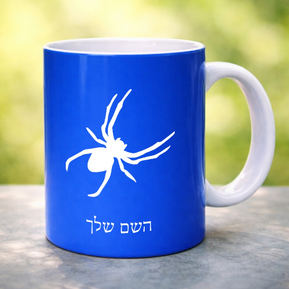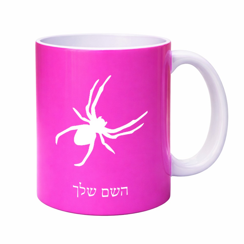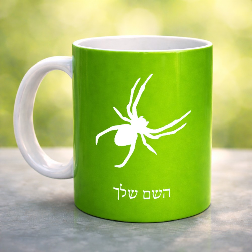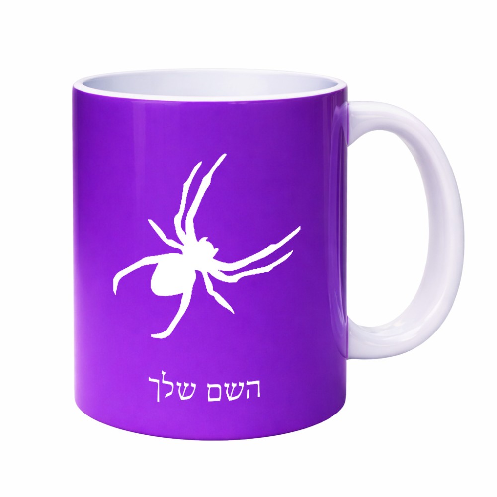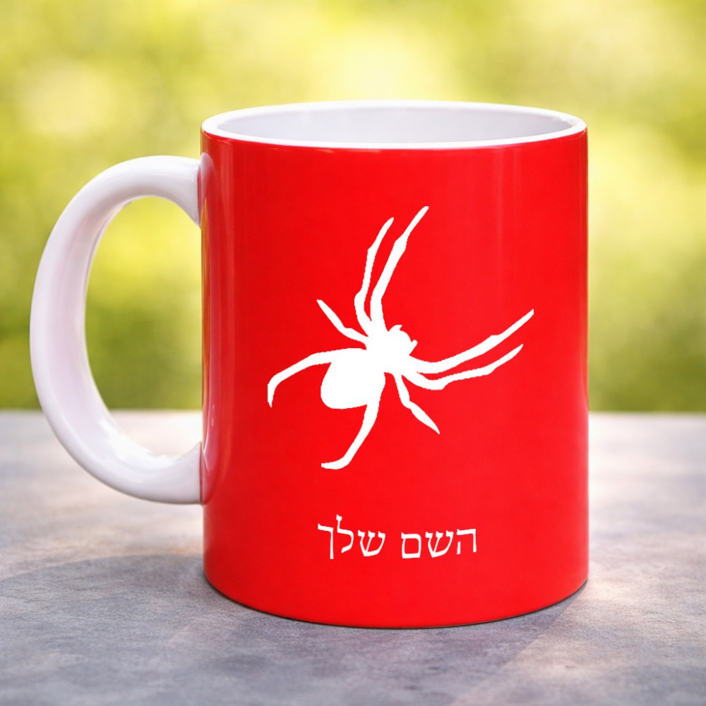 ספל תה \ קפה בעיצוב אישי עם השם שלך בעיצוב עכביש גדול הספל 325 מ"ל, הספל בעלת ידית לאחיזה יציבה. את השם המבוקש ניתן לציין בהזמנה, אם לא צויין אנחנו ניצור קשר לבירור.