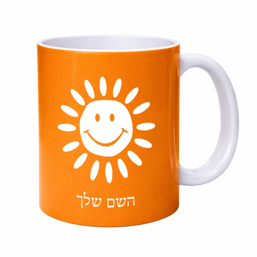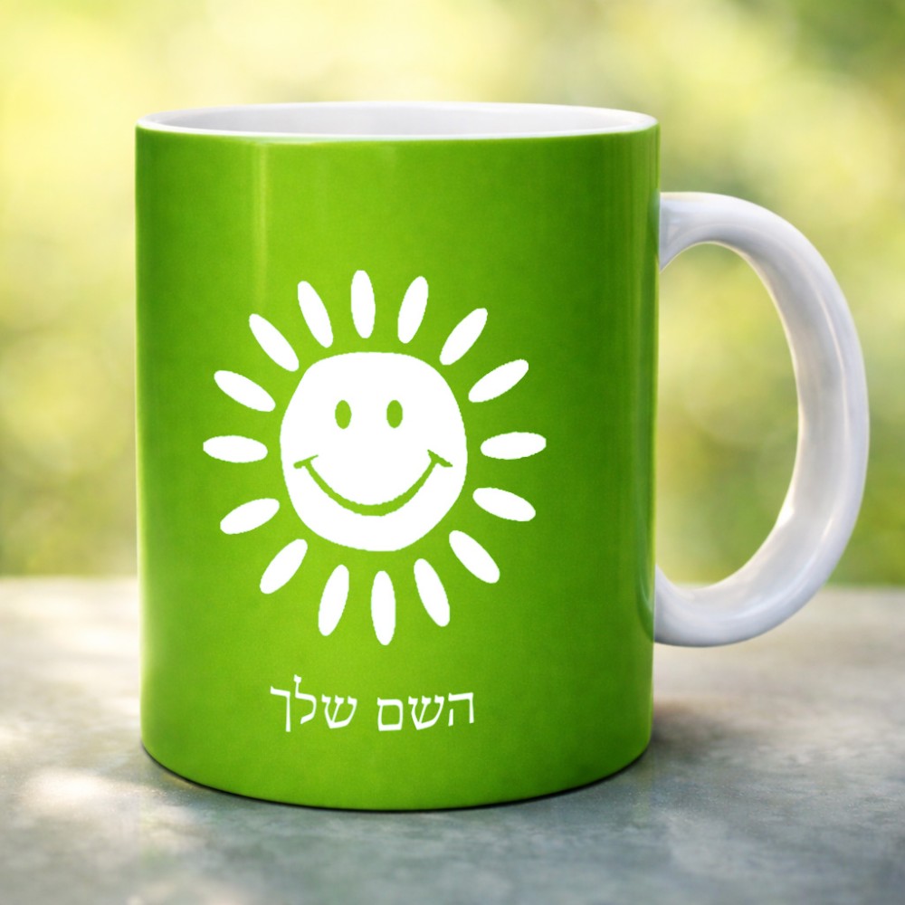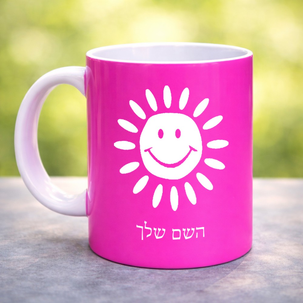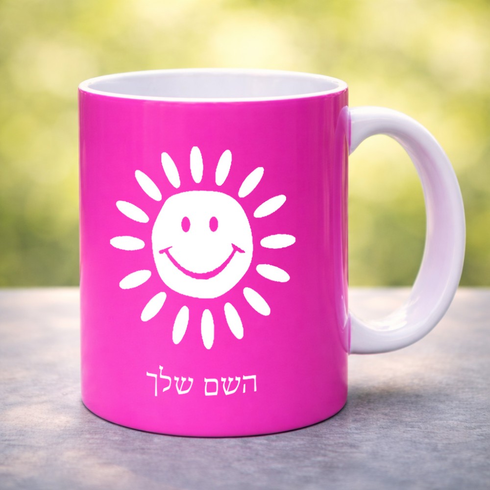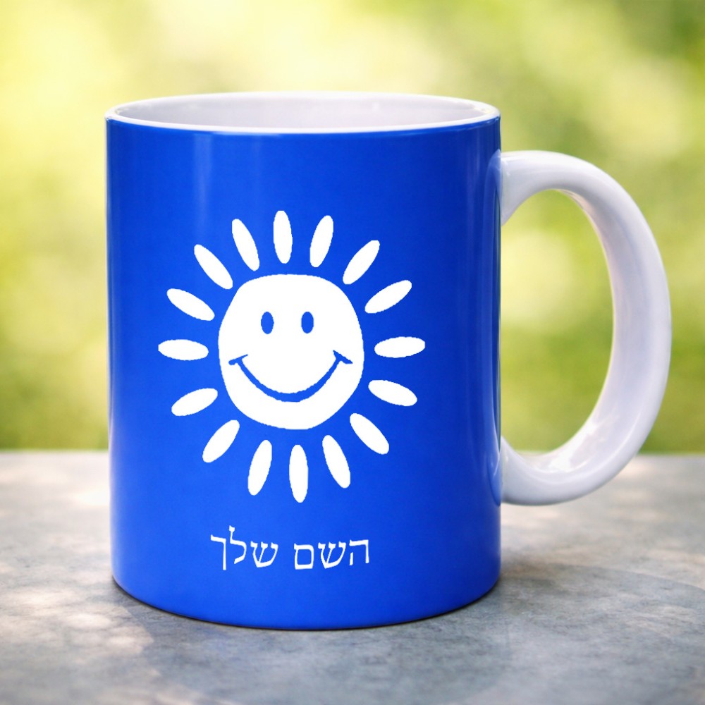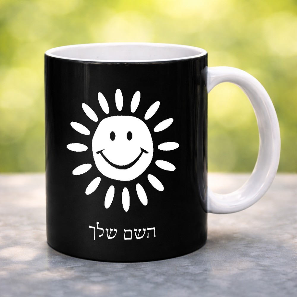 ספל תה \ קפה בעיצוב אישי עם השם שלך בעיצוב שמש גדול הספל 325 מ"ל, הספל בעלת ידית לאחיזה יציבה. את השם המבוקש ניתן לציין בהזמנה, אם לא צויין אנחנו ניצור קשר לבירור.