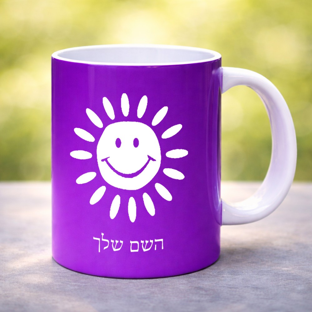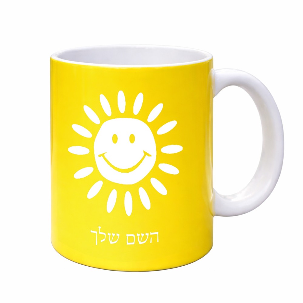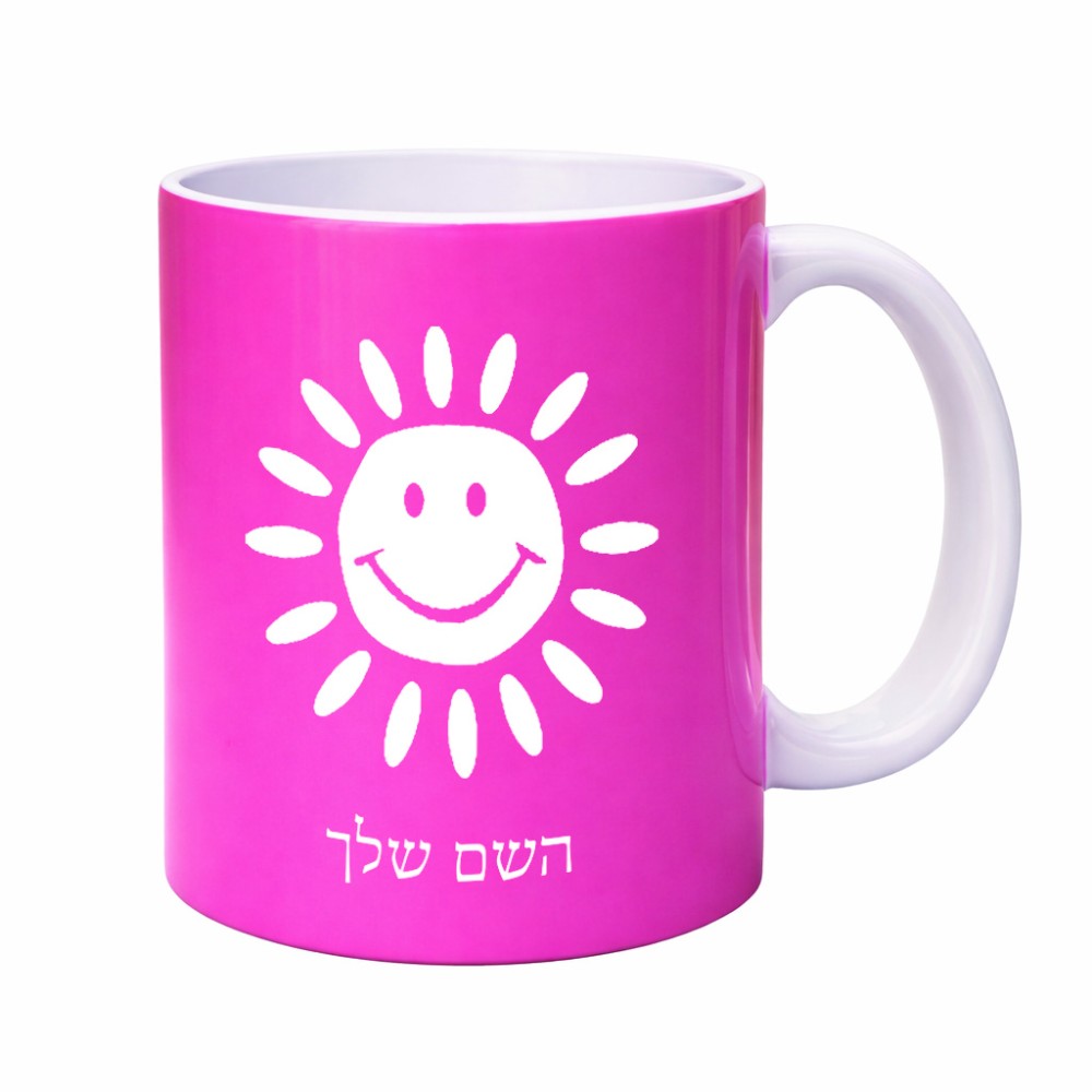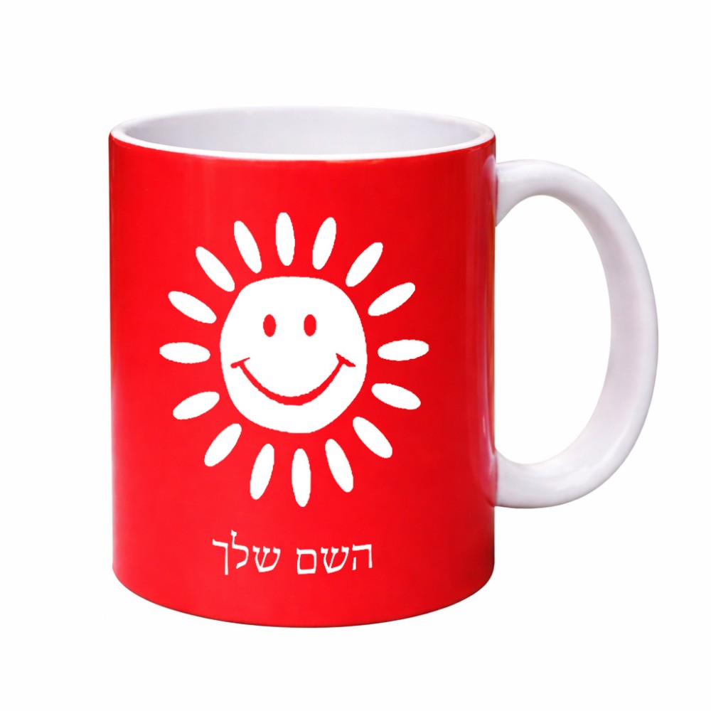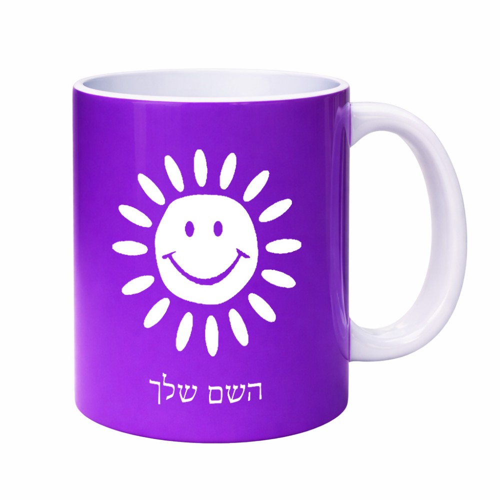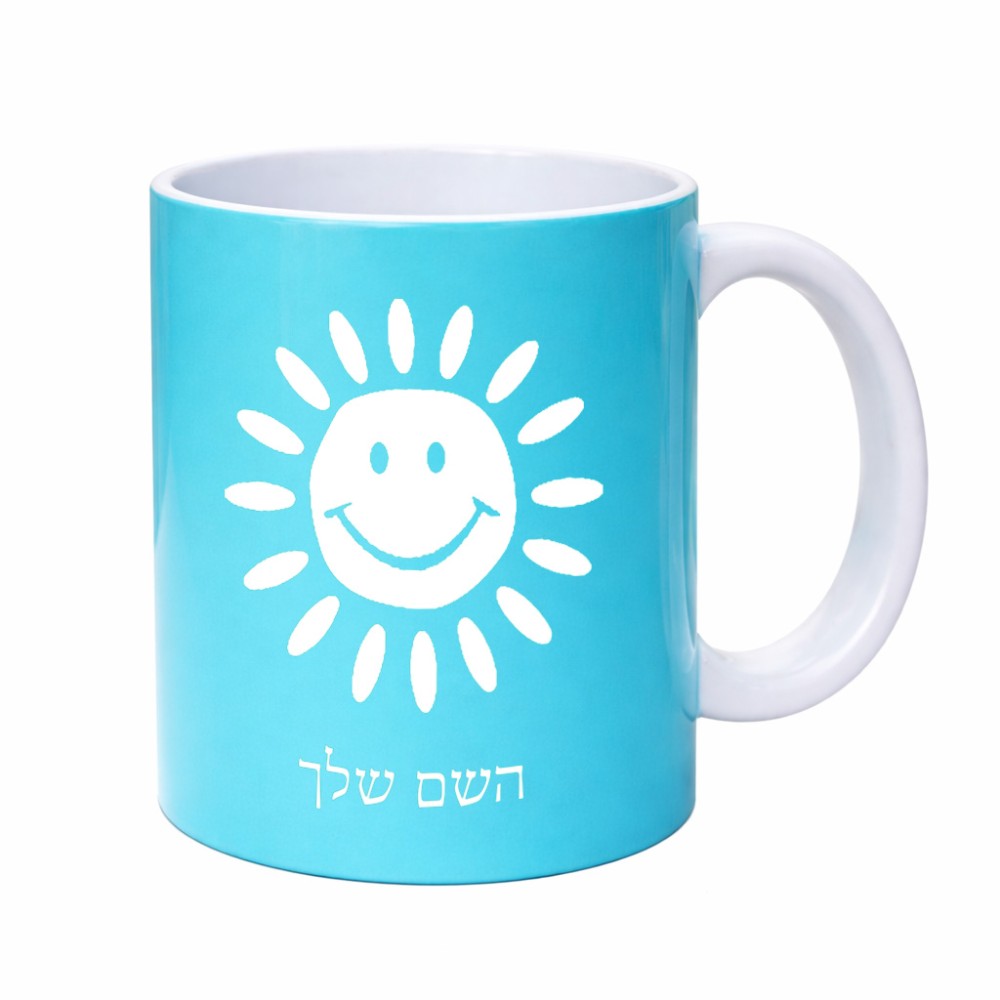 ספל תה \ קפה בעיצוב אישי עם השם שלך בעיצוב שמש גדול הספל 325 מ"ל, הספל בעלת ידית לאחיזה יציבה. את השם המבוקש ניתן לציין בהזמנה, אם לא צויין אנחנו ניצור קשר לבירור.