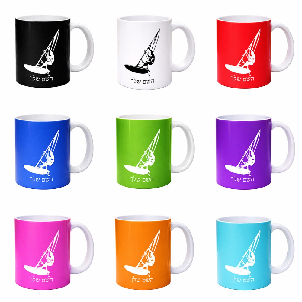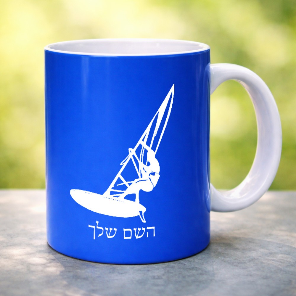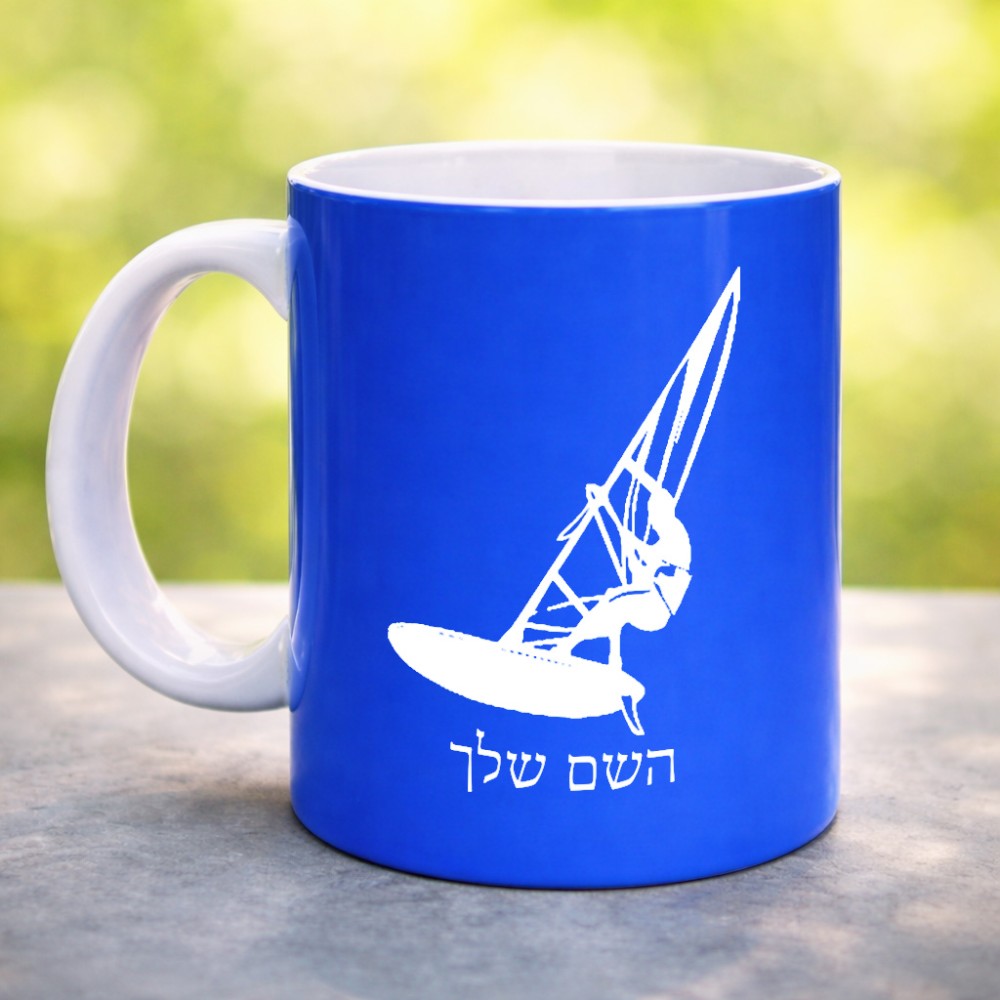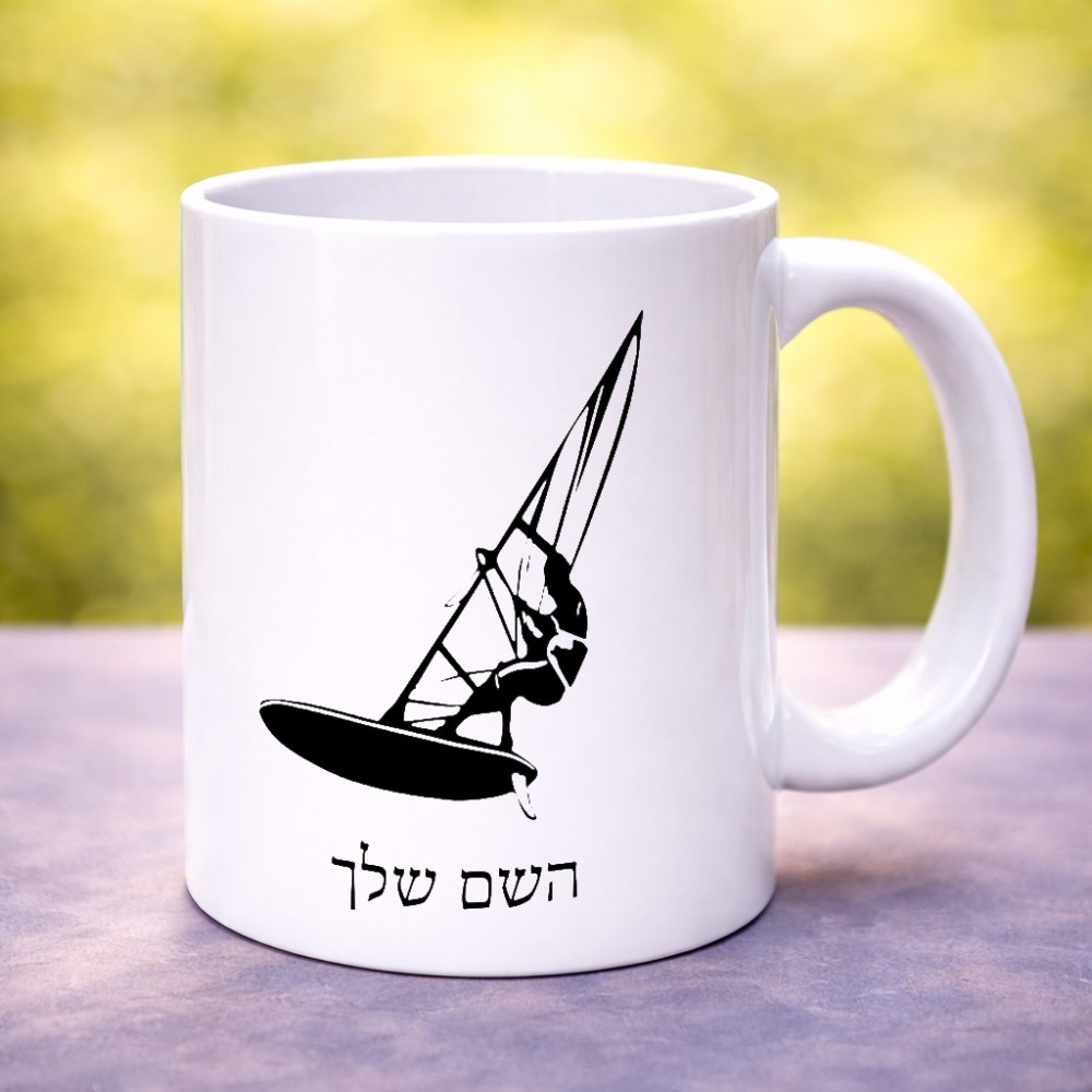 ספל תה \ קפה בעיצוב אישי עם השם שלך בעיצוב לגלוש - גלישה - שייט גדול הספל 325 מ"ל, הספל בעלת ידית לאחיזה יציבה. את השם המבוקש ניתן לציין בהזמנה, אם לא צויין אנחנו ניצור קשר לבירור.