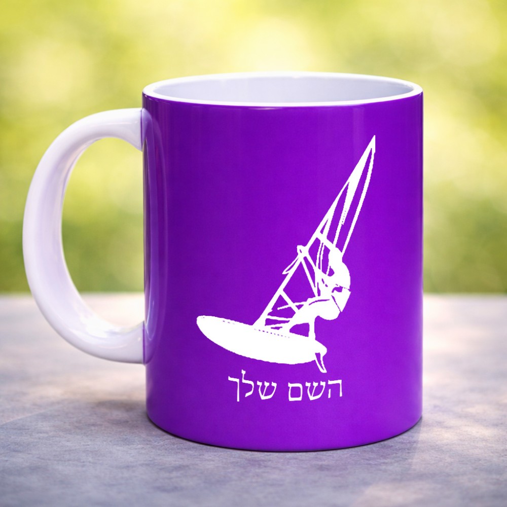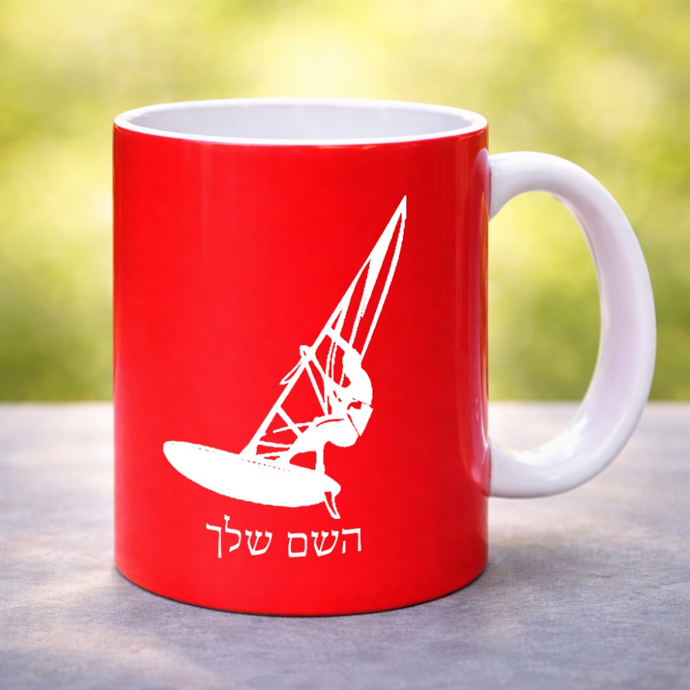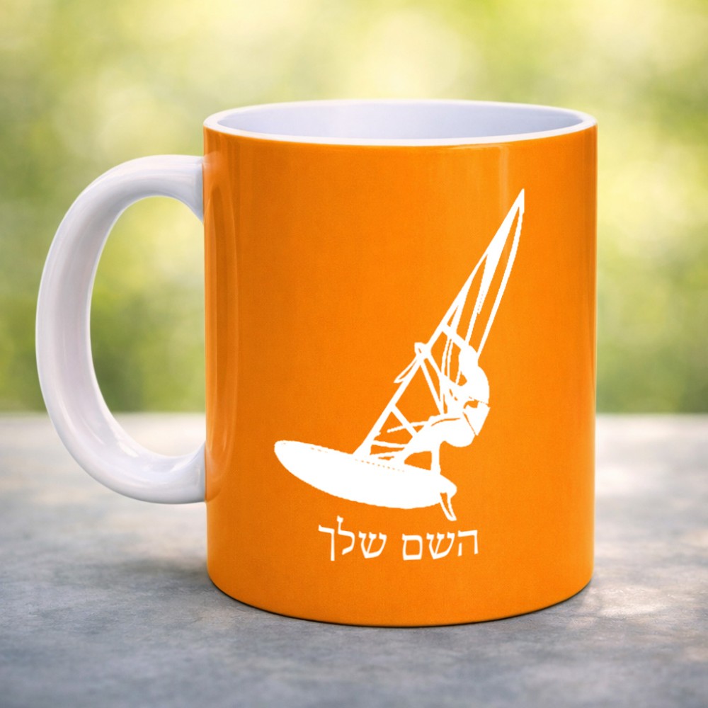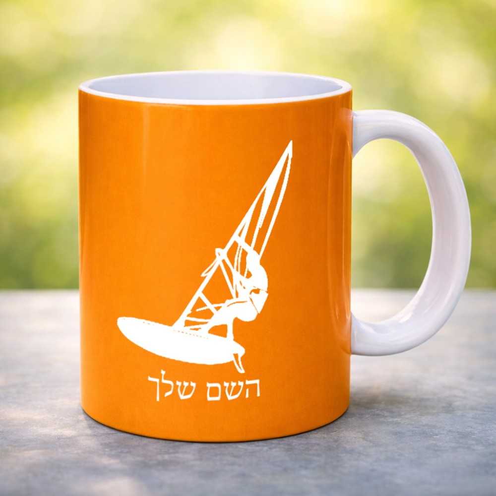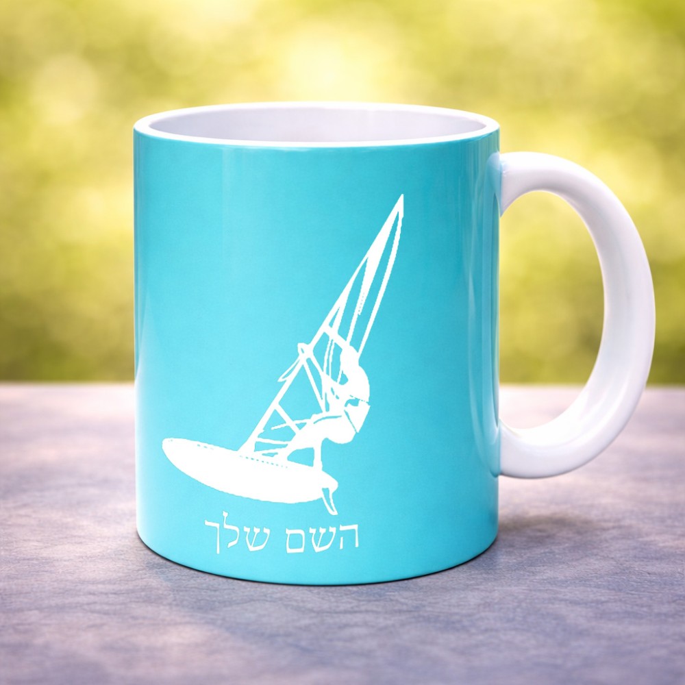 ספל תה \ קפה בעיצוב אישי עם השם שלך בעיצוב לגלוש - גלישה - שייט גדול הספל 325 מ"ל, הספל בעלת ידית לאחיזה יציבה. את השם המבוקש ניתן לציין בהזמנה, אם לא צויין אנחנו ניצור קשר לבירור.