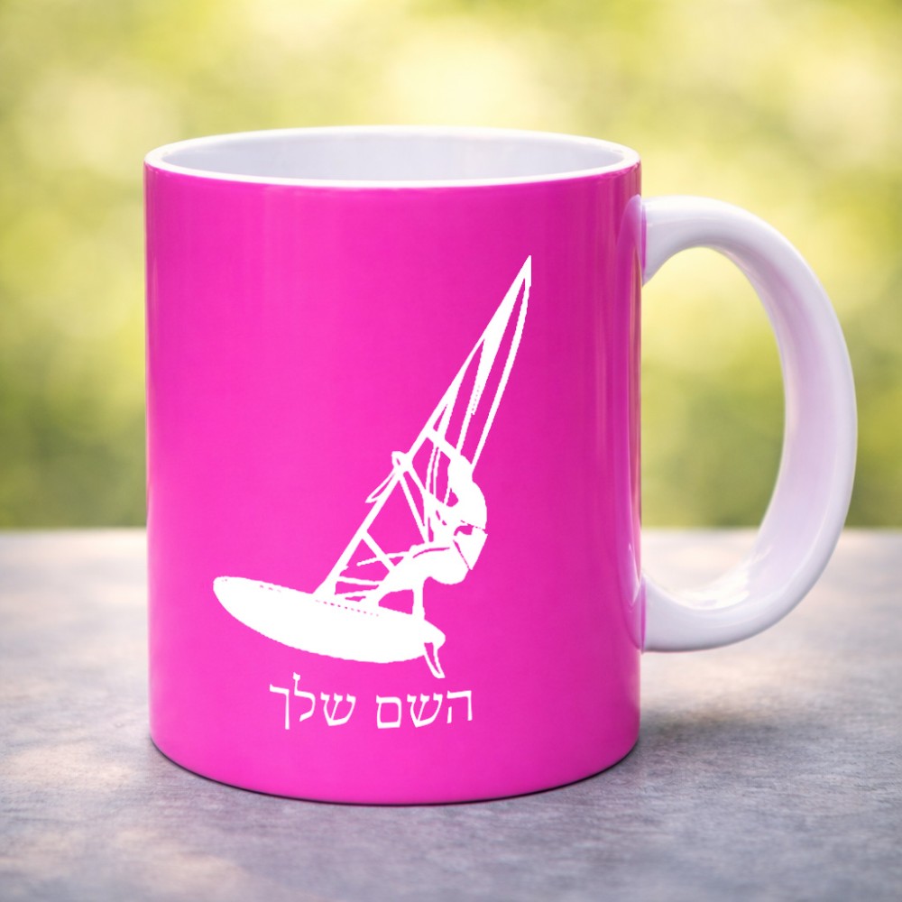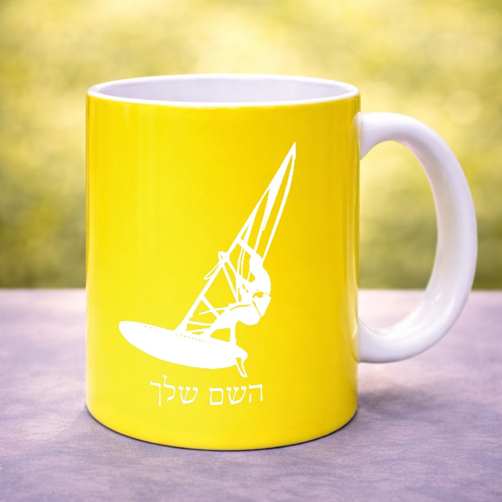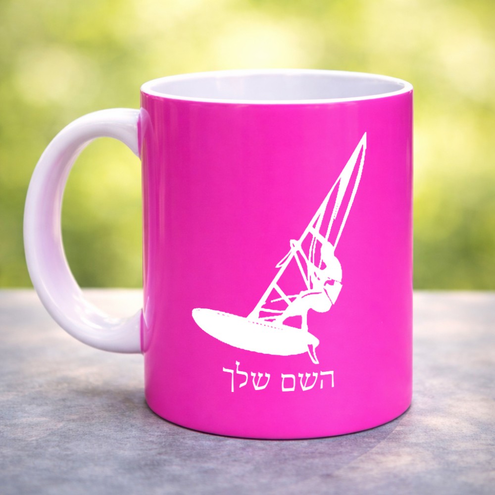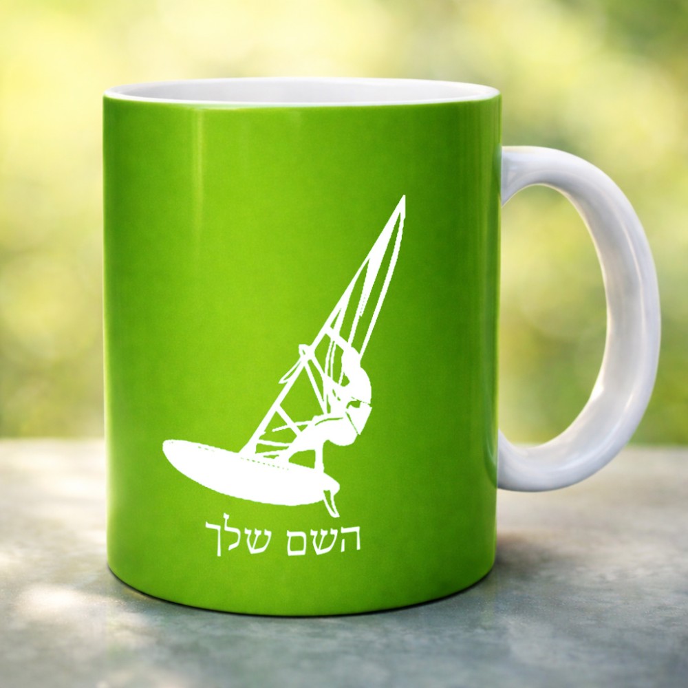 ספל תה \ קפה בעיצוב אישי עם השם שלך בעיצוב לגלוש - גלישה - שייט גדול הספל 325 מ"ל, הספל בעלת ידית לאחיזה יציבה. את השם המבוקש ניתן לציין בהזמנה, אם לא צויין אנחנו ניצור קשר לבירור.