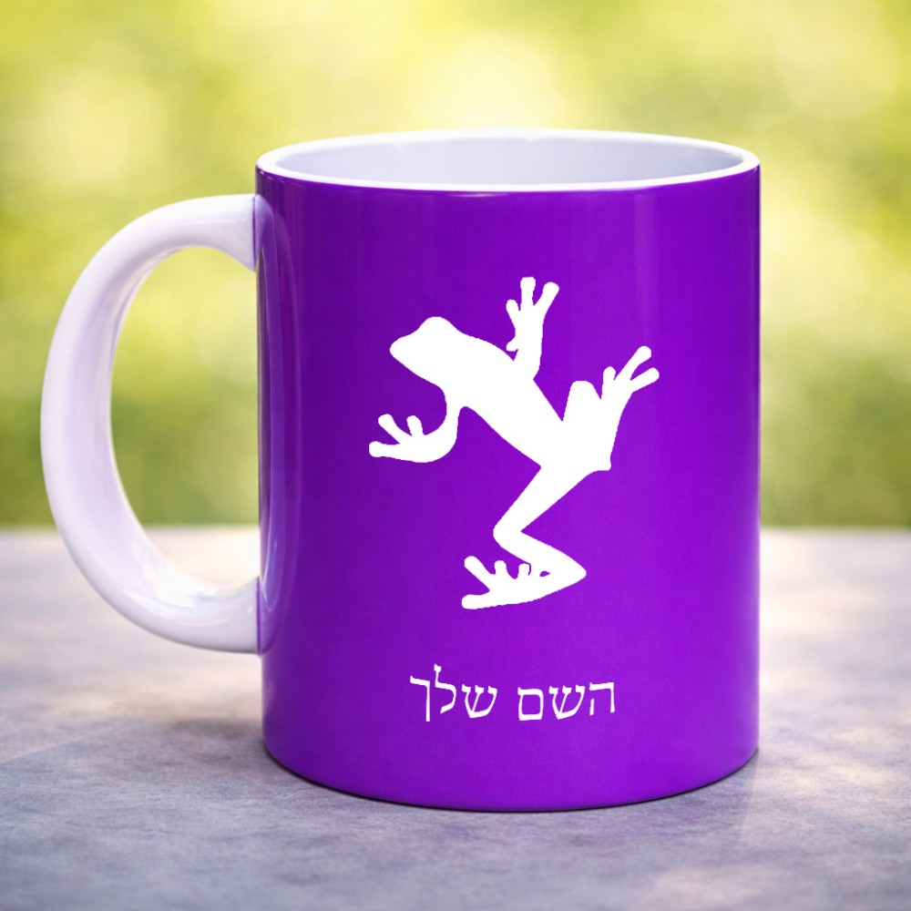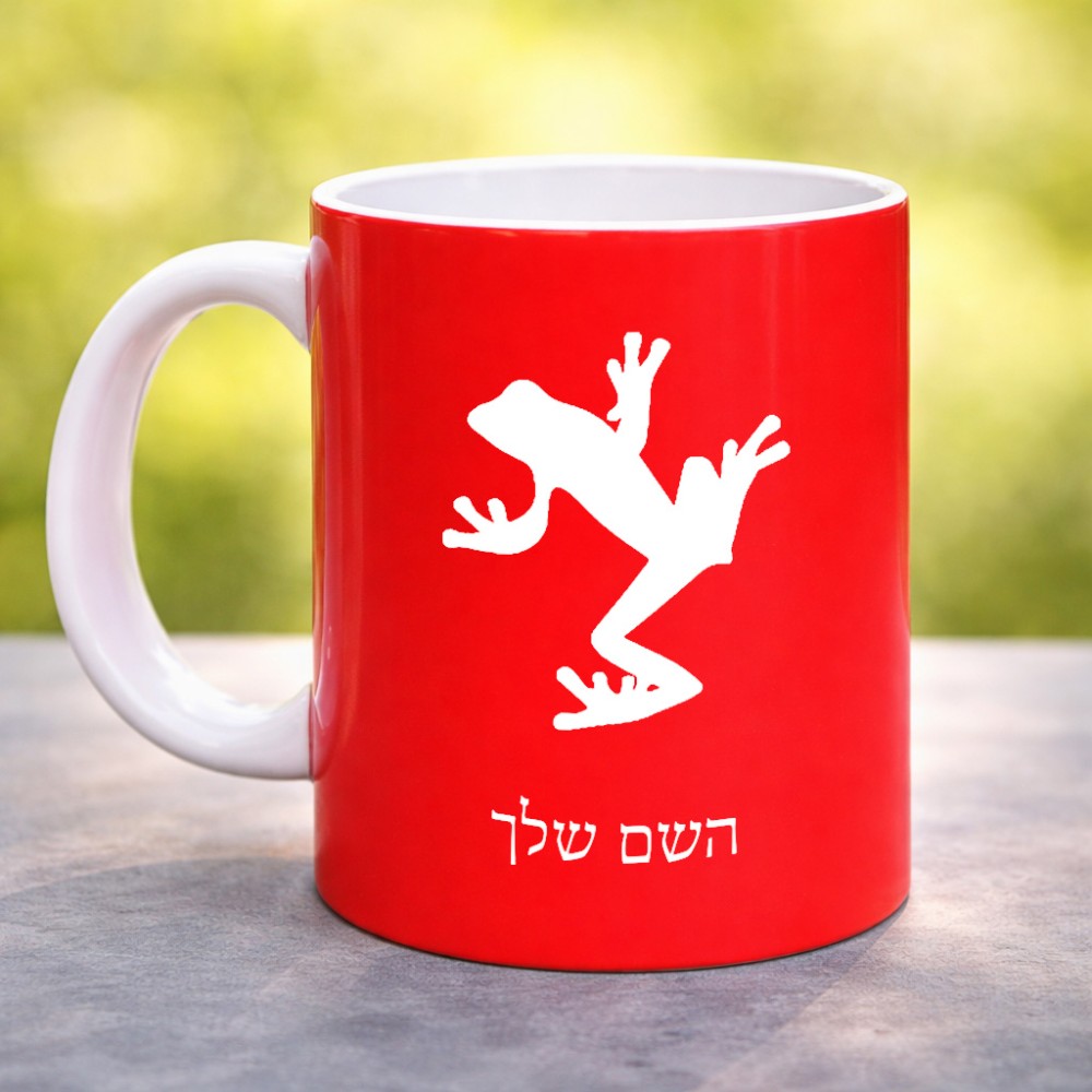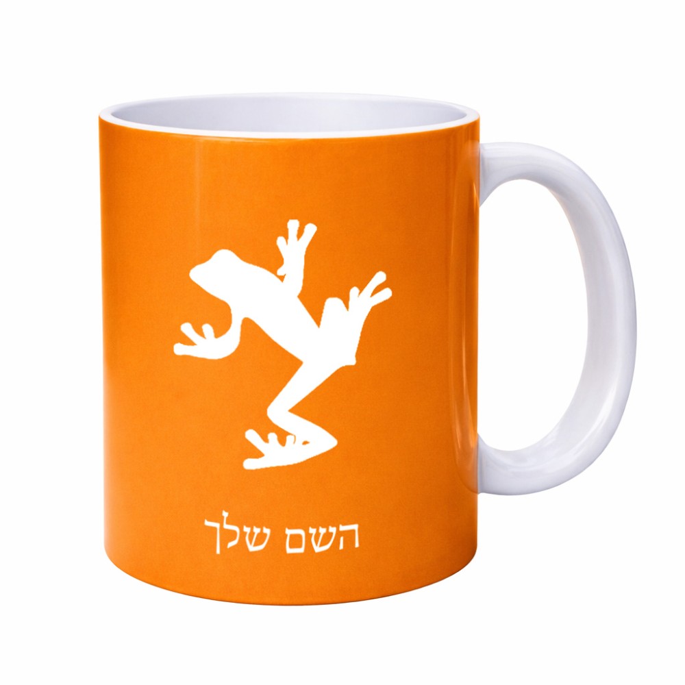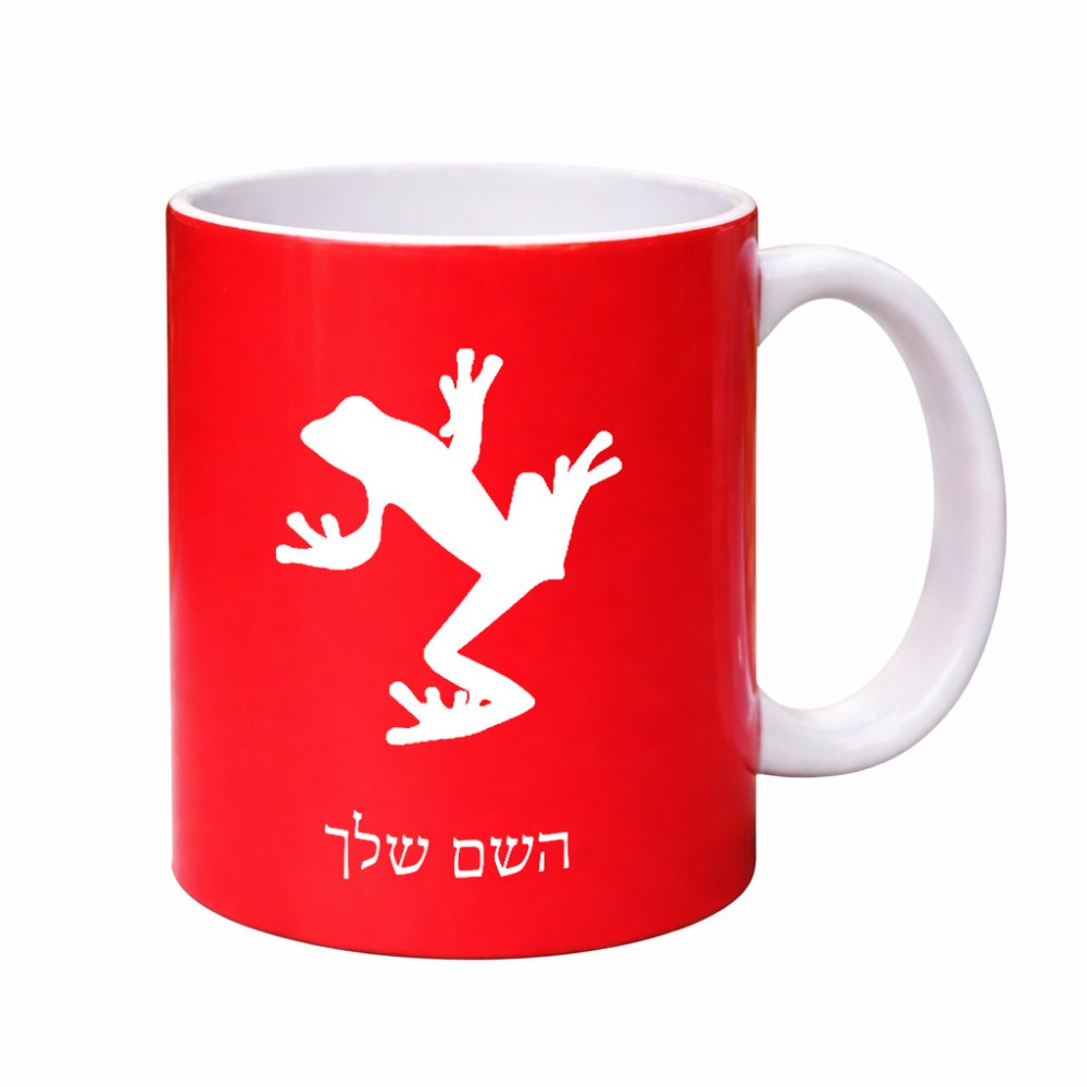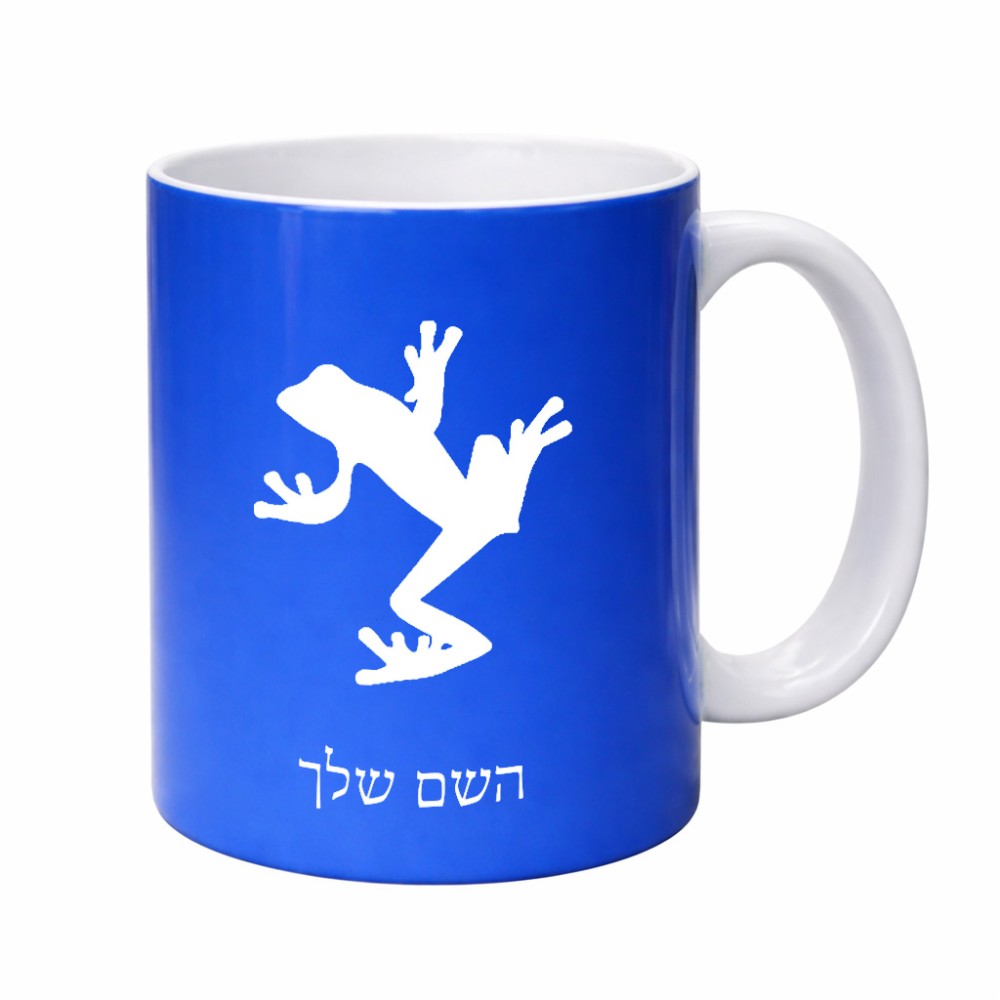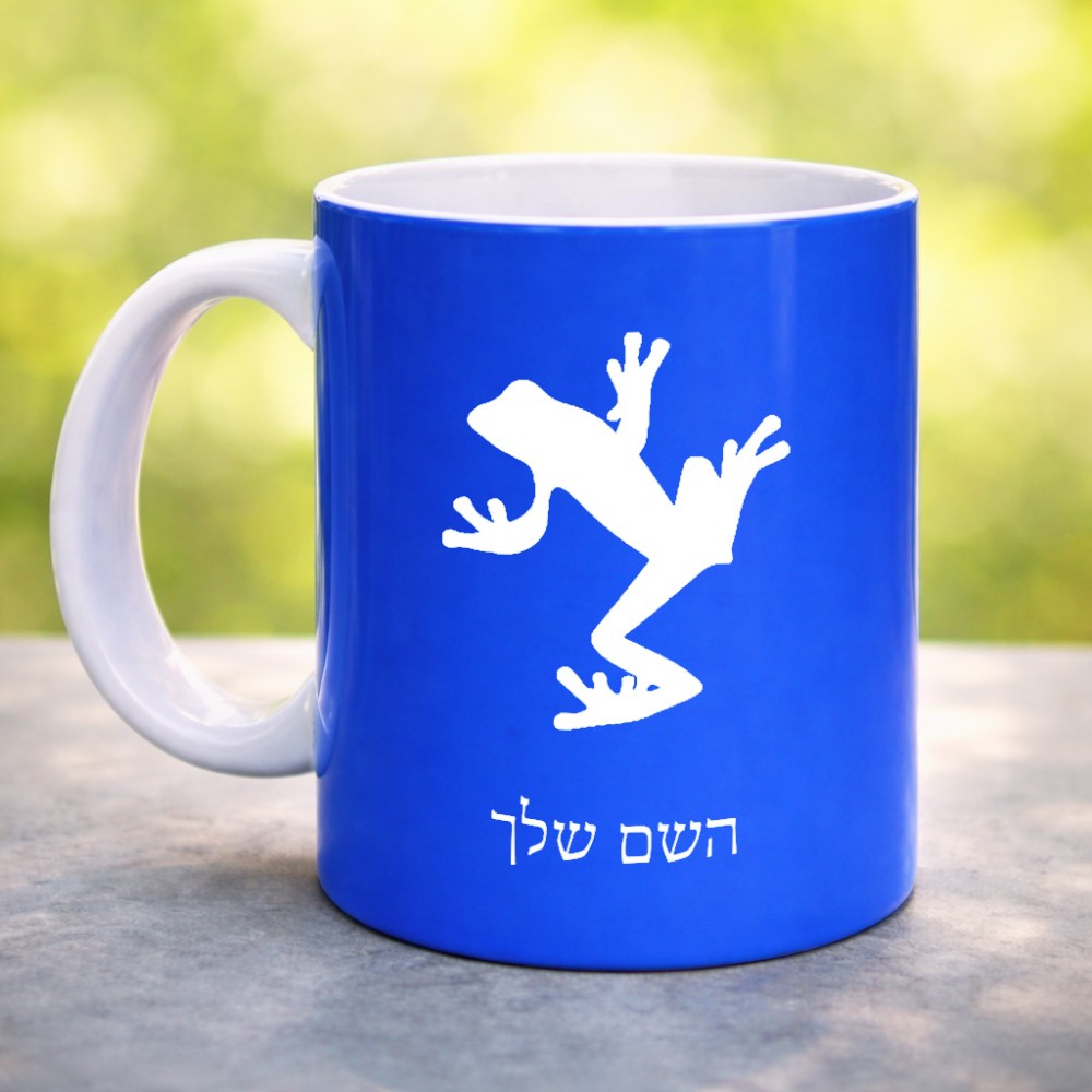 ספל תה \ קפה בעיצוב אישי עם השם שלך בעיצוב צפרדע טרופית גדול הספל 325 מ"ל, הספל בעלת ידית לאחיזה יציבה. את השם המבוקש ניתן לציין בהזמנה, אם לא צויין אנחנו ניצור קשר לבירור.