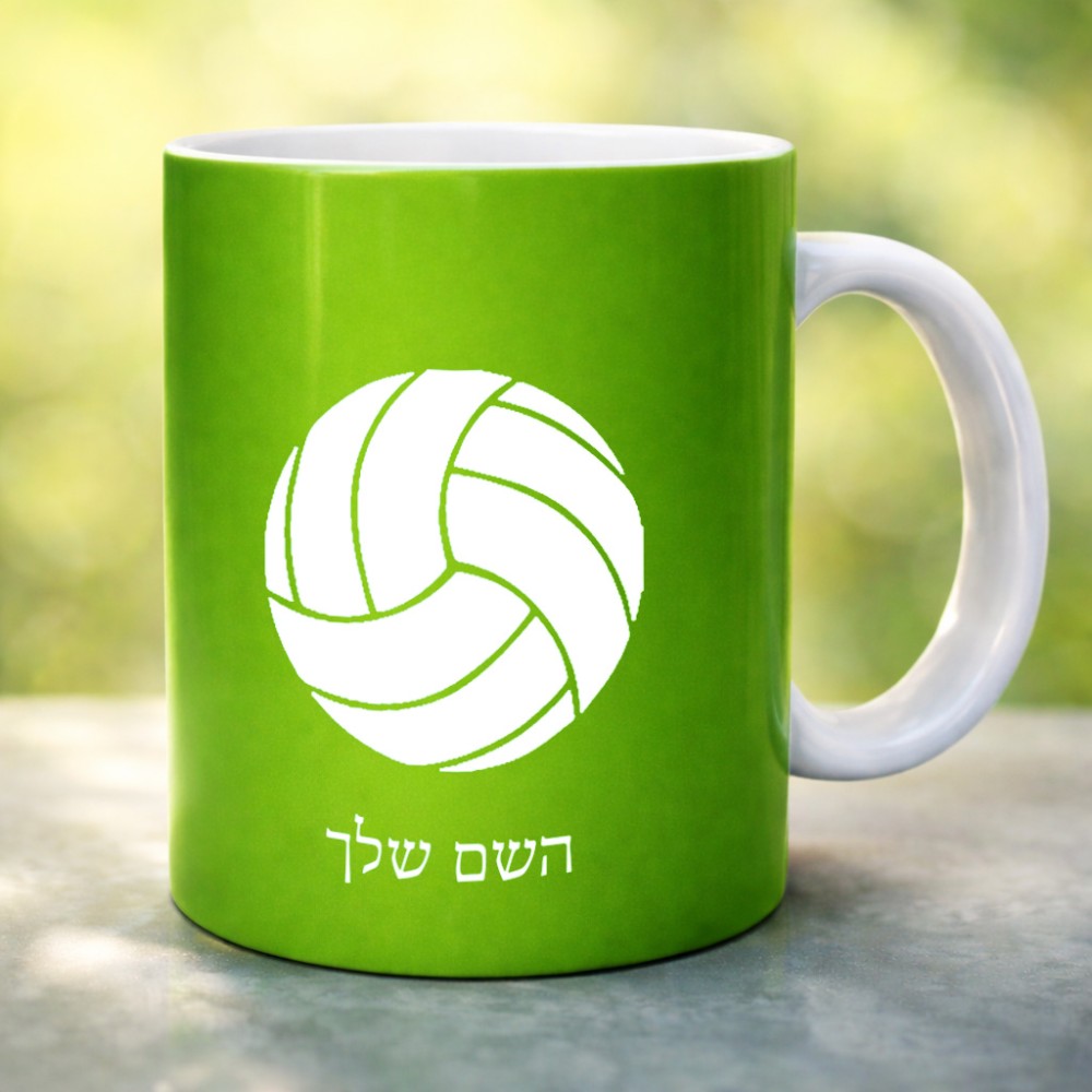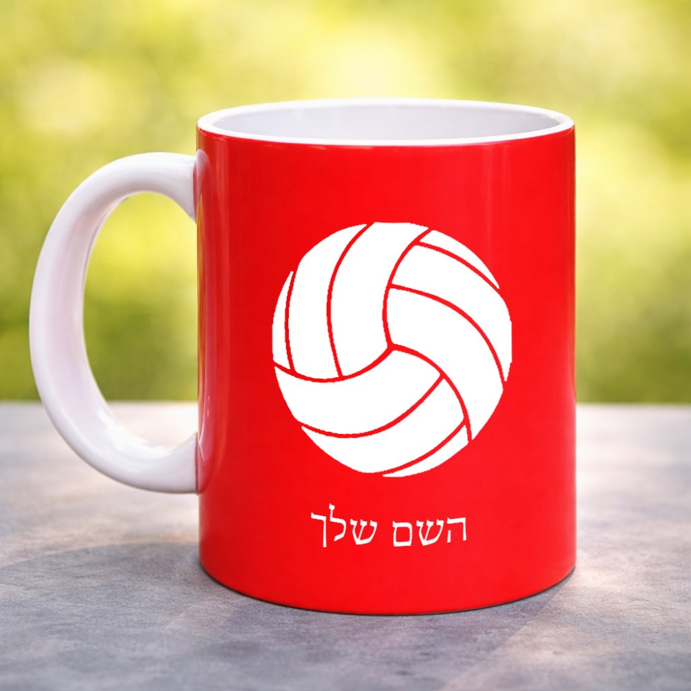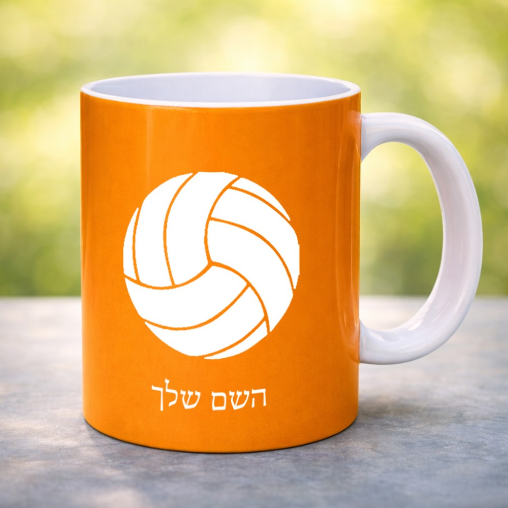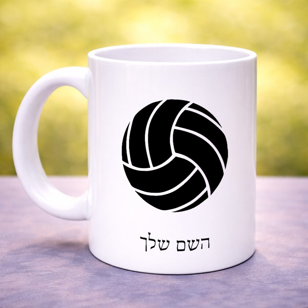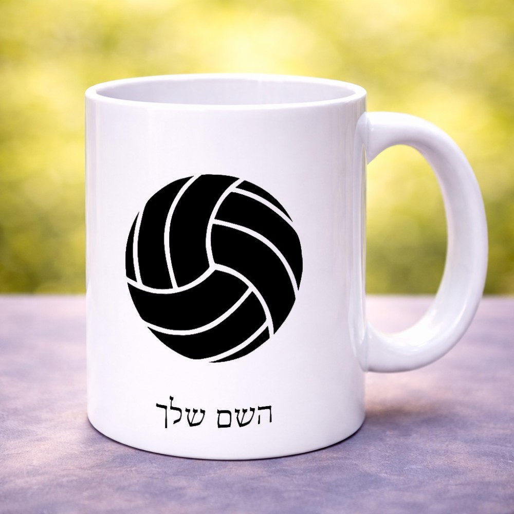 ספל תה \ קפה בעיצוב אישי עם השם שלך בעיצוב כדור כדורעף גדול הספל 325 מ"ל, הספל בעלת ידית לאחיזה יציבה. את השם המבוקש ניתן לציין בהזמנה, אם לא צויין אנחנו ניצור קשר לבירור.