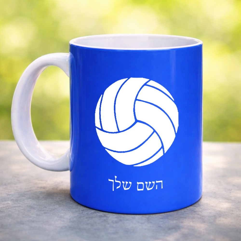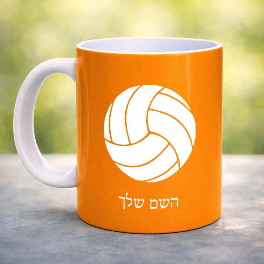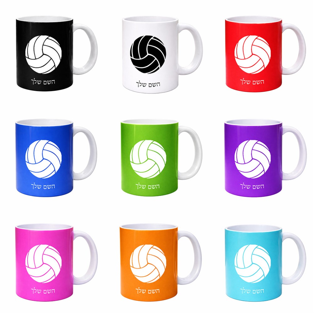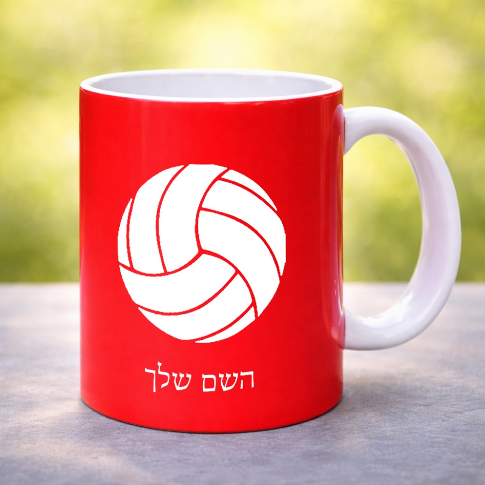 ספל תה \ קפה בעיצוב אישי עם השם שלך בעיצוב כדור כדורעף גדול הספל 325 מ"ל, הספל בעלת ידית לאחיזה יציבה. את השם המבוקש ניתן לציין בהזמנה, אם לא צויין אנחנו ניצור קשר לבירור.