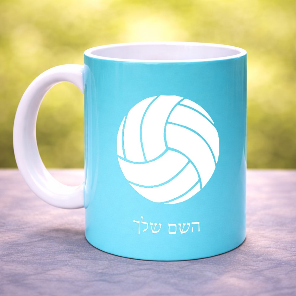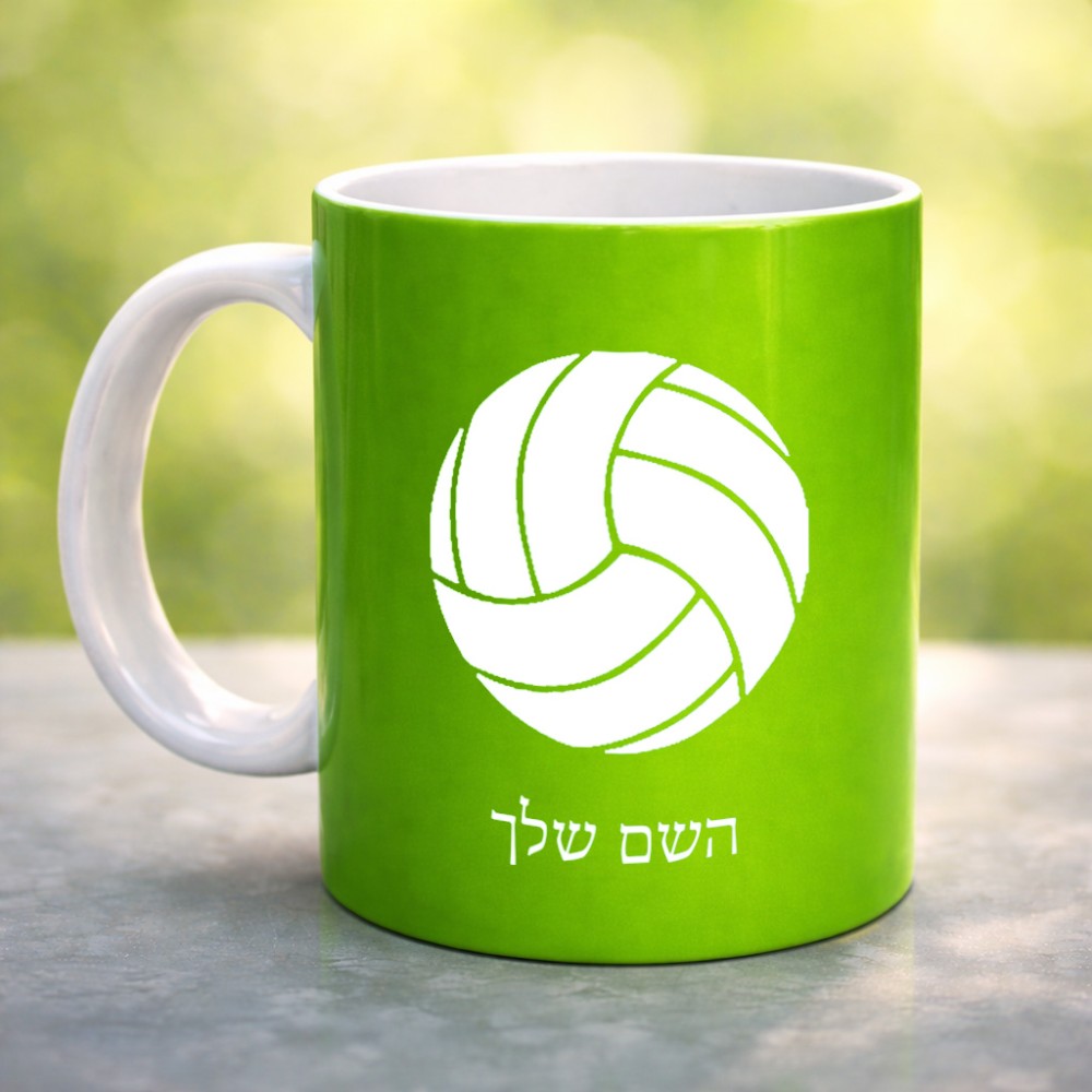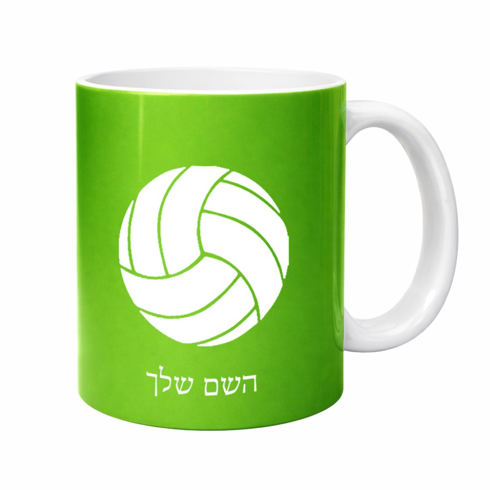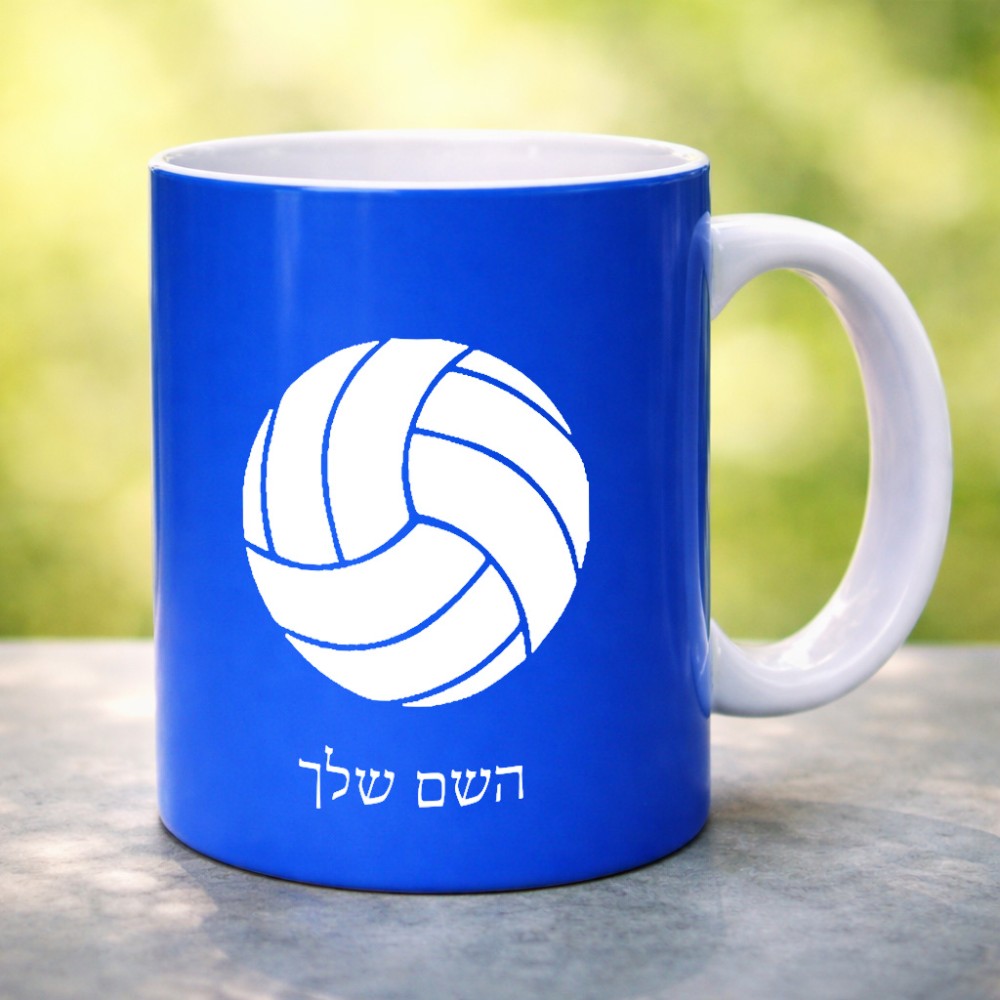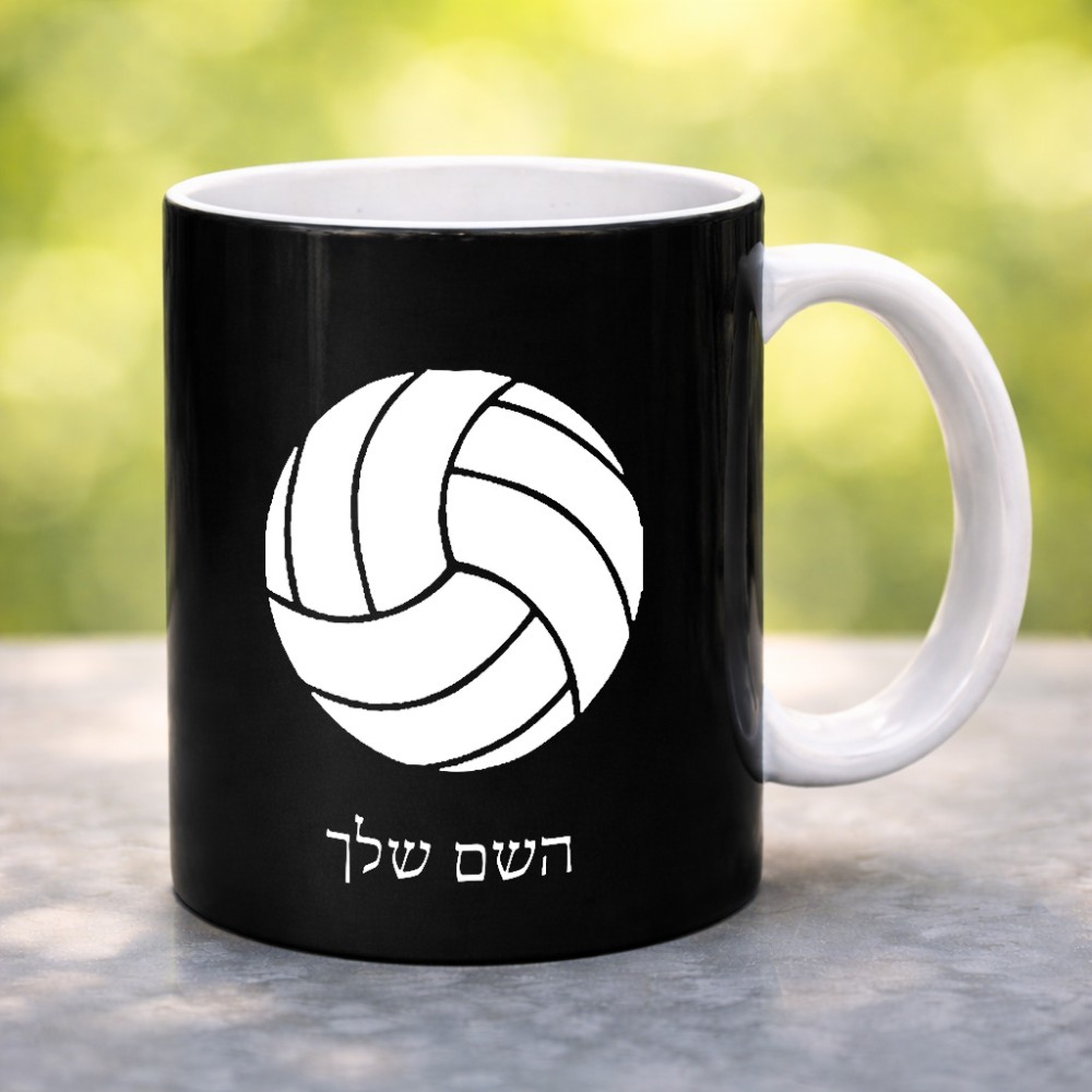 ספל תה \ קפה בעיצוב אישי עם השם שלך בעיצוב כדור כדורעף גדול הספל 325 מ"ל, הספל בעלת ידית לאחיזה יציבה. את השם המבוקש ניתן לציין בהזמנה, אם לא צויין אנחנו ניצור קשר לבירור.