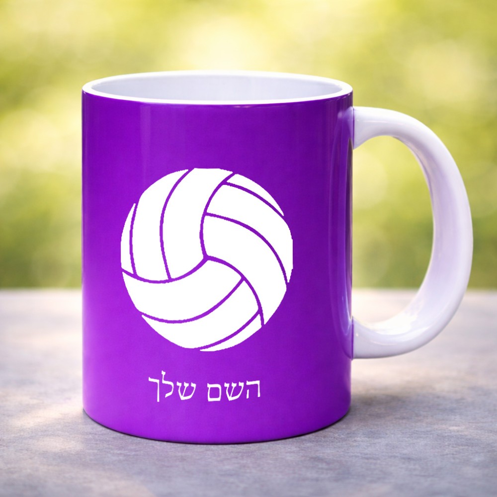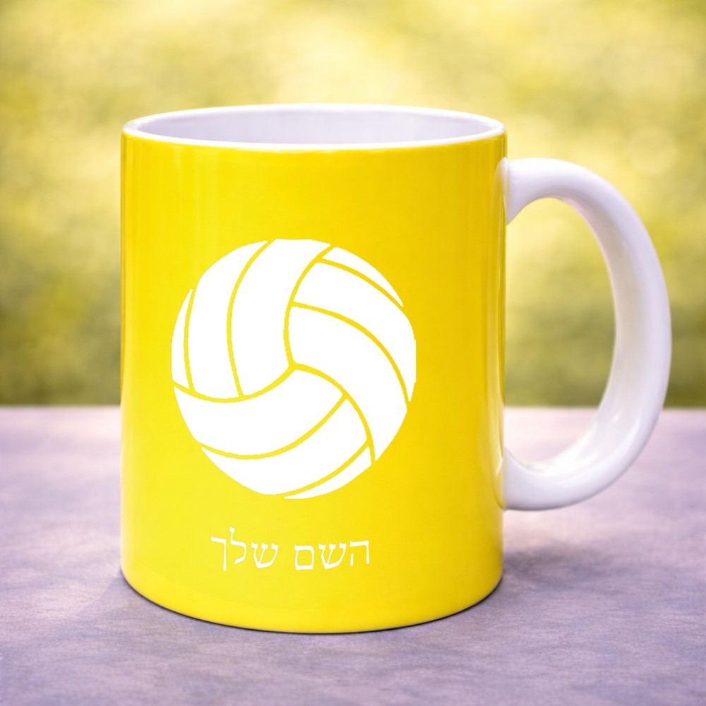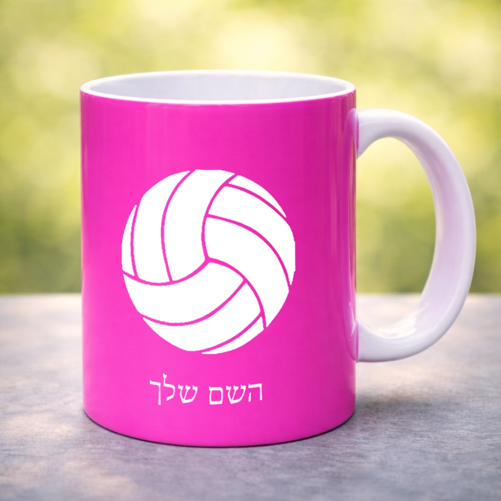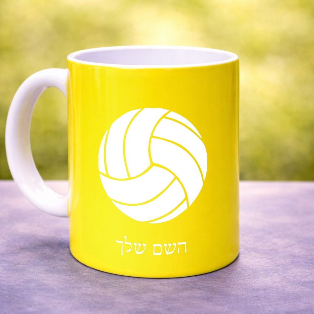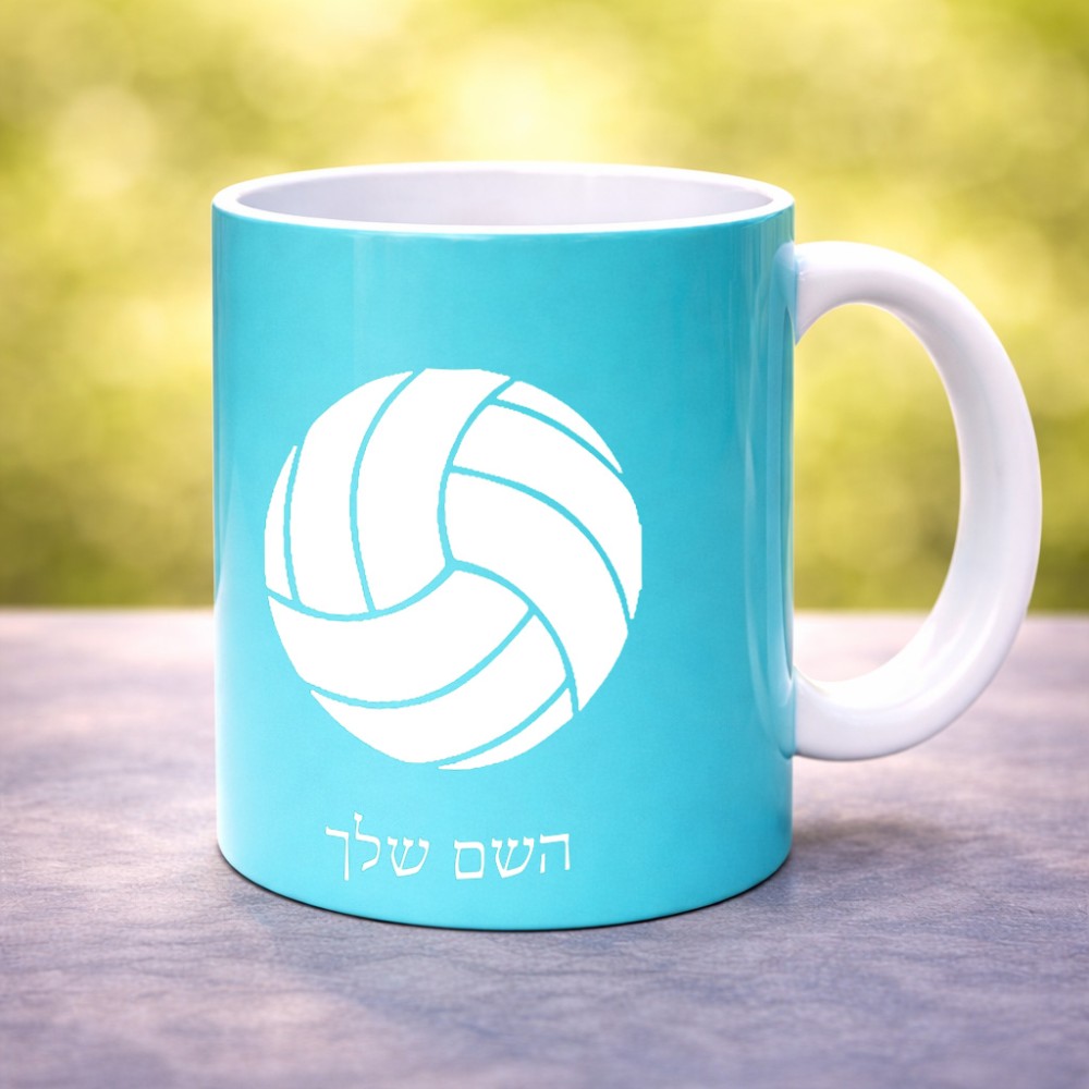 ספל תה \ קפה בעיצוב אישי עם השם שלך בעיצוב כדור כדורעף גדול הספל 325 מ"ל, הספל בעלת ידית לאחיזה יציבה. את השם המבוקש ניתן לציין בהזמנה, אם לא צויין אנחנו ניצור קשר לבירור.