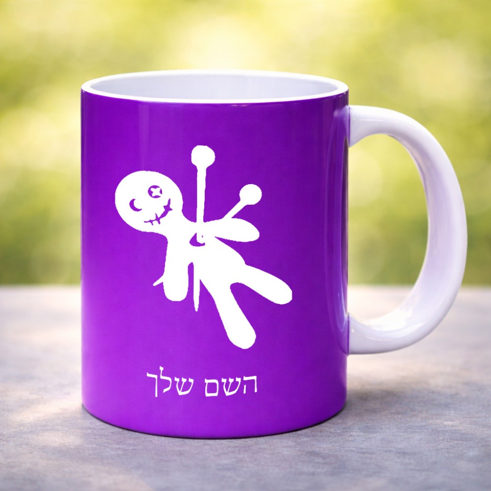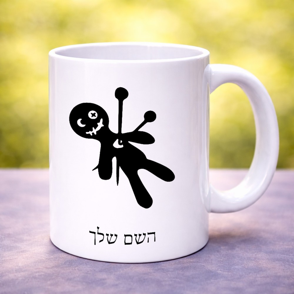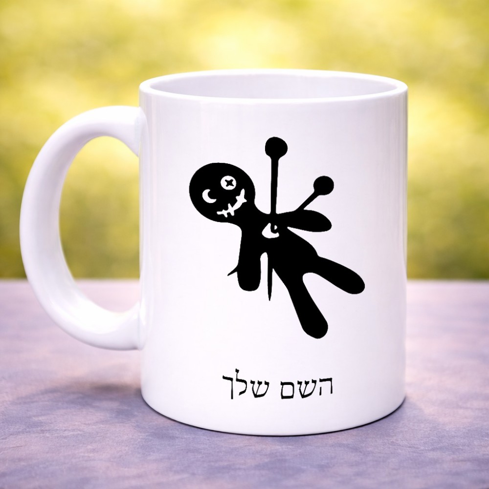 ספל תה \ קפה בעיצוב אישי עם השם שלך בעיצוב וודו גדול הספל 325 מ"ל, הספל בעלת ידית לאחיזה יציבה. את השם המבוקש ניתן לציין בהזמנה, אם לא צויין אנחנו ניצור קשר לבירור.