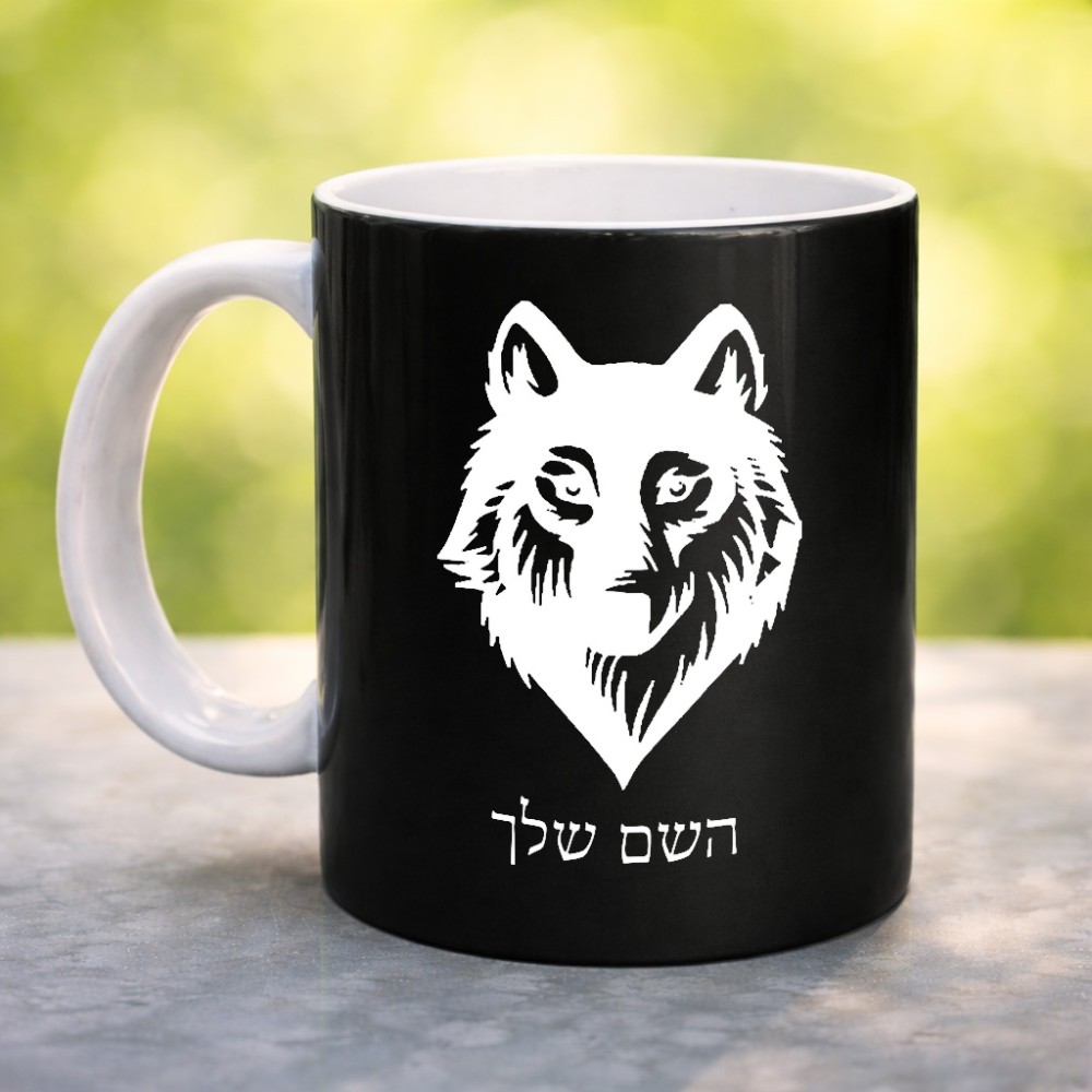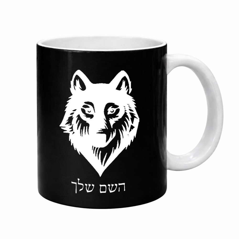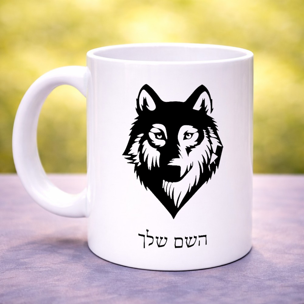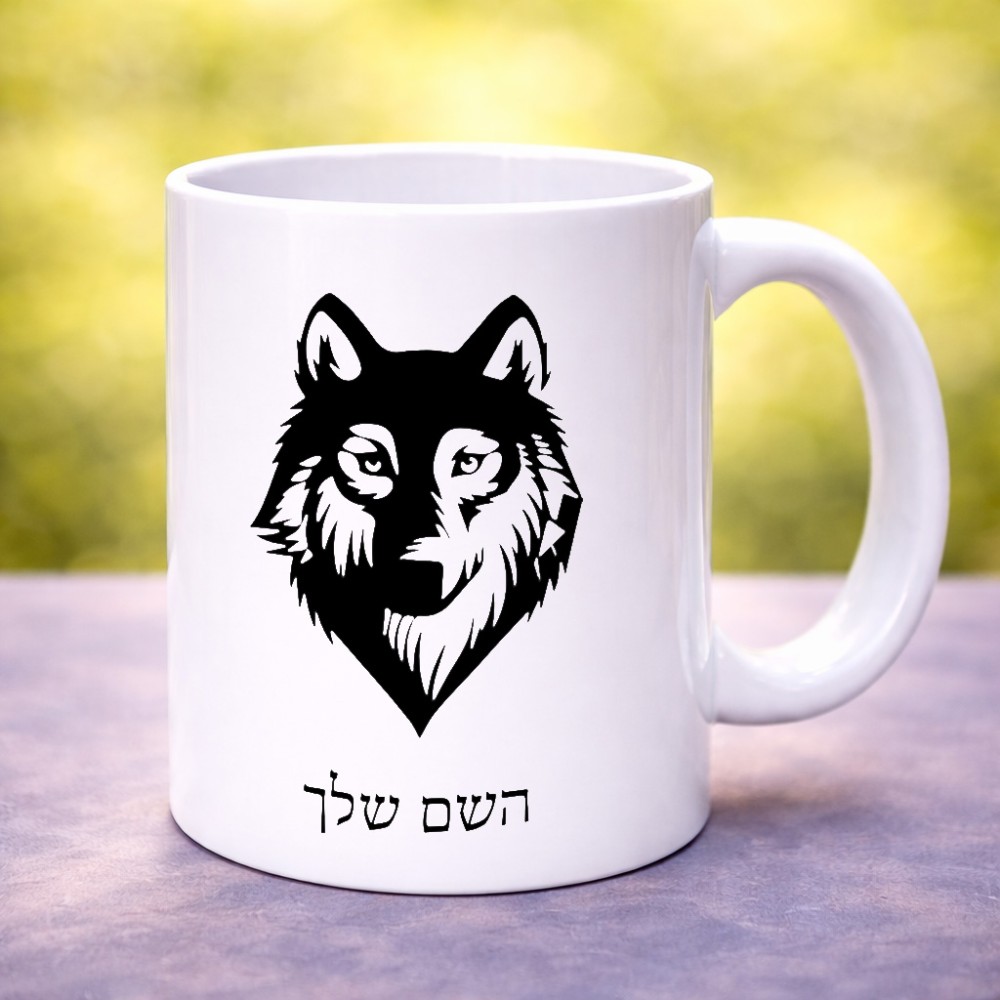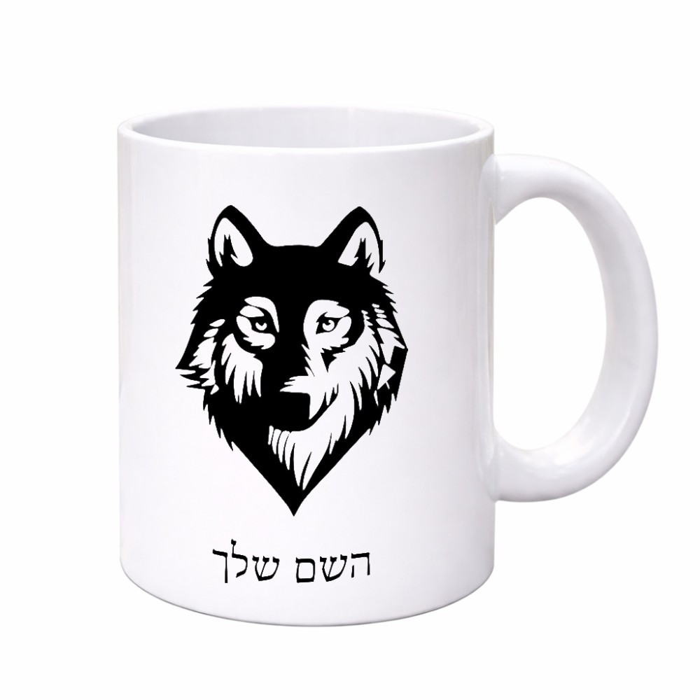 ספל תה \ קפה בעיצוב אישי עם השם שלך בעיצוב זאב גדול הספל 325 מ"ל, הספל בעלת ידית לאחיזה יציבה. את השם המבוקש ניתן לציין בהזמנה, אם לא צויין אנחנו ניצור קשר לבירור.