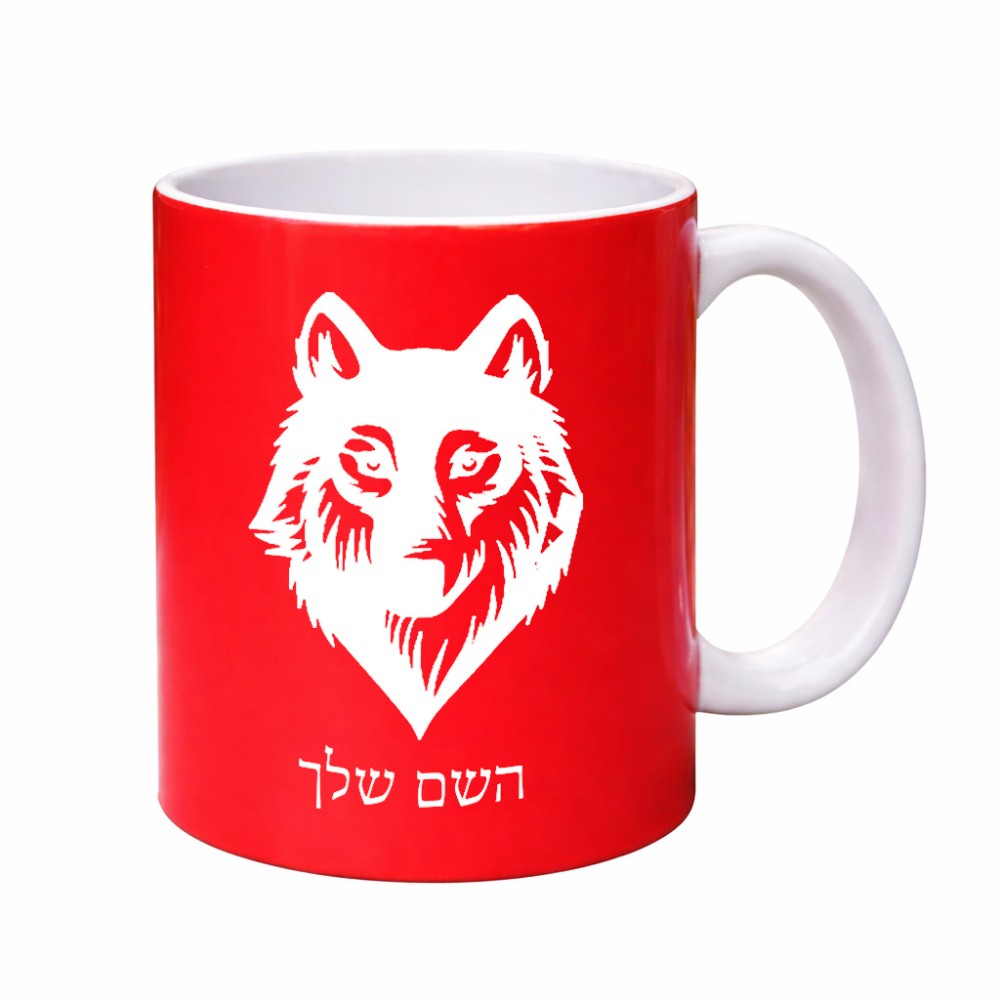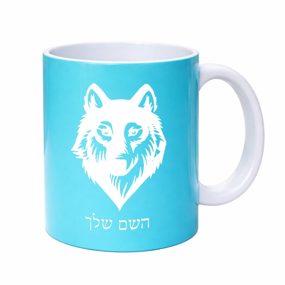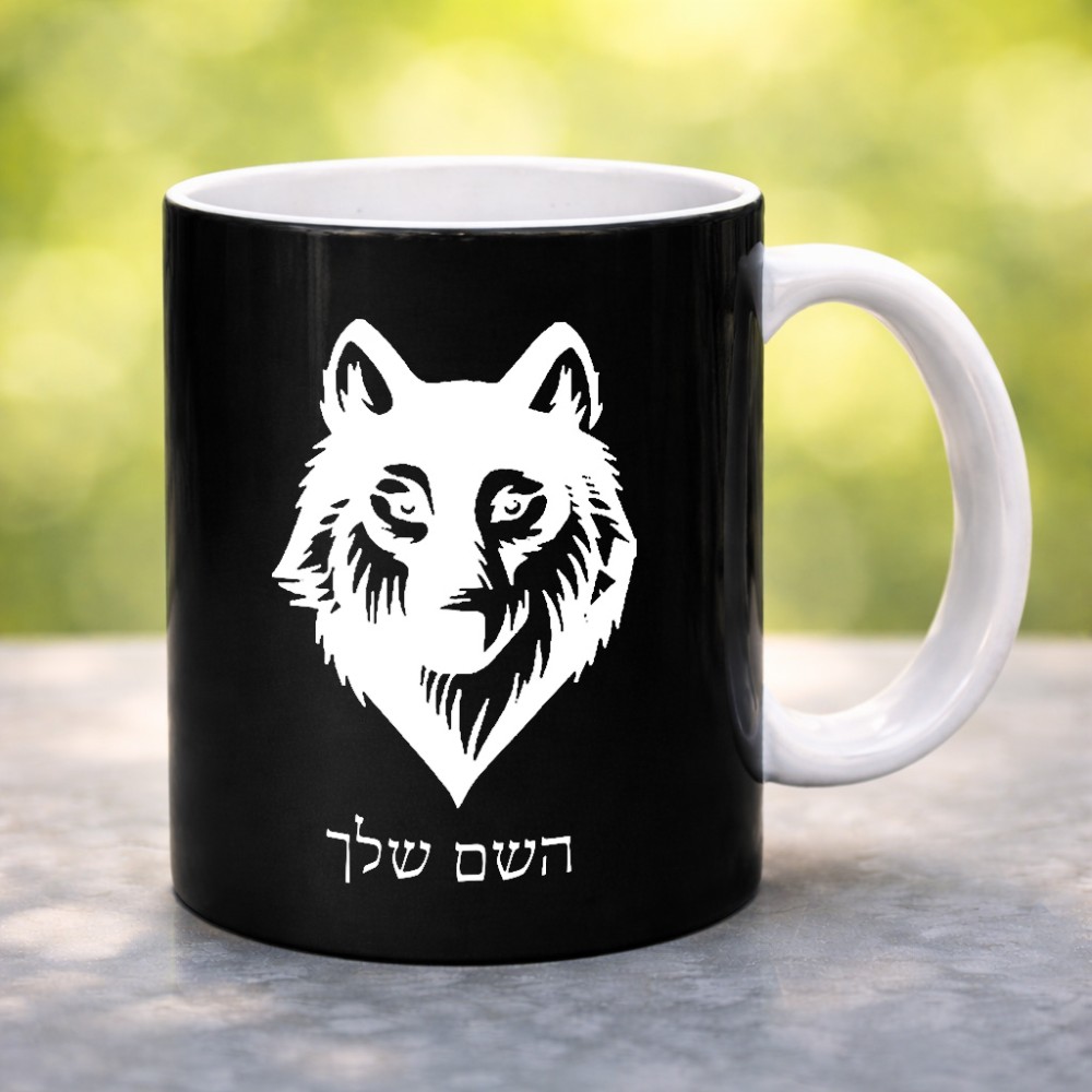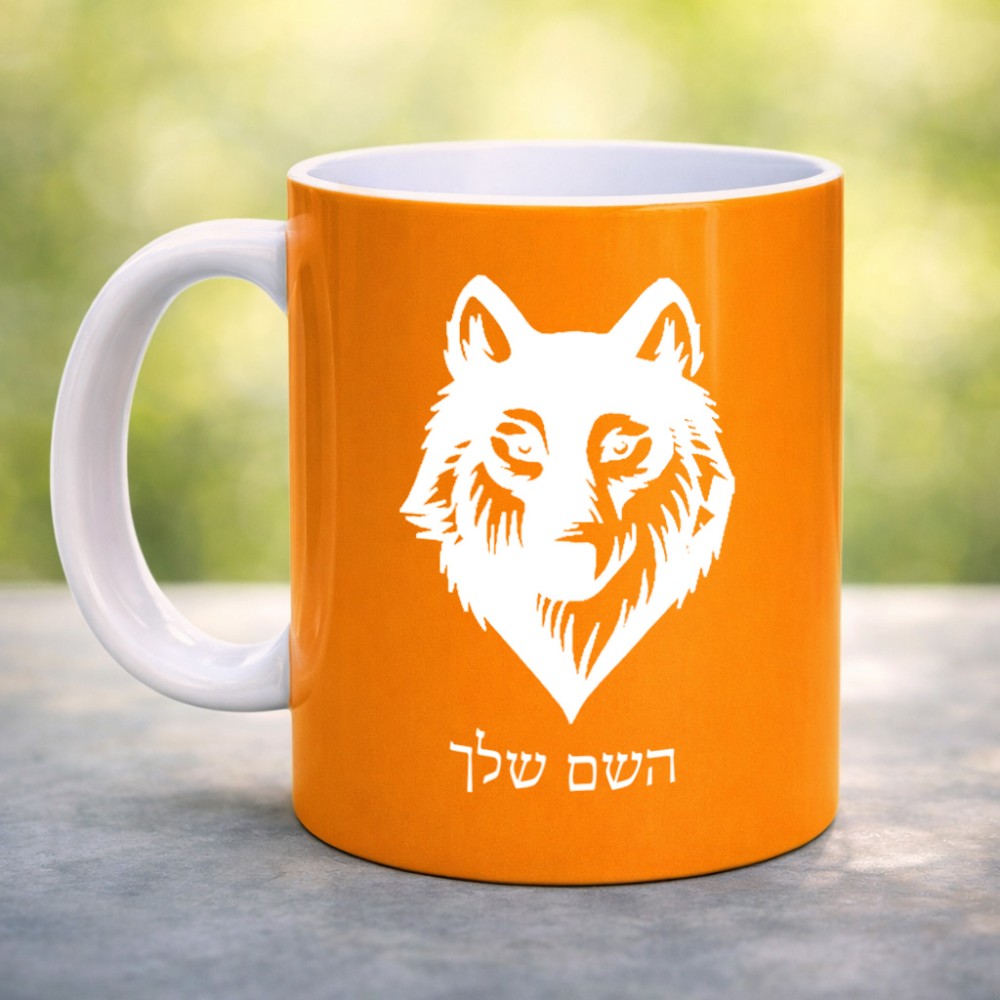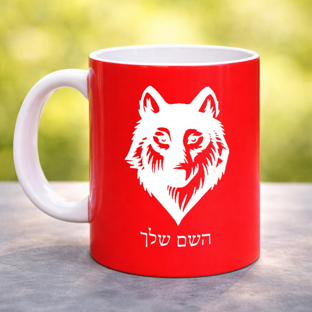 ספל תה \ קפה בעיצוב אישי עם השם שלך בעיצוב זאב גדול הספל 325 מ"ל, הספל בעלת ידית לאחיזה יציבה. את השם המבוקש ניתן לציין בהזמנה, אם לא צויין אנחנו ניצור קשר לבירור.