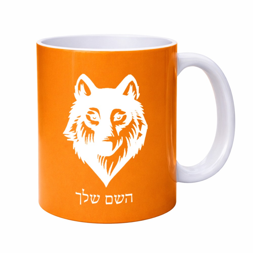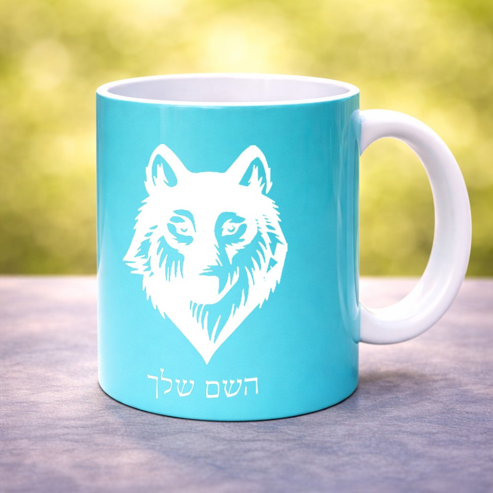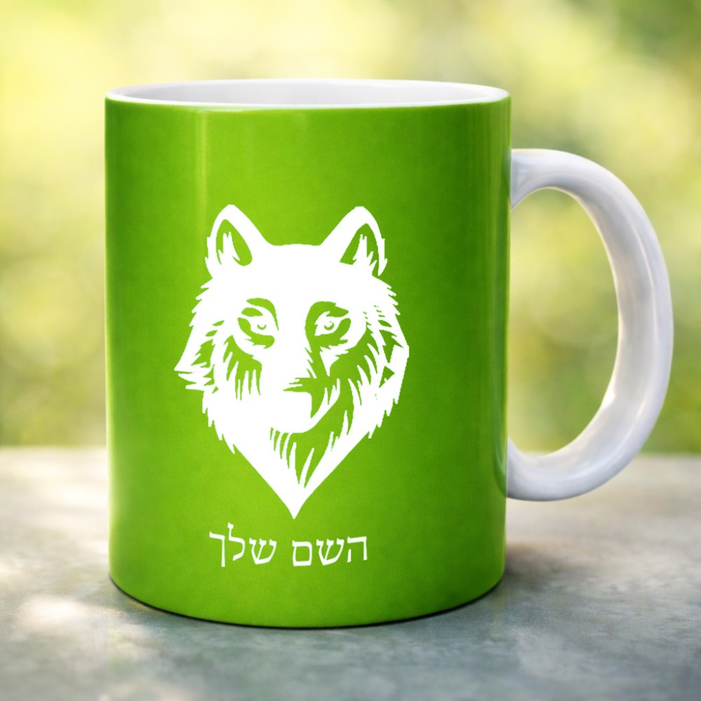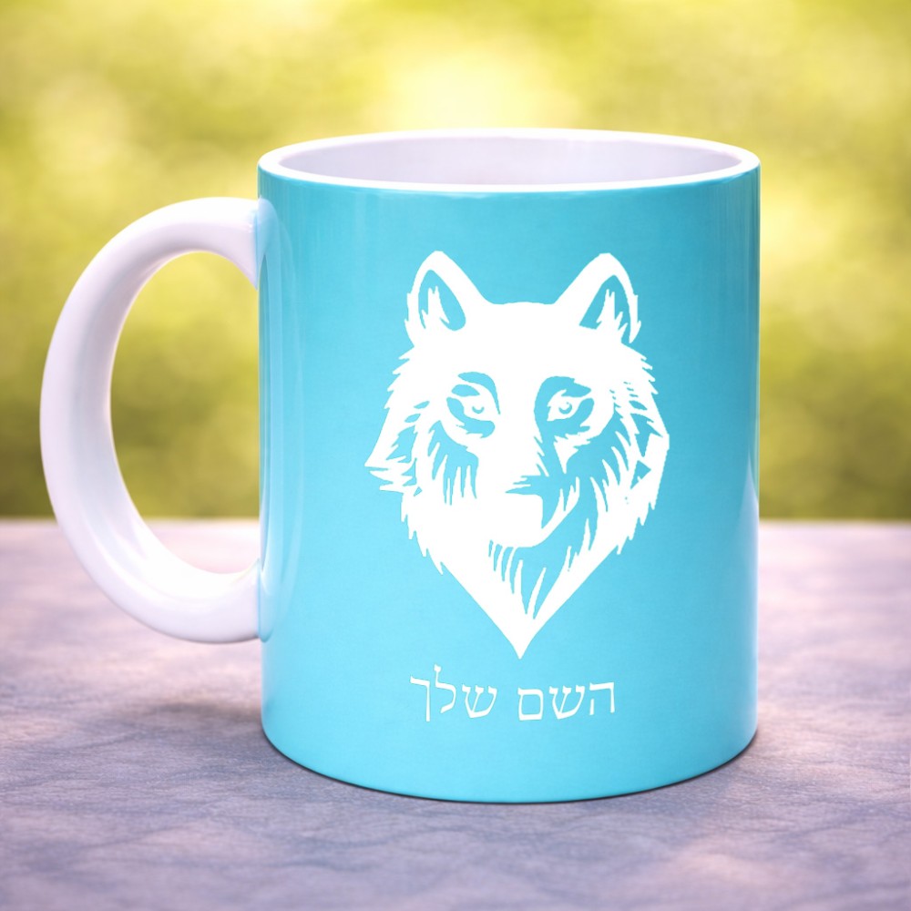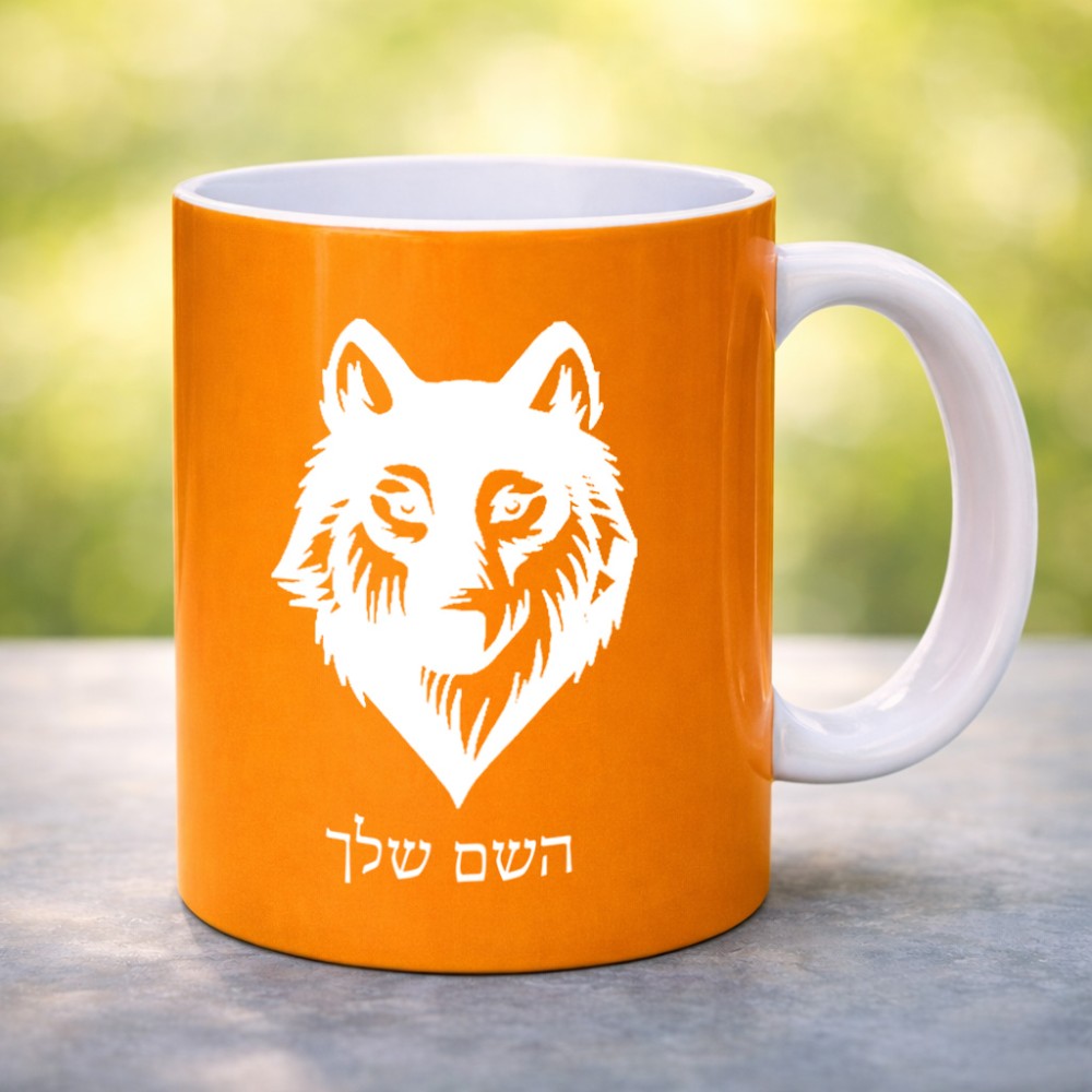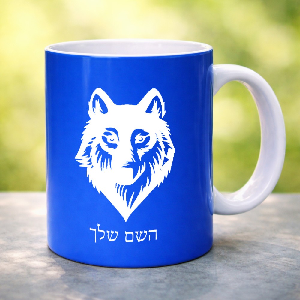 ספל תה \ קפה בעיצוב אישי עם השם שלך בעיצוב זאב גדול הספל 325 מ"ל, הספל בעלת ידית לאחיזה יציבה. את השם המבוקש ניתן לציין בהזמנה, אם לא צויין אנחנו ניצור קשר לבירור.