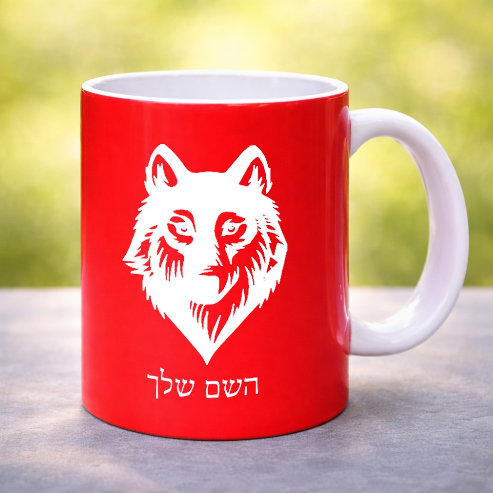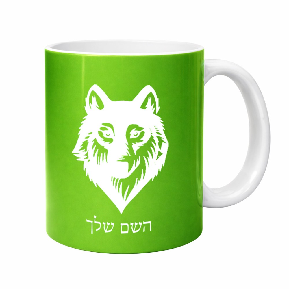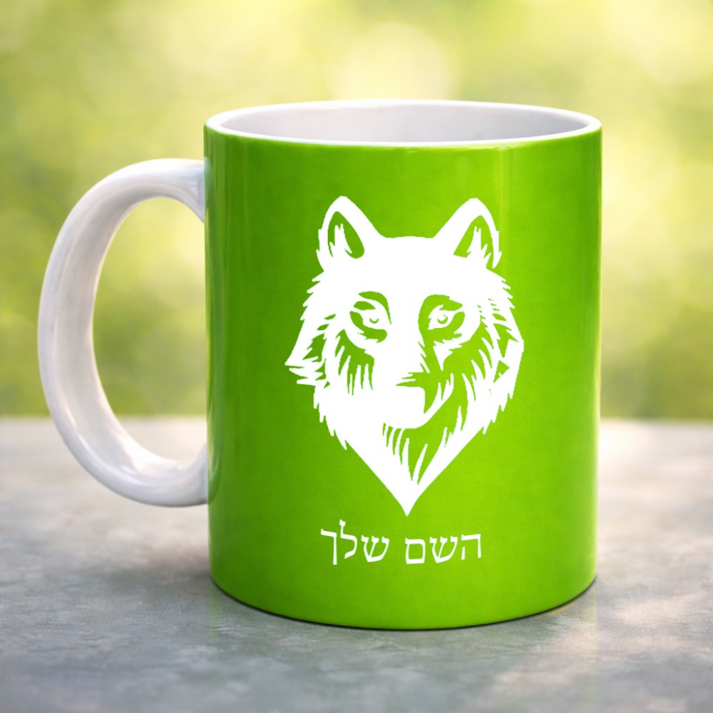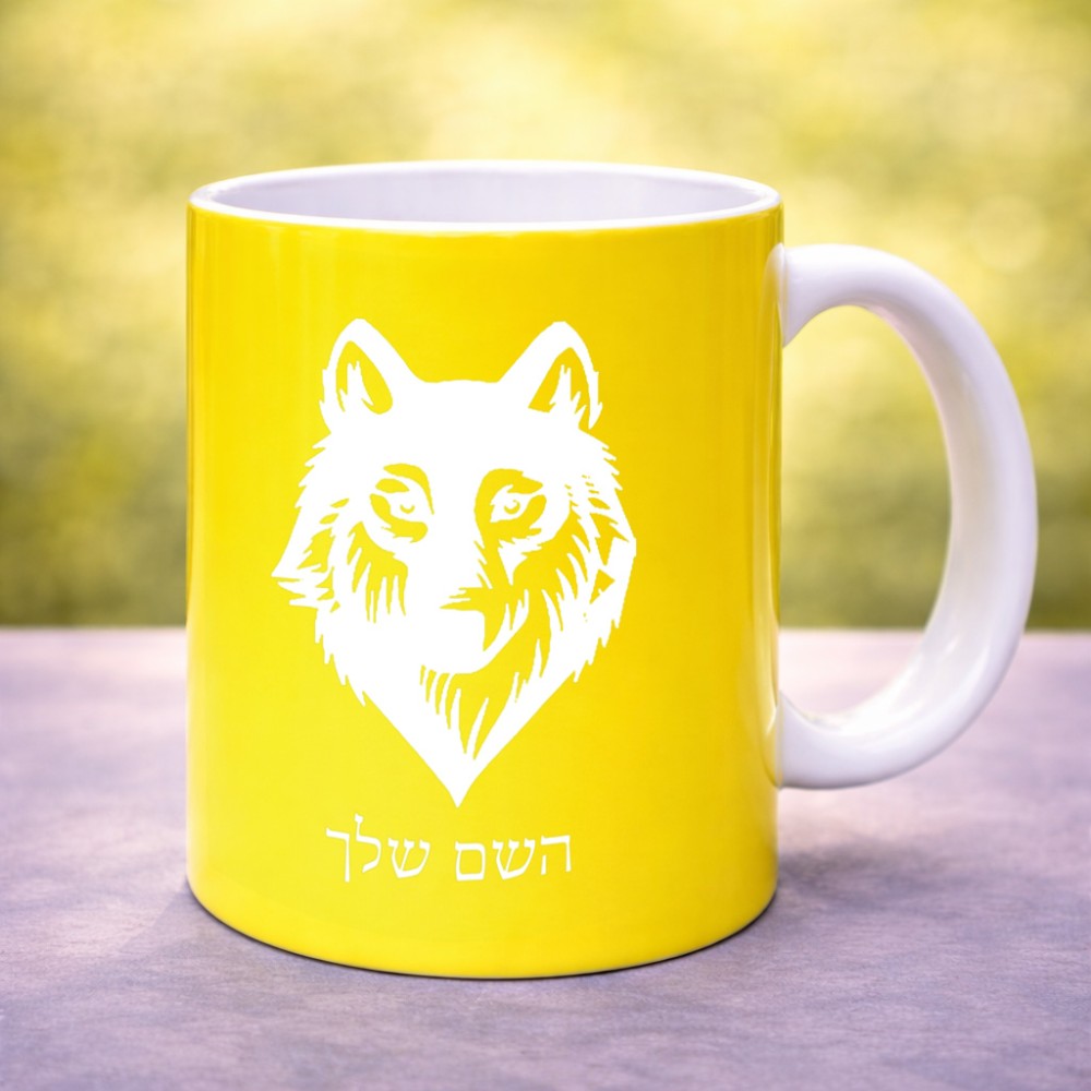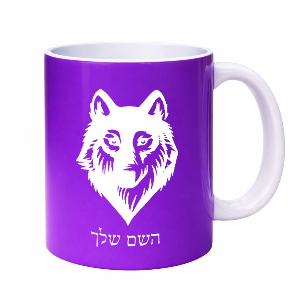 ספל תה \ קפה בעיצוב אישי עם השם שלך בעיצוב זאב גדול הספל 325 מ"ל, הספל בעלת ידית לאחיזה יציבה. את השם המבוקש ניתן לציין בהזמנה, אם לא צויין אנחנו ניצור קשר לבירור.