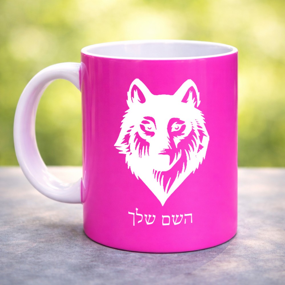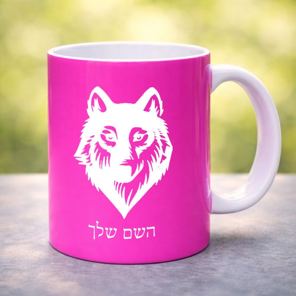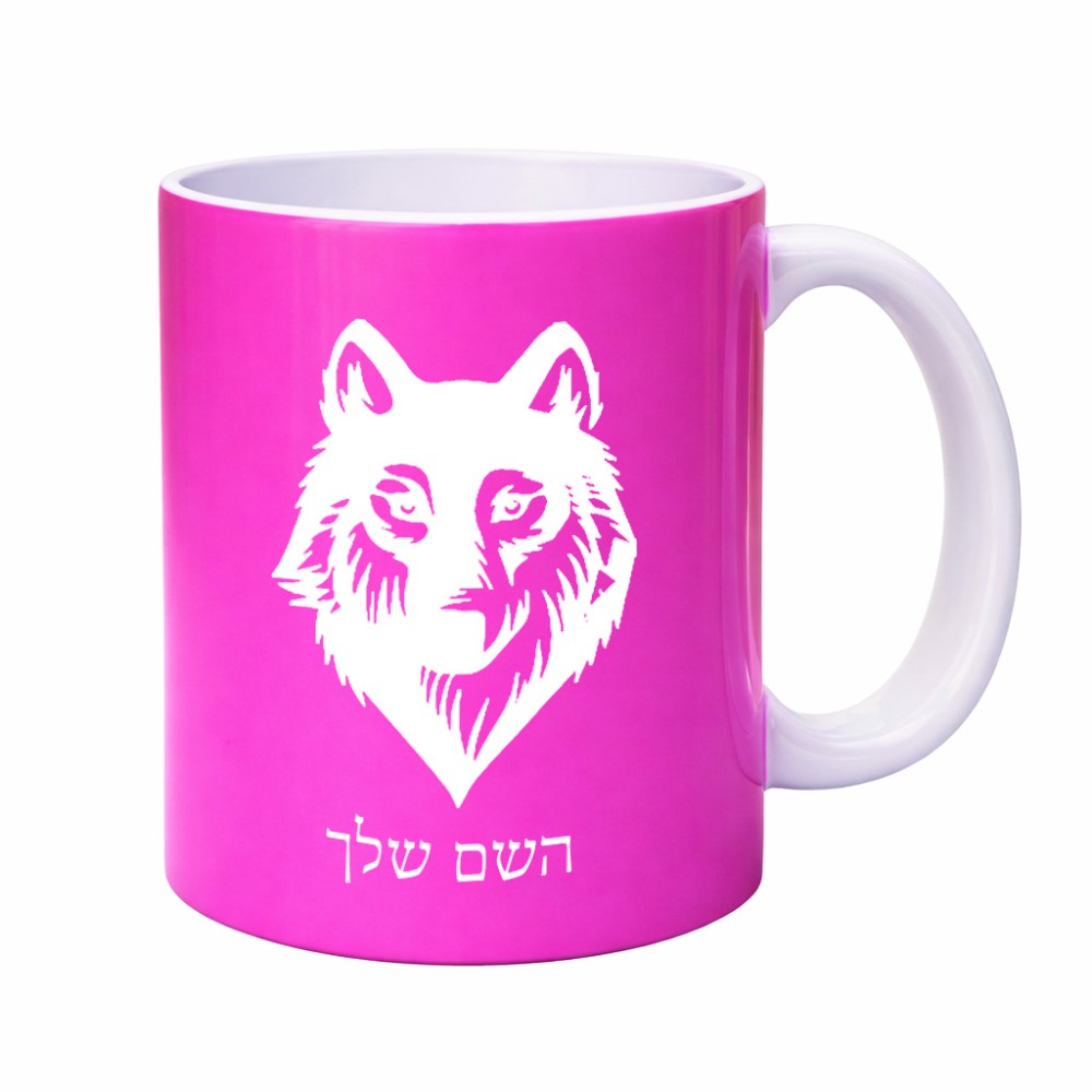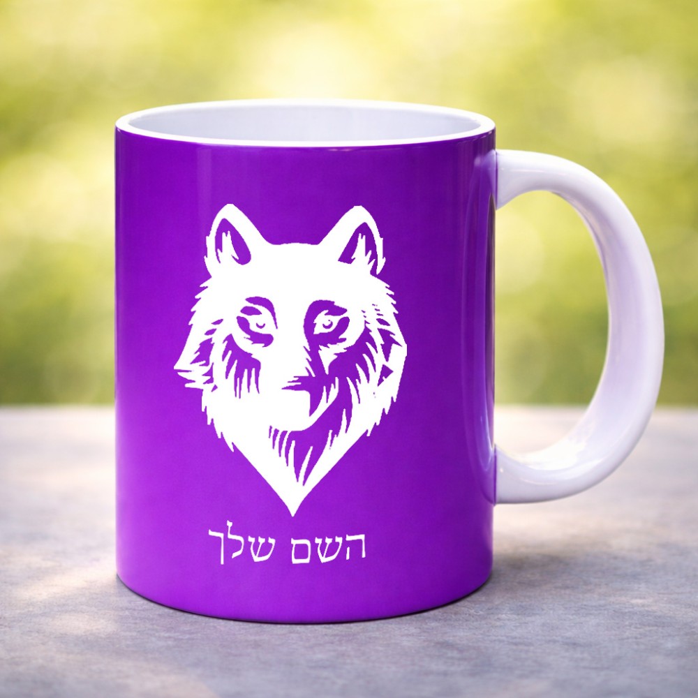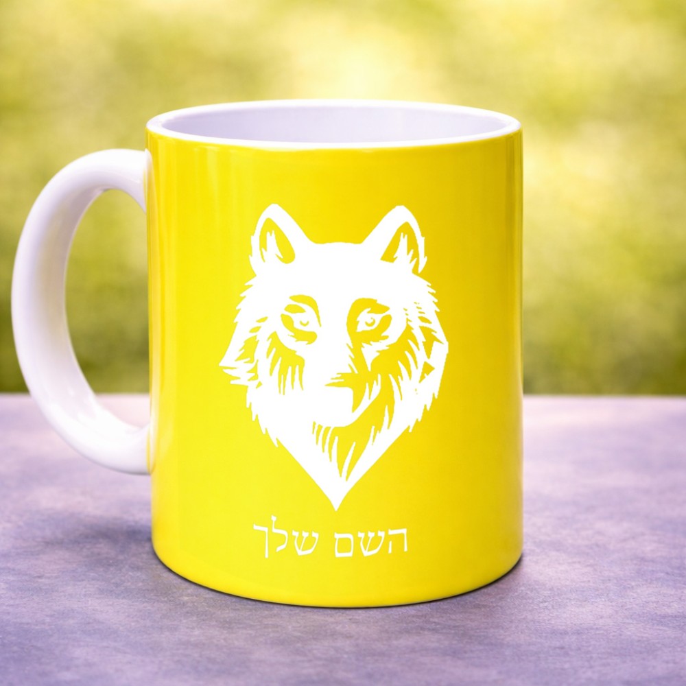 ספל תה \ קפה בעיצוב אישי עם השם שלך בעיצוב זאב גדול הספל 325 מ"ל, הספל בעלת ידית לאחיזה יציבה. את השם המבוקש ניתן לציין בהזמנה, אם לא צויין אנחנו ניצור קשר לבירור.