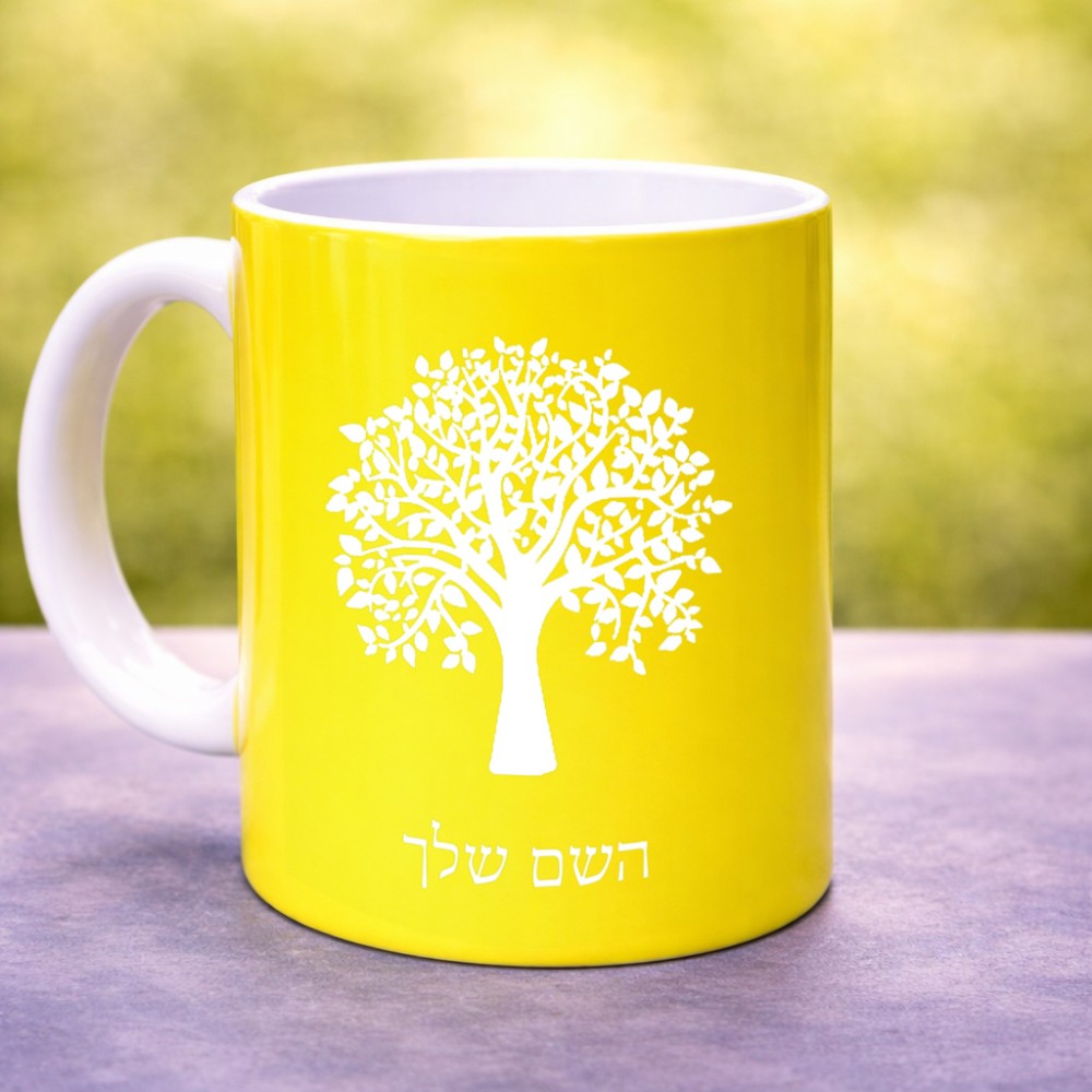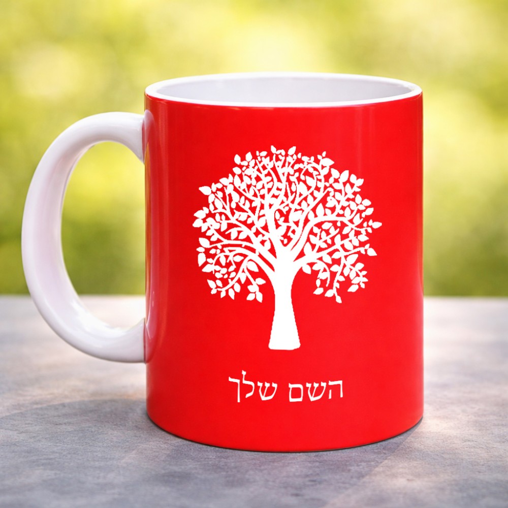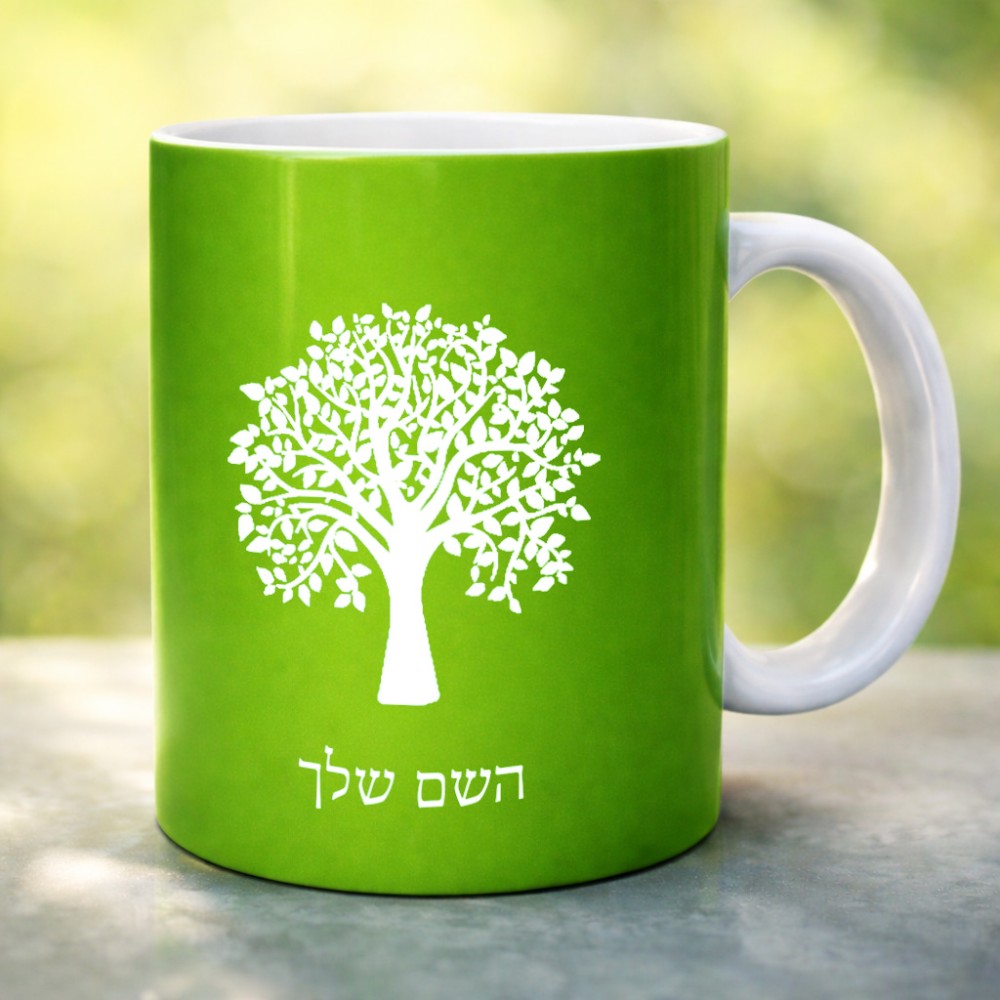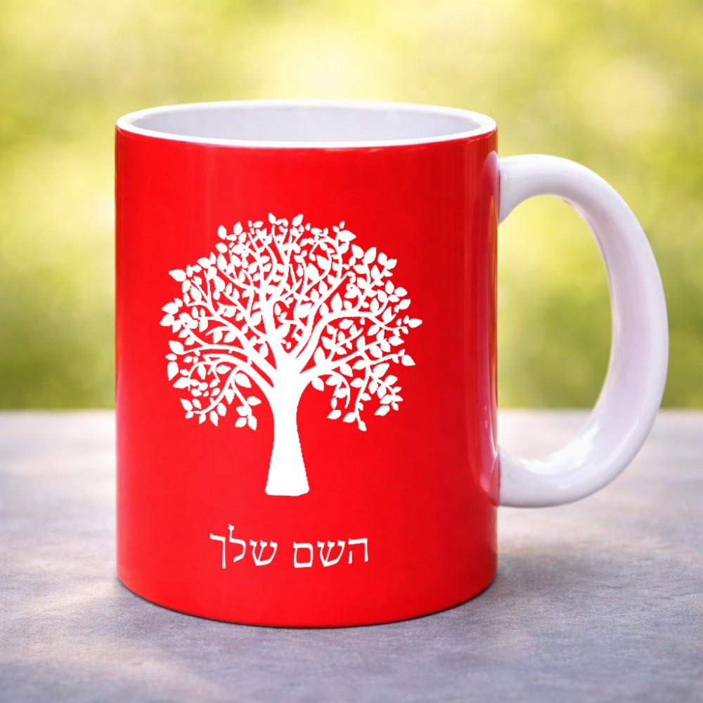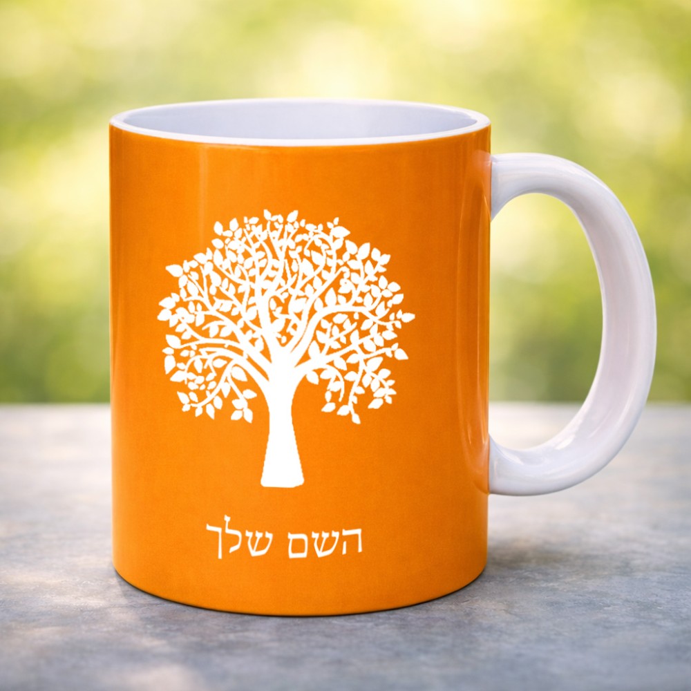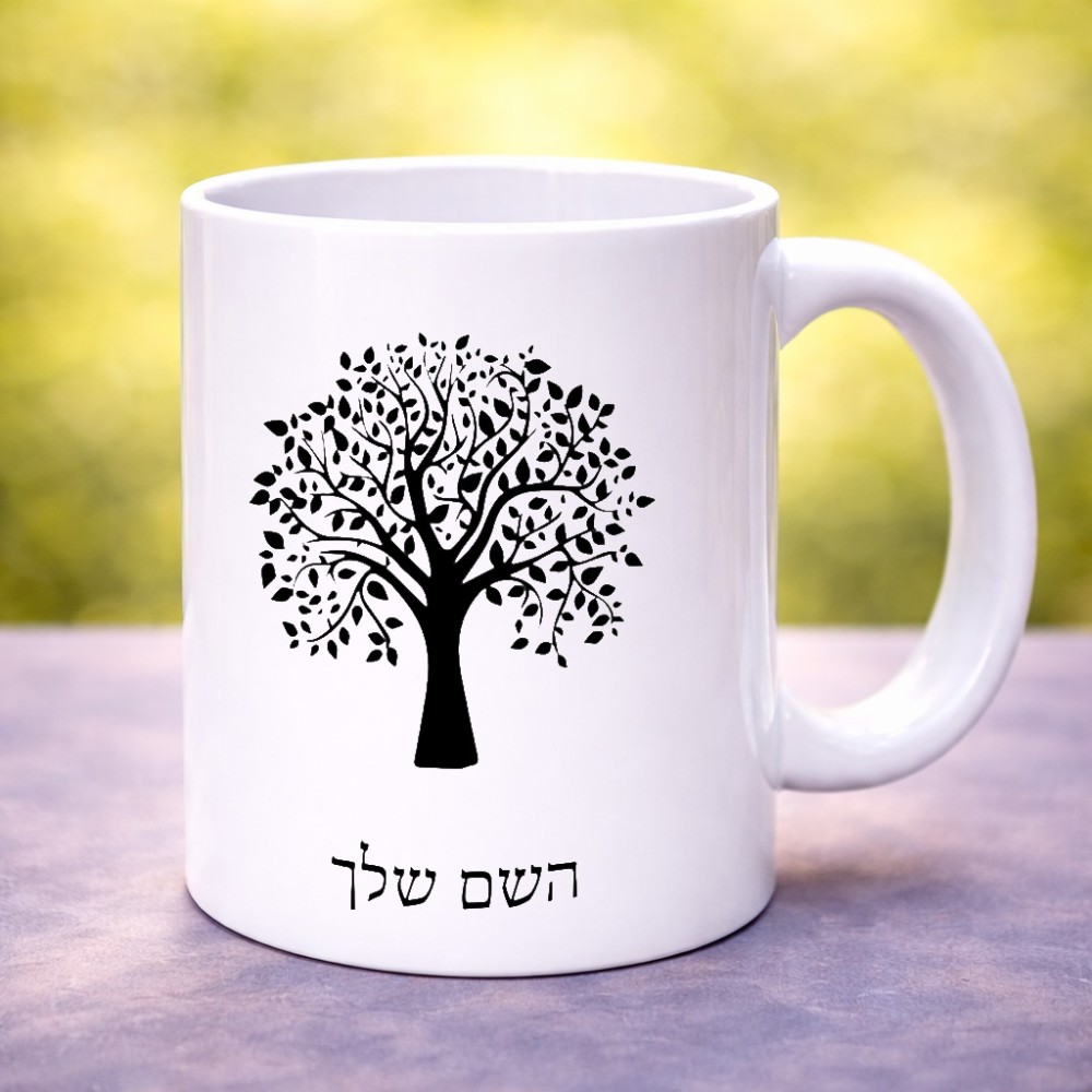 ספל תה \ קפה בעיצוב אישי עם השם שלך בעיצוב עץ גדול הספל 325 מ"ל, הספל בעלת ידית לאחיזה יציבה. את השם המבוקש ניתן לציין בהזמנה, אם לא צויין אנחנו ניצור קשר לבירור.