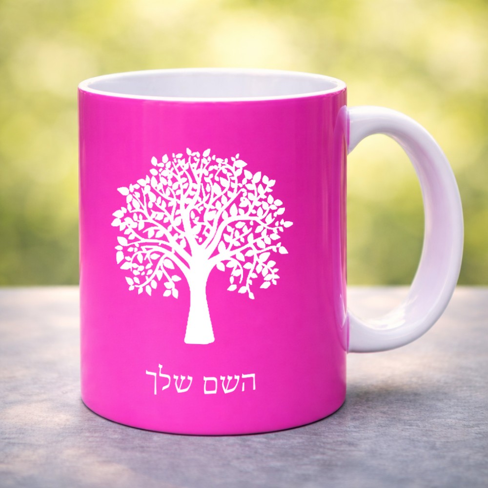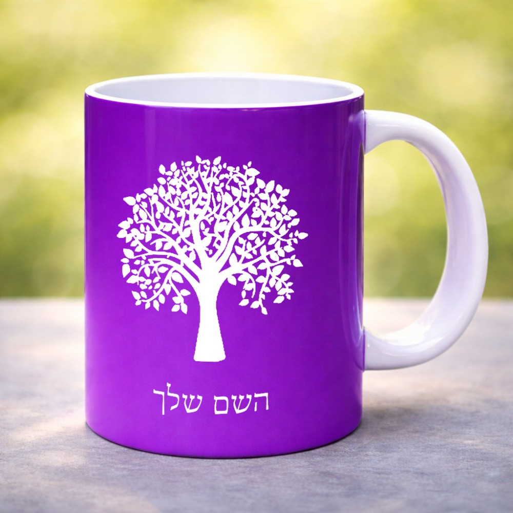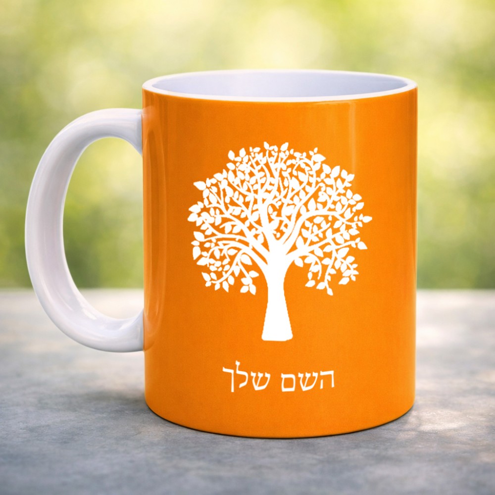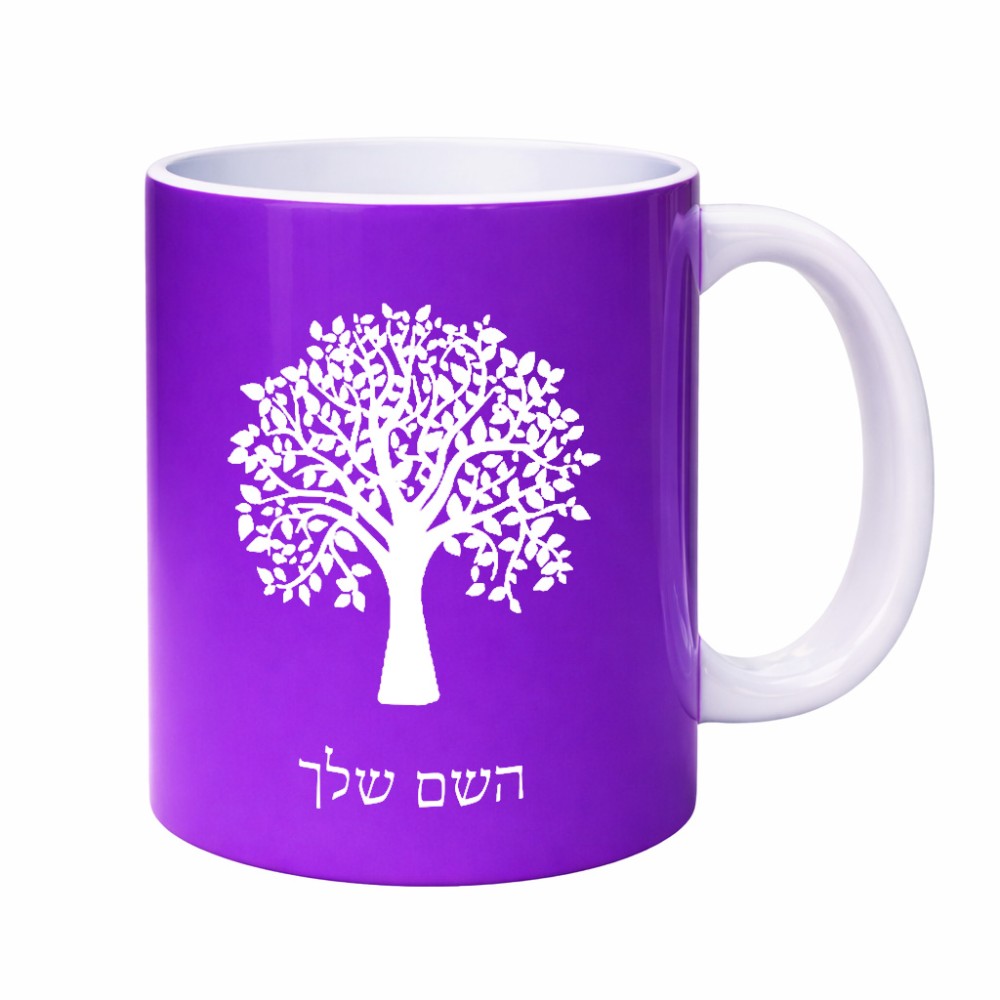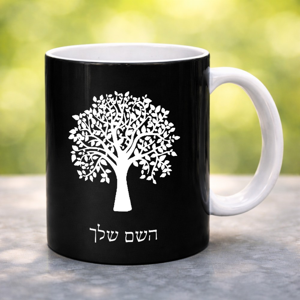 ספל תה \ קפה בעיצוב אישי עם השם שלך בעיצוב עץ גדול הספל 325 מ"ל, הספל בעלת ידית לאחיזה יציבה. את השם המבוקש ניתן לציין בהזמנה, אם לא צויין אנחנו ניצור קשר לבירור.