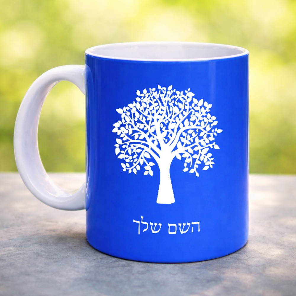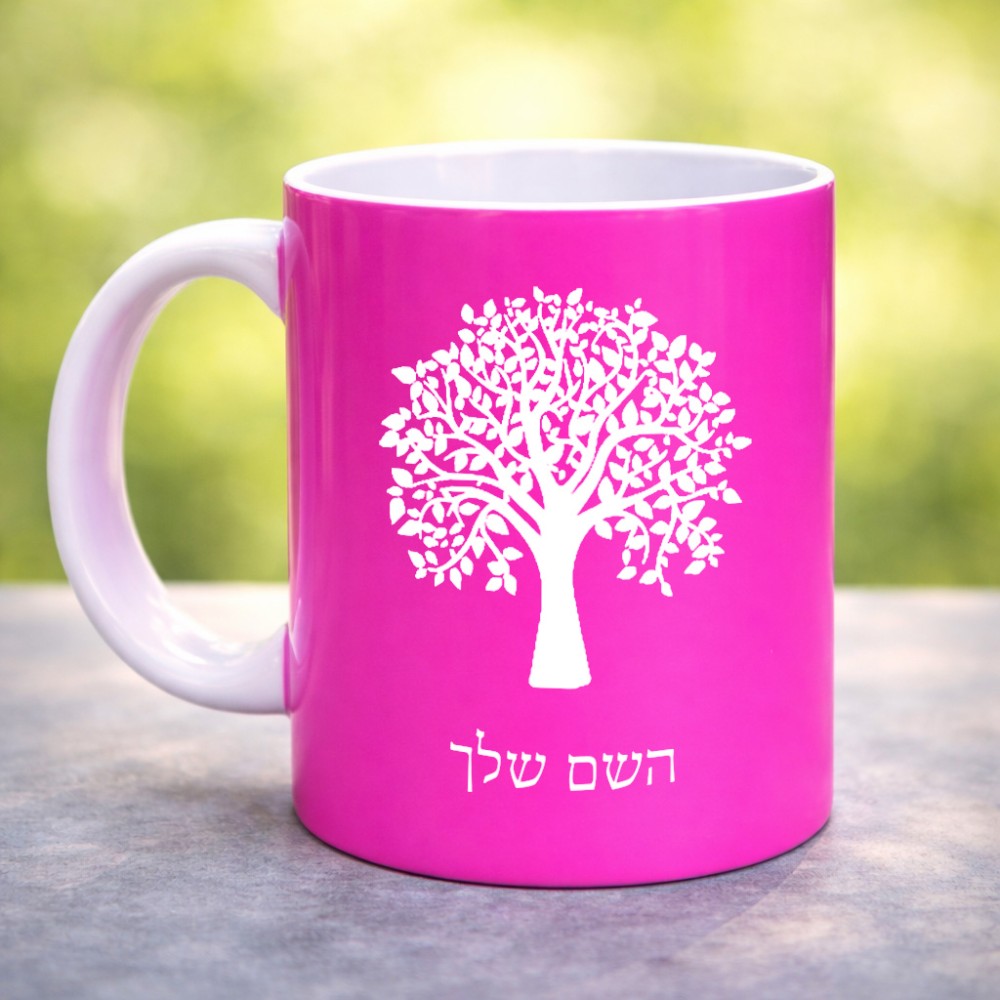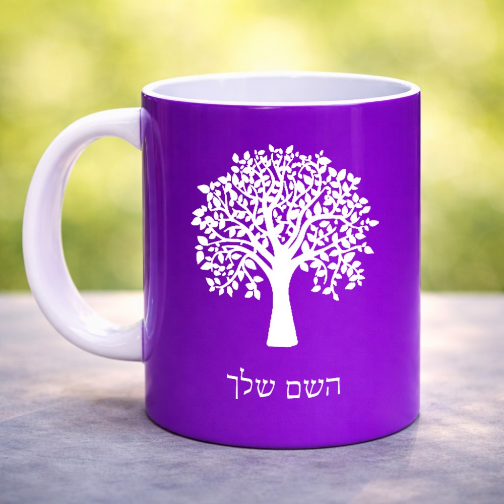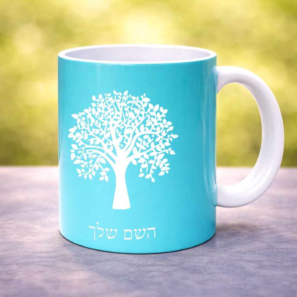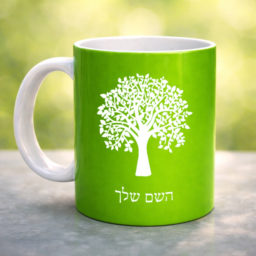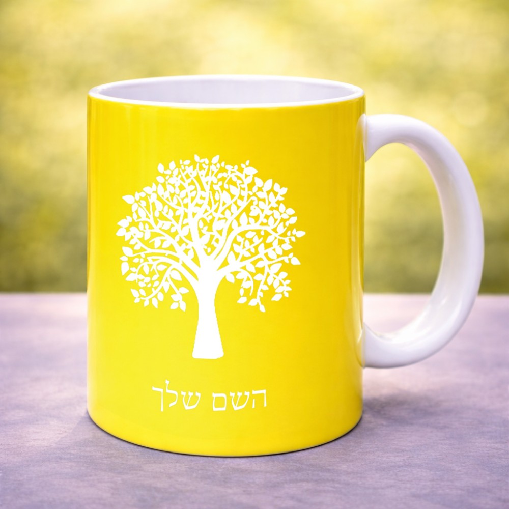 ספל תה \ קפה בעיצוב אישי עם השם שלך בעיצוב עץ גדול הספל 325 מ"ל, הספל בעלת ידית לאחיזה יציבה. את השם המבוקש ניתן לציין בהזמנה, אם לא צויין אנחנו ניצור קשר לבירור.