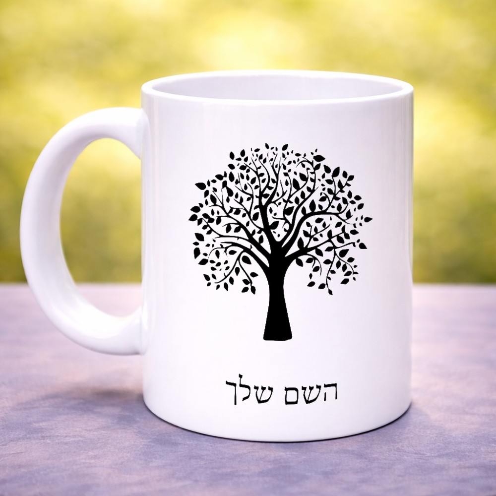 ספל תה \ קפה בעיצוב אישי עם השם שלך בעיצוב עץ גודל הספל 325 מ"ל