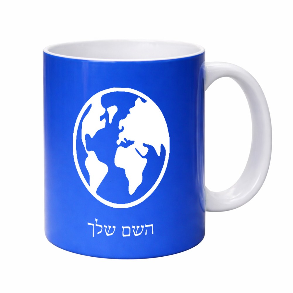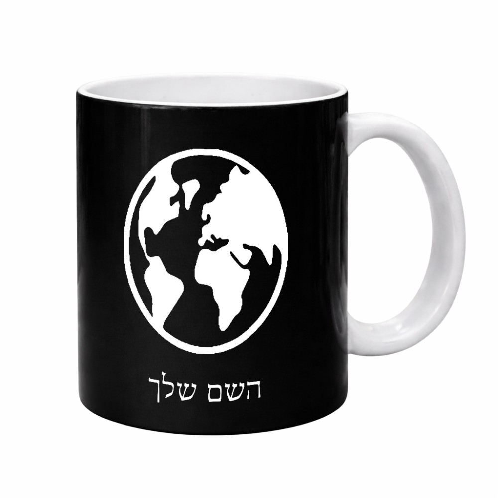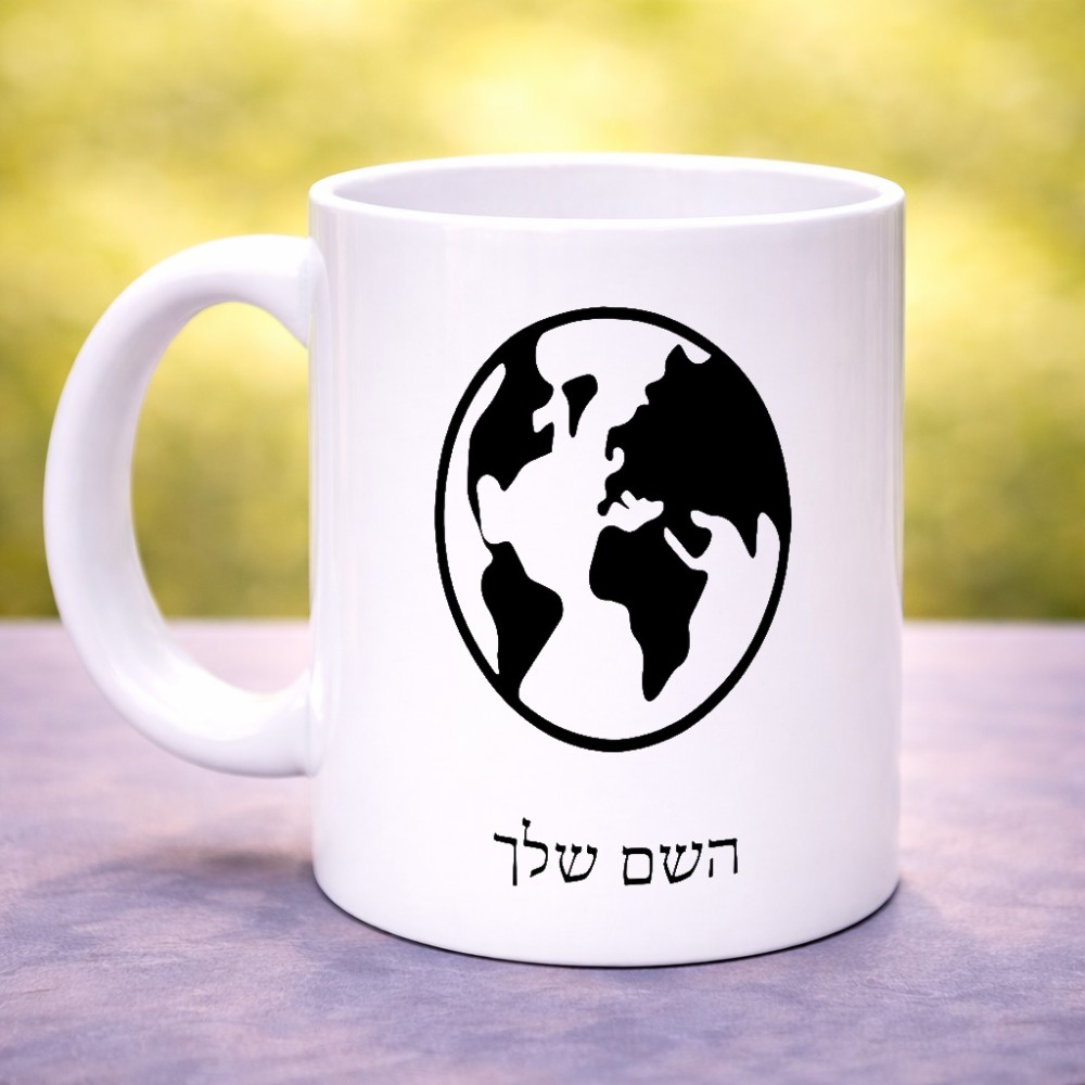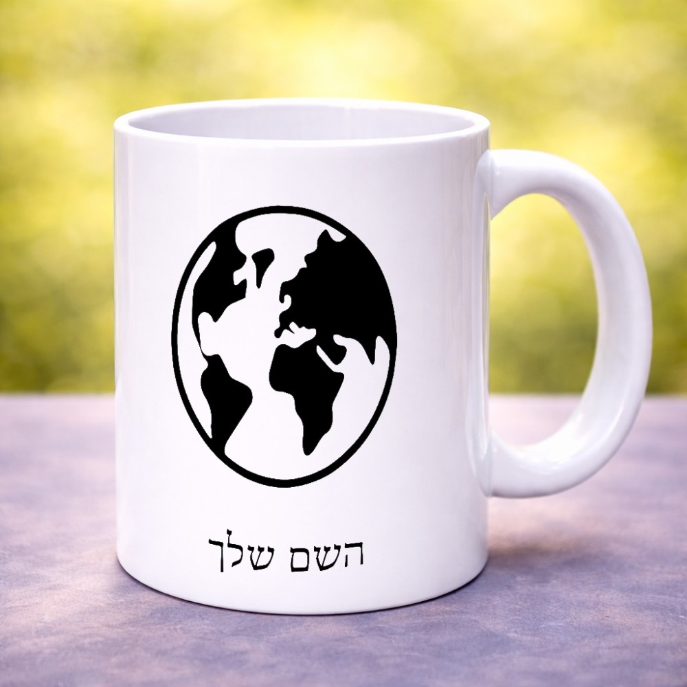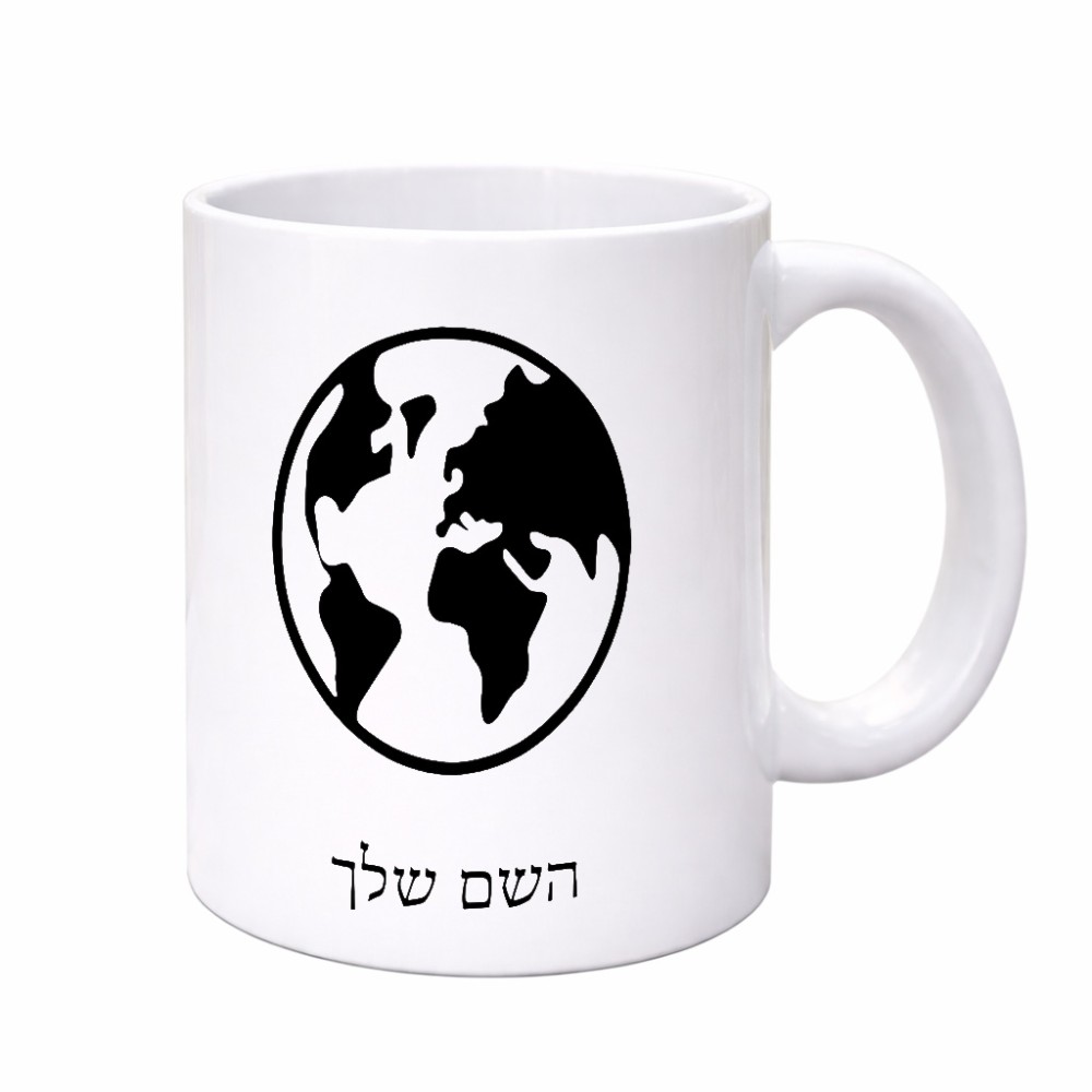 ספל תה \ קפה בעיצוב אישי עם השם שלך בעיצוב עולם גדול הספל 325 מ"ל, הספל בעלת ידית לאחיזה יציבה. את השם המבוקש ניתן לציין בהזמנה, אם לא צויין אנחנו ניצור קשר לבירור.