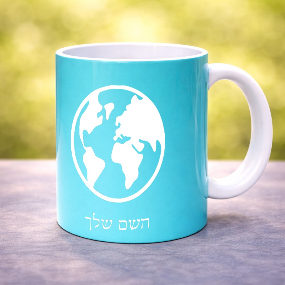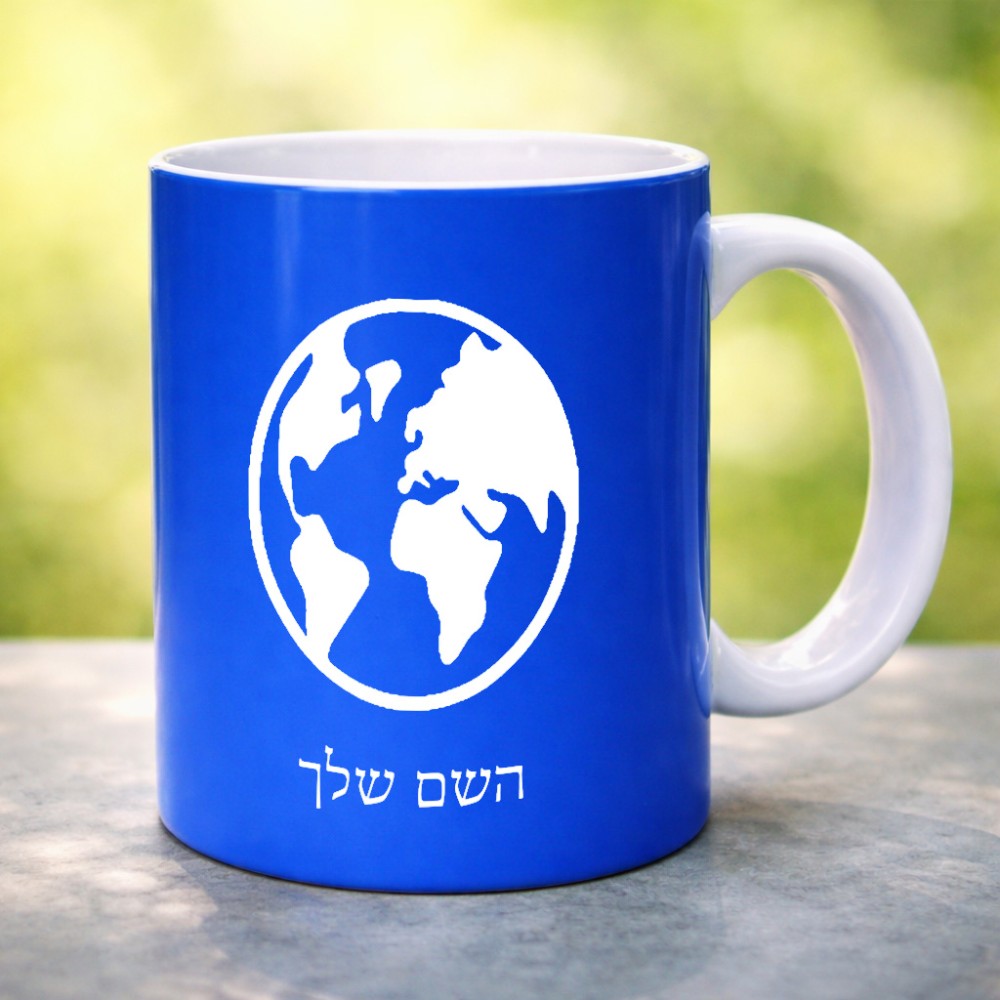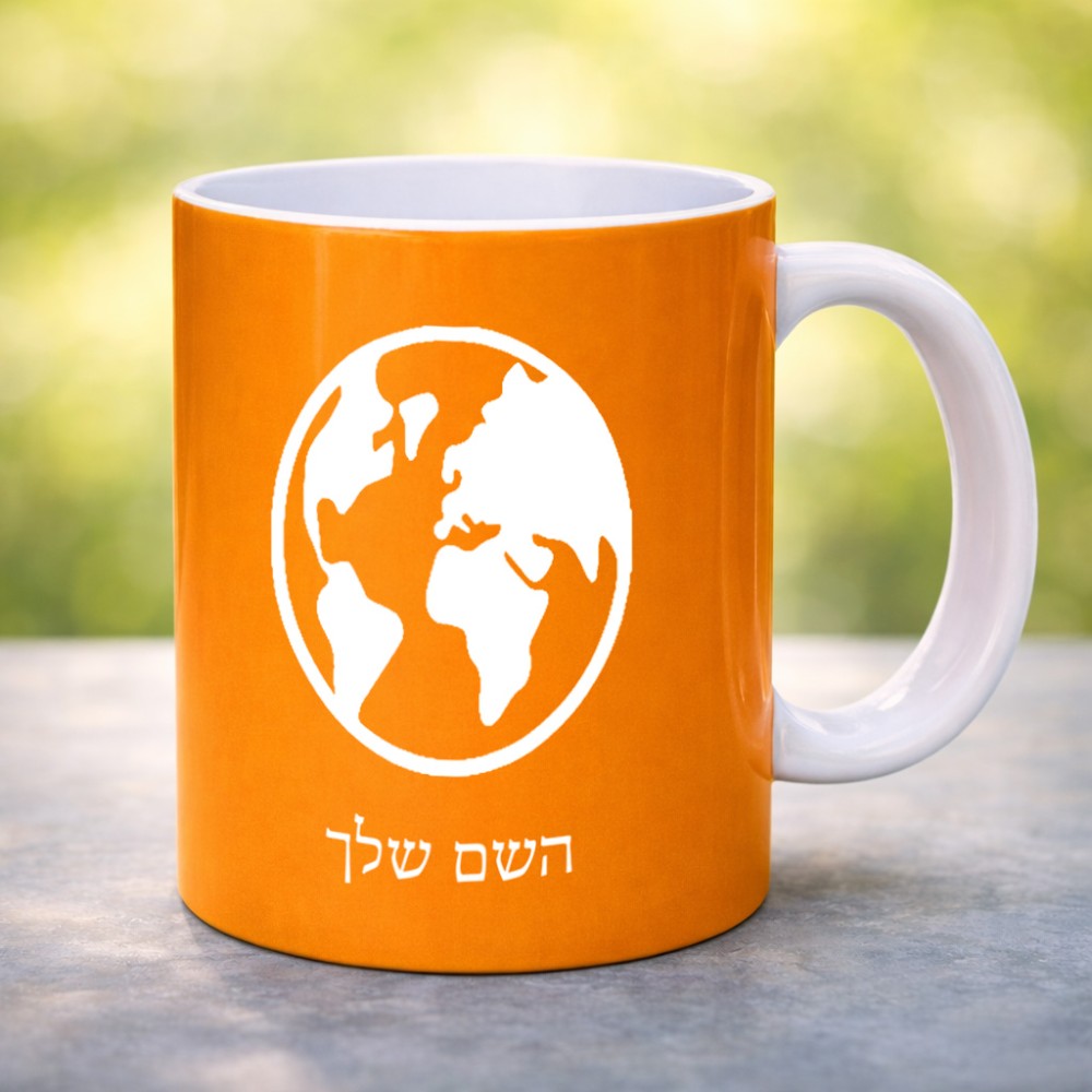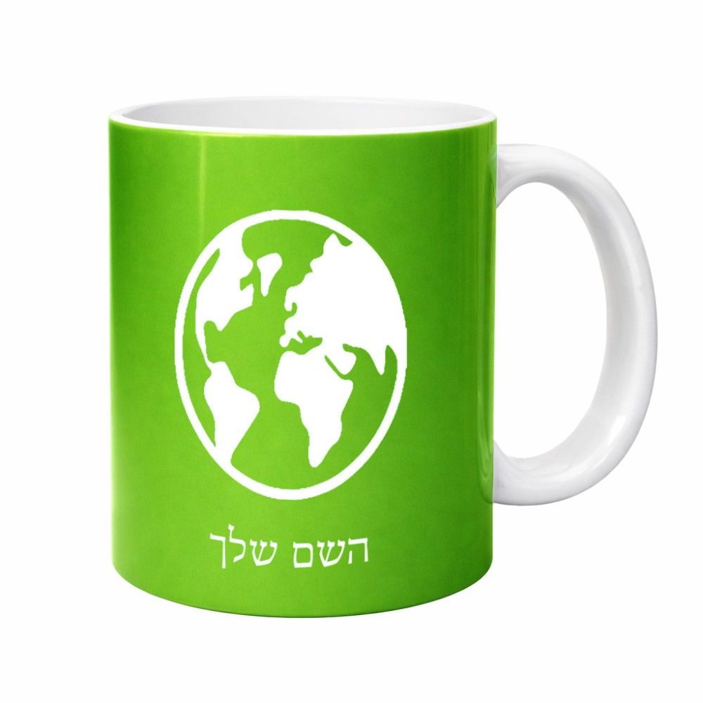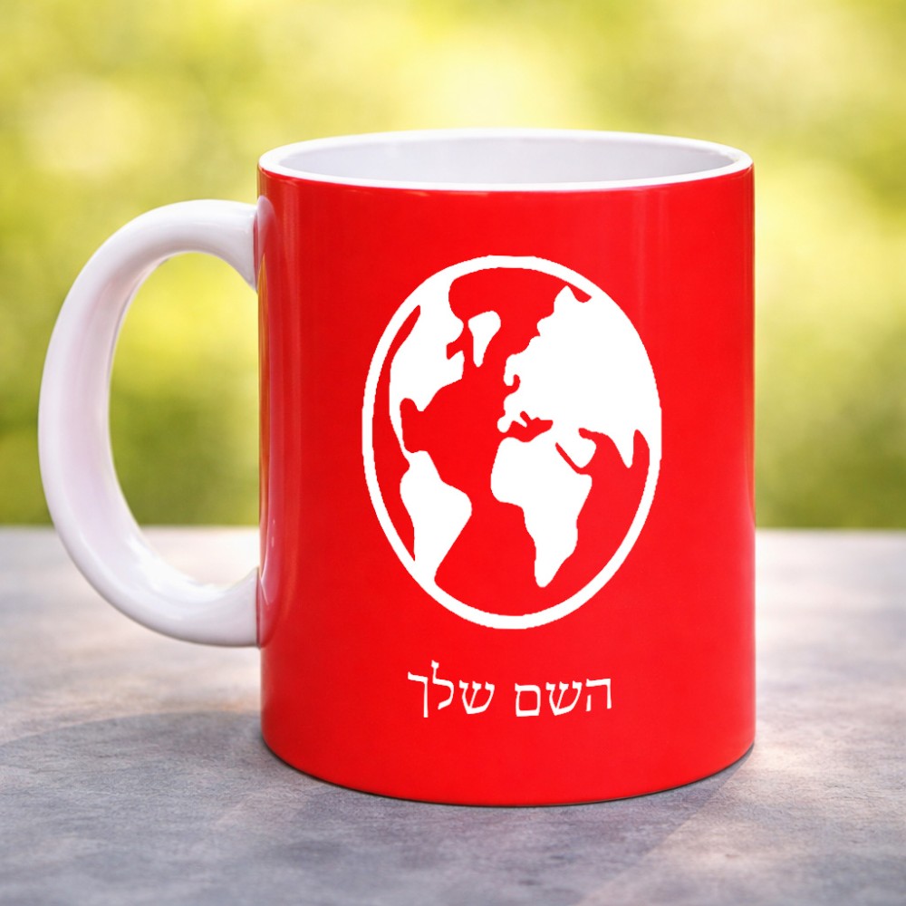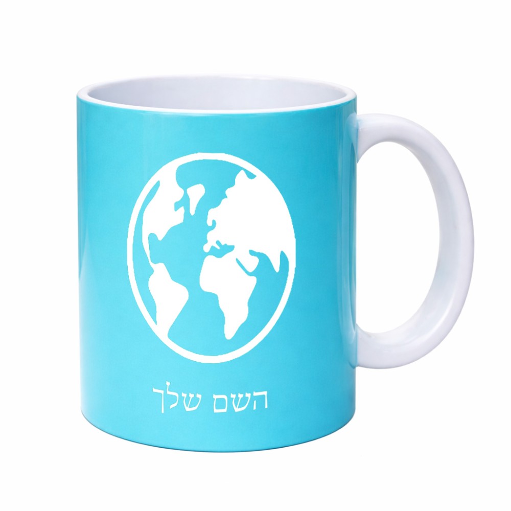 ספל תה \ קפה בעיצוב אישי עם השם שלך בעיצוב עולם גדול הספל 325 מ"ל, הספל בעלת ידית לאחיזה יציבה. את השם המבוקש ניתן לציין בהזמנה, אם לא צויין אנחנו ניצור קשר לבירור.