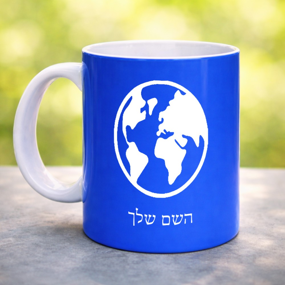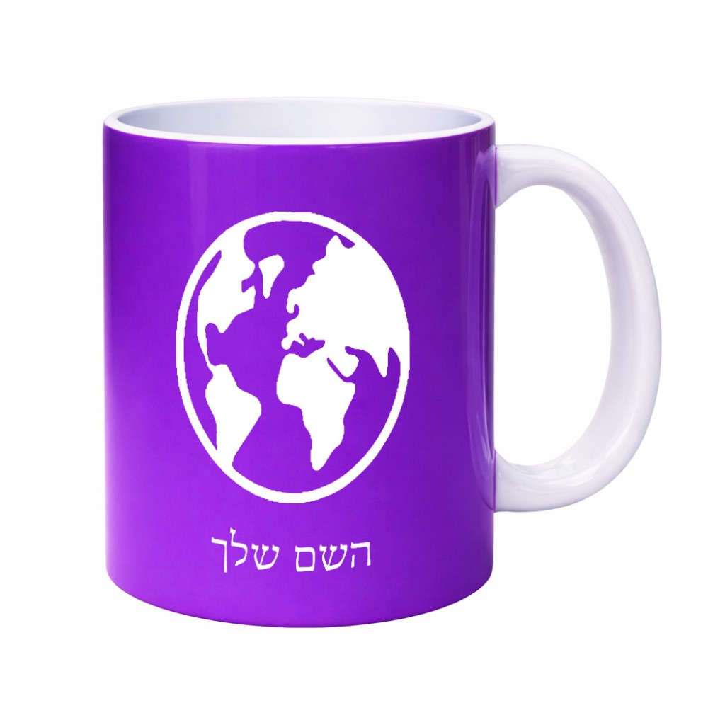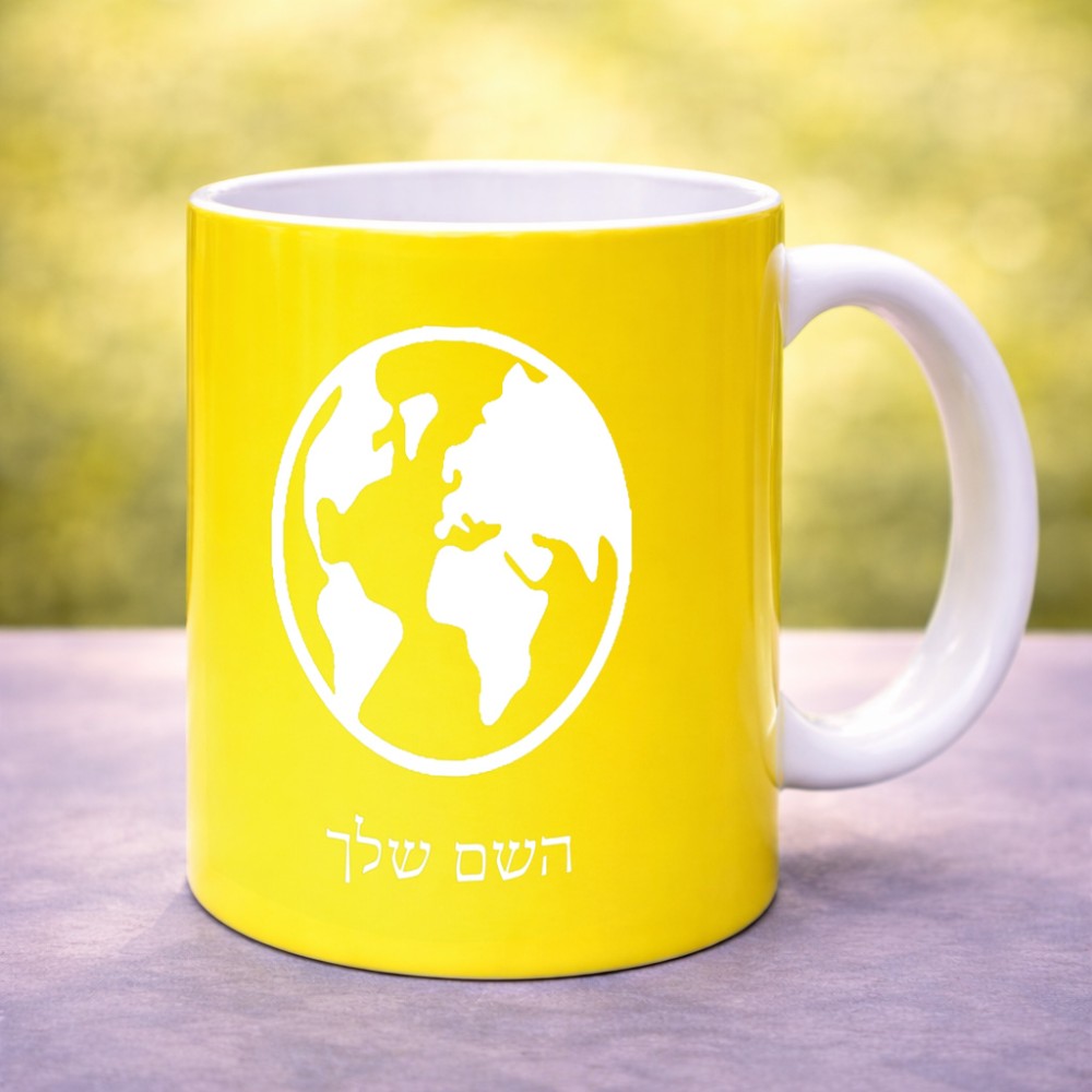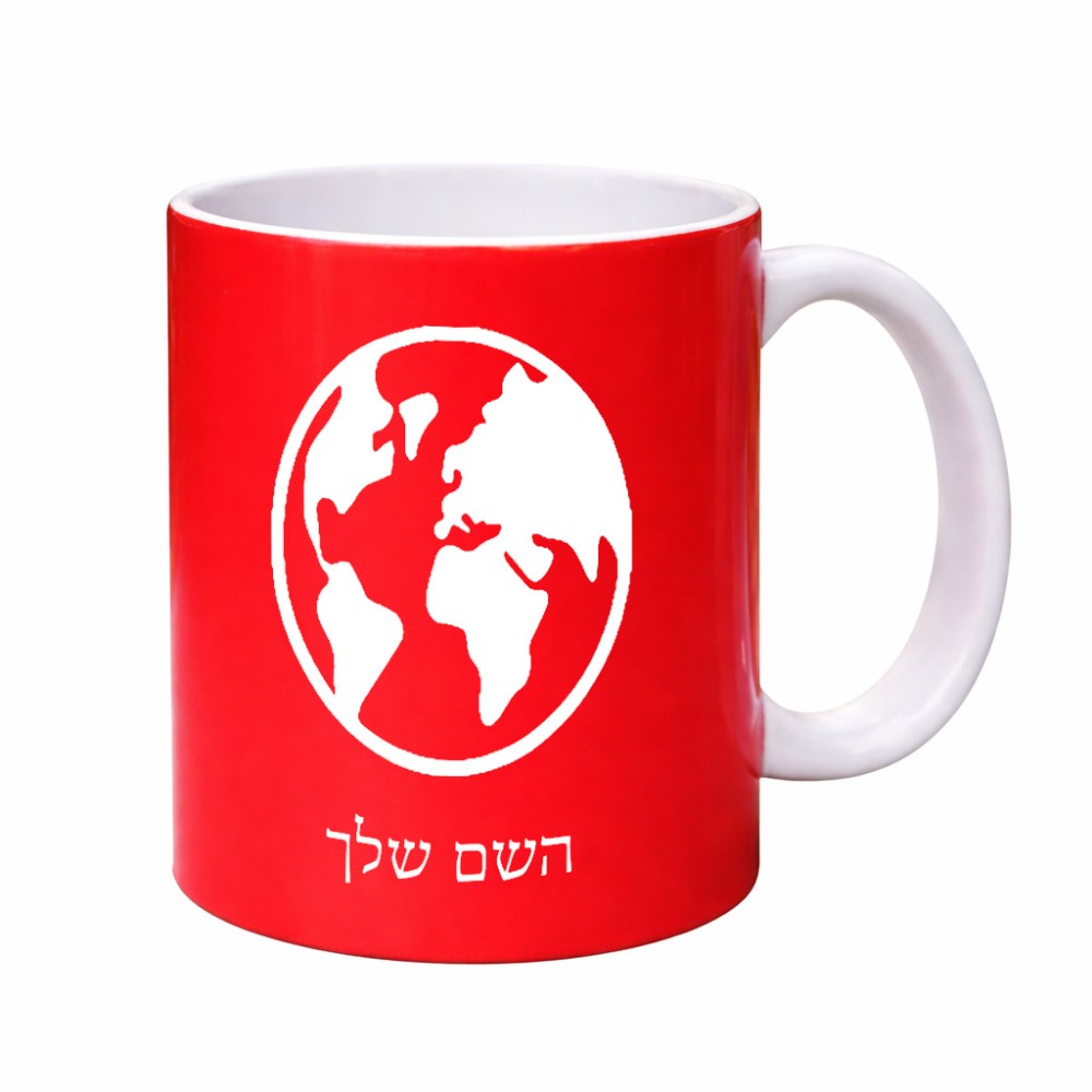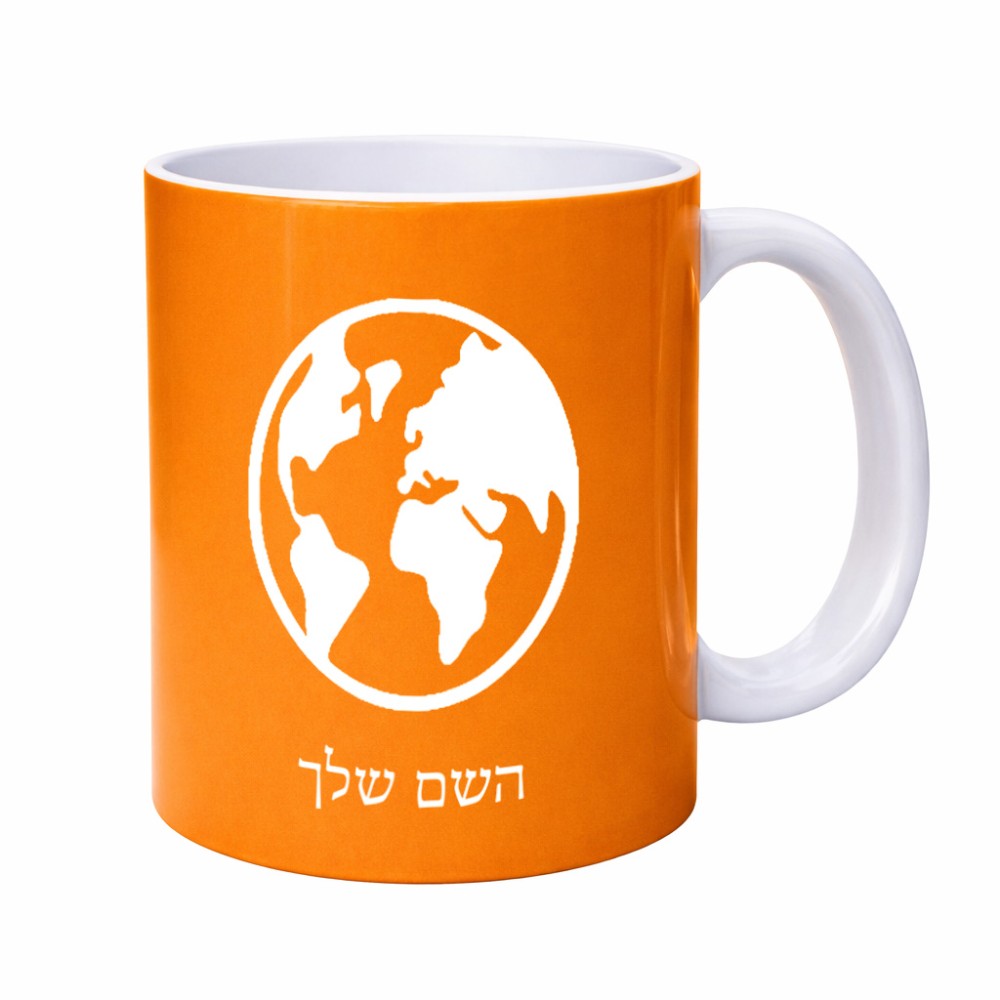 ספל תה \ קפה בעיצוב אישי עם השם שלך בעיצוב עולם גדול הספל 325 מ"ל, הספל בעלת ידית לאחיזה יציבה. את השם המבוקש ניתן לציין בהזמנה, אם לא צויין אנחנו ניצור קשר לבירור.