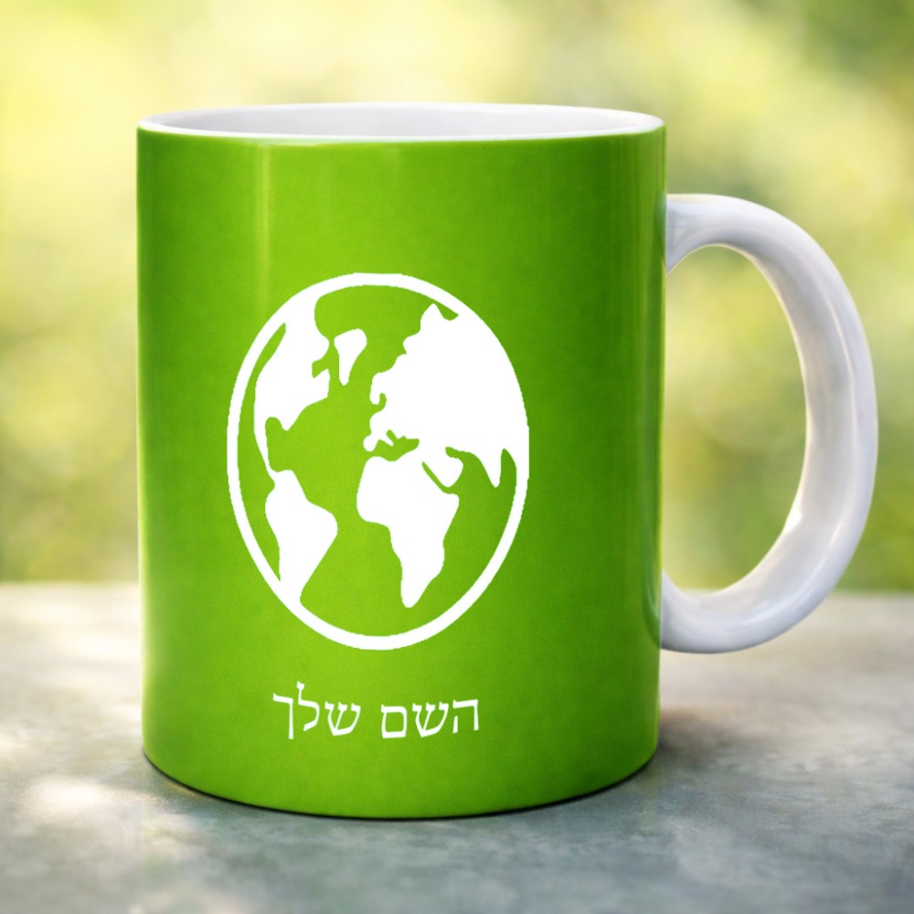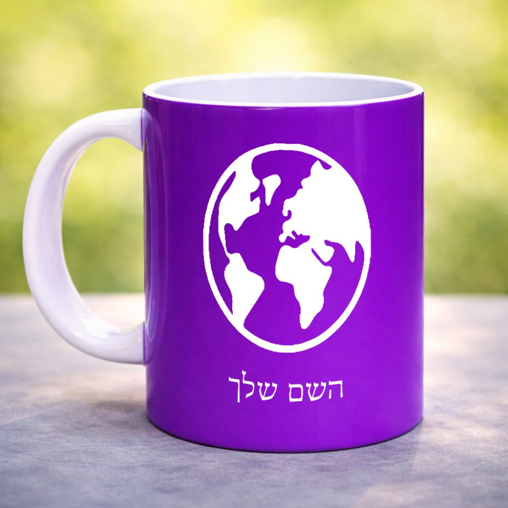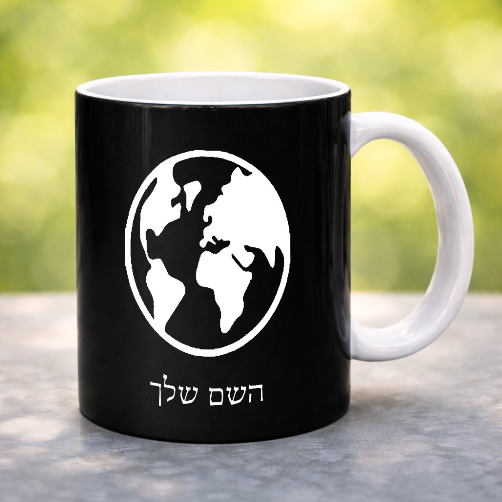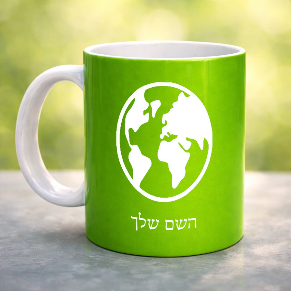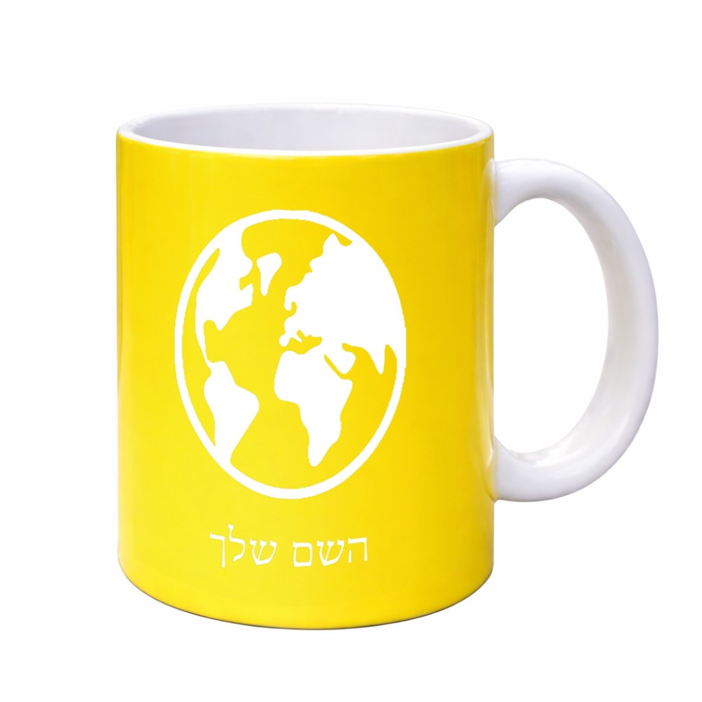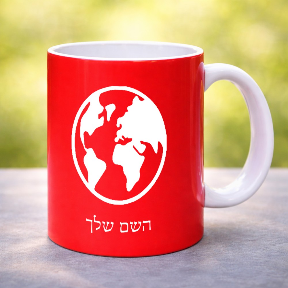 ספל תה \ קפה בעיצוב אישי עם השם שלך בעיצוב עולם גדול הספל 325 מ"ל, הספל בעלת ידית לאחיזה יציבה. את השם המבוקש ניתן לציין בהזמנה, אם לא צויין אנחנו ניצור קשר לבירור.