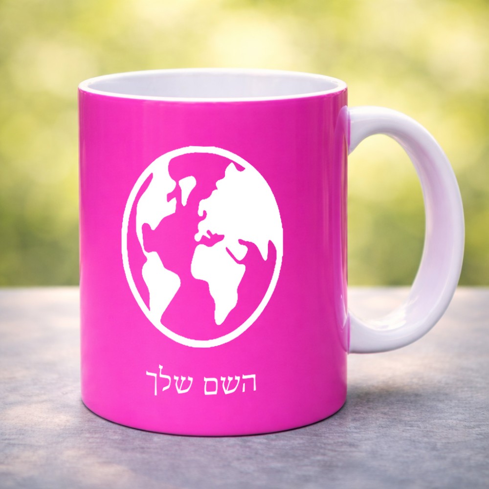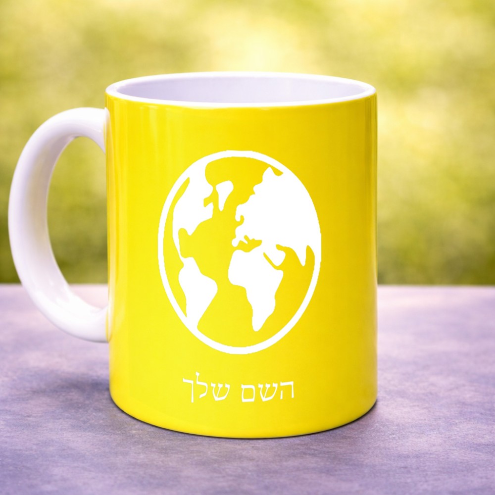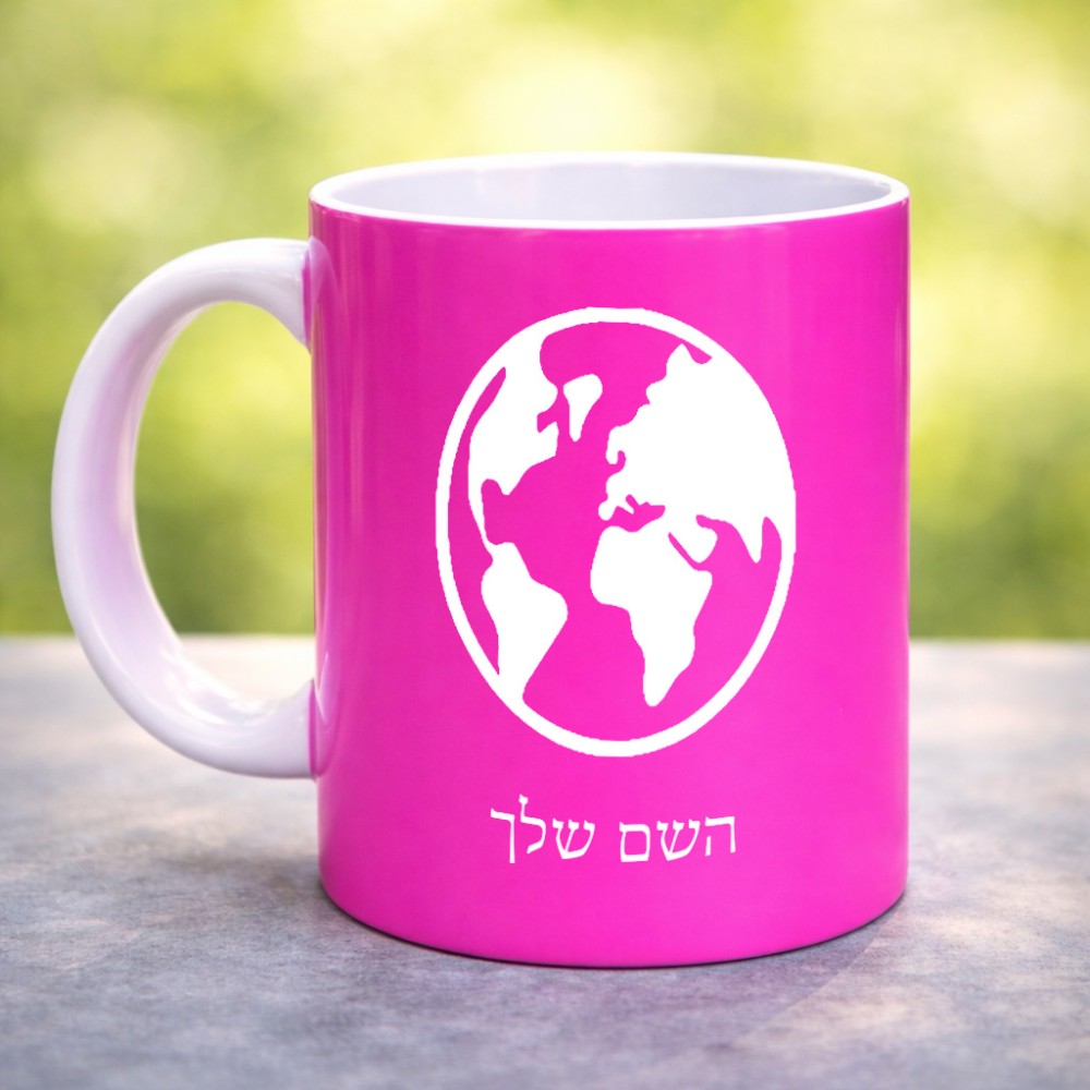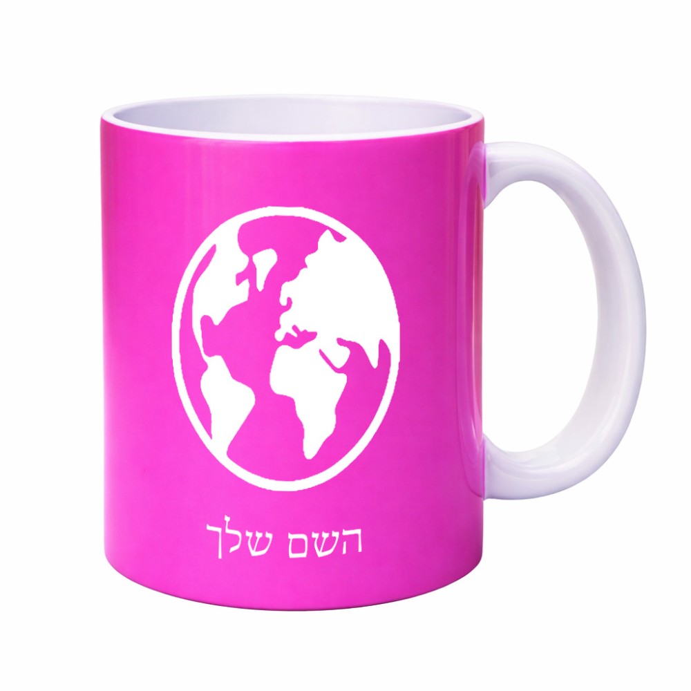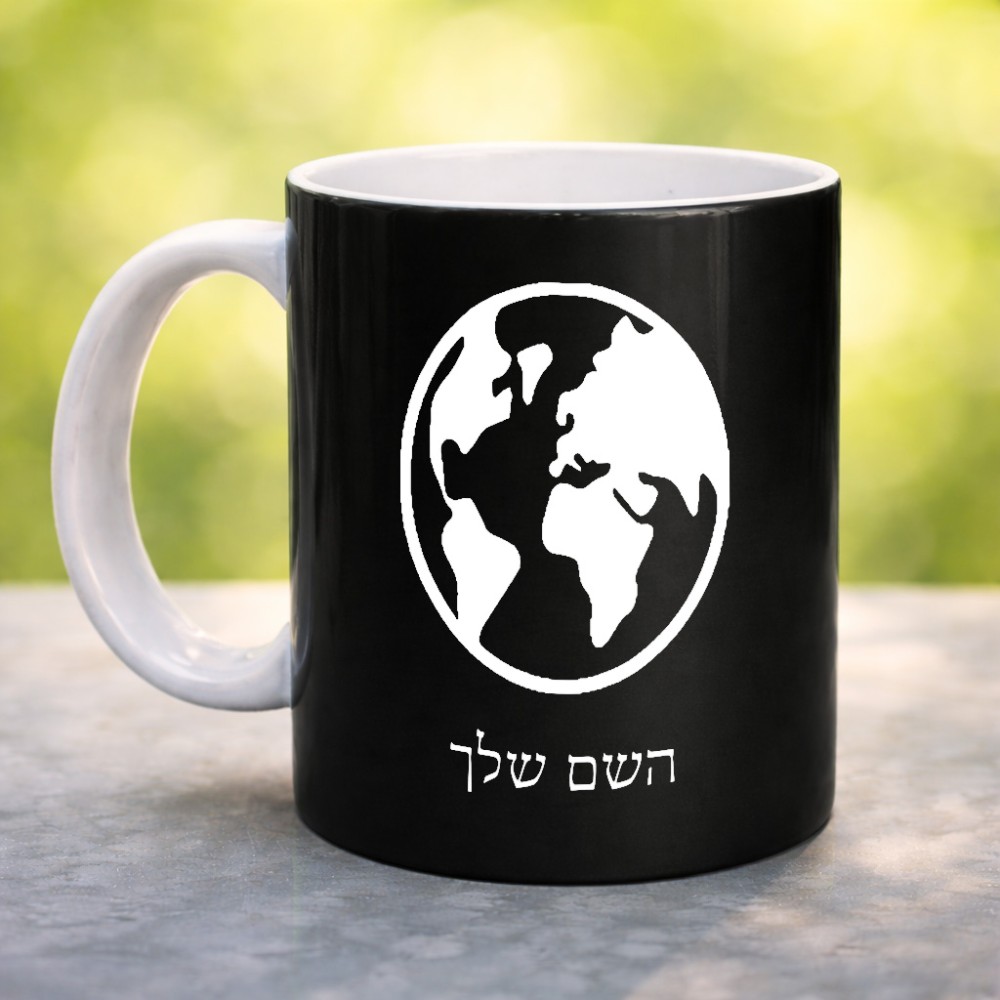 ספל תה \ קפה בעיצוב אישי עם השם שלך בעיצוב עולם גדול הספל 325 מ"ל, הספל בעלת ידית לאחיזה יציבה. את השם המבוקש ניתן לציין בהזמנה, אם לא צויין אנחנו ניצור קשר לבירור.