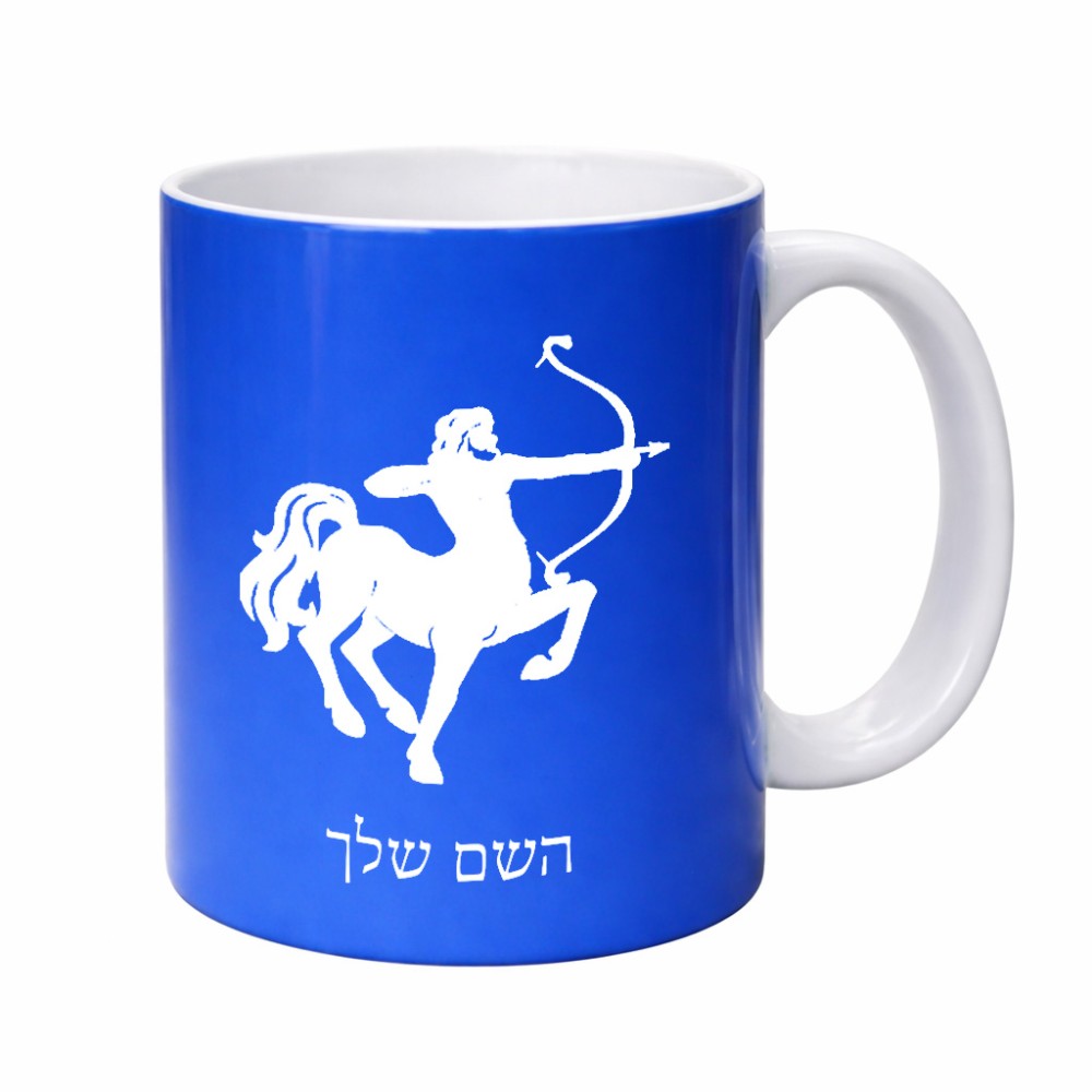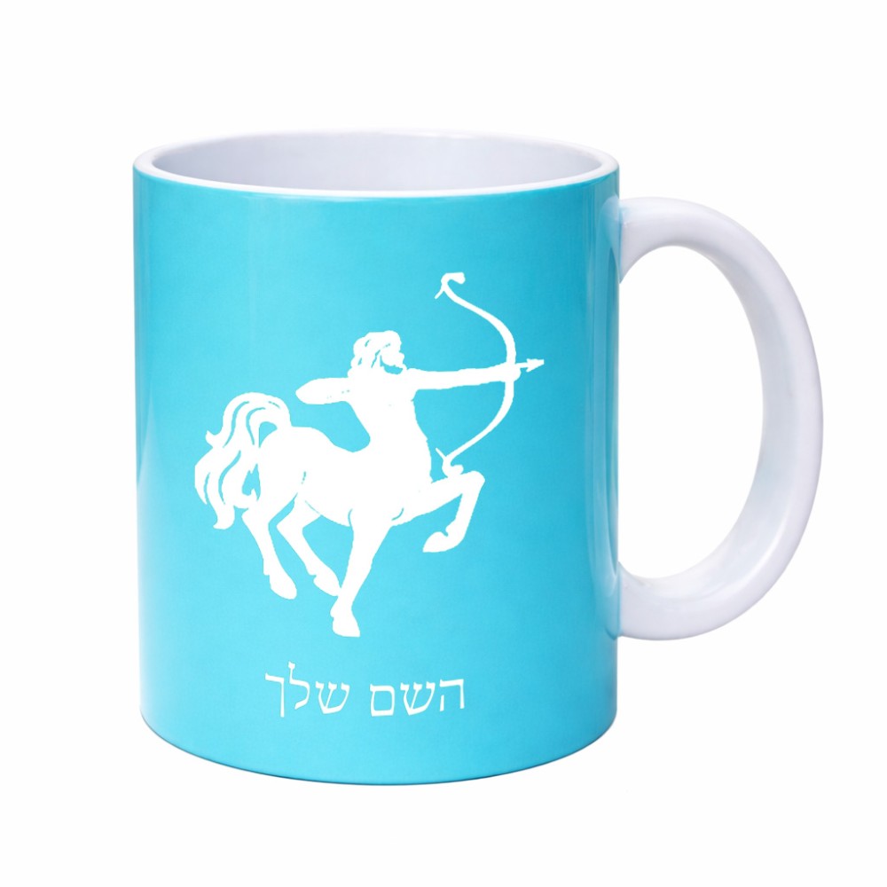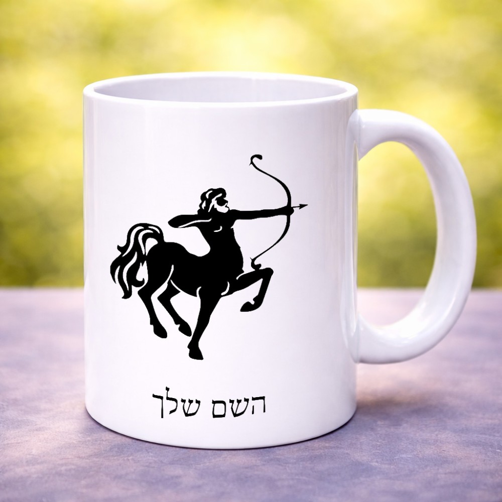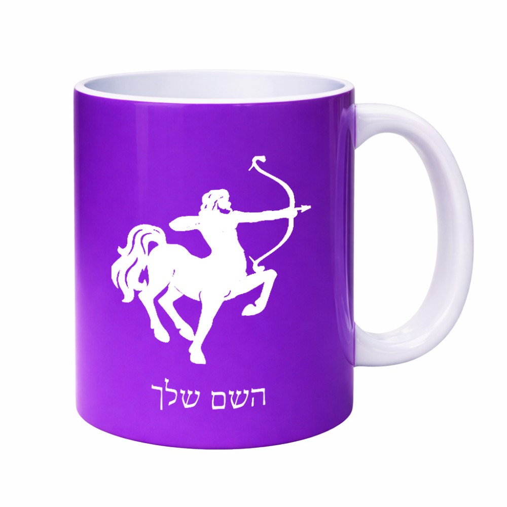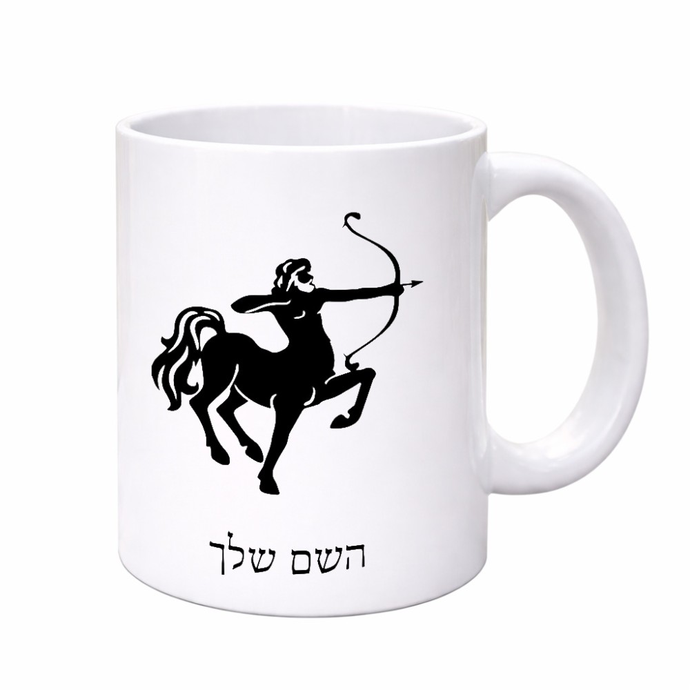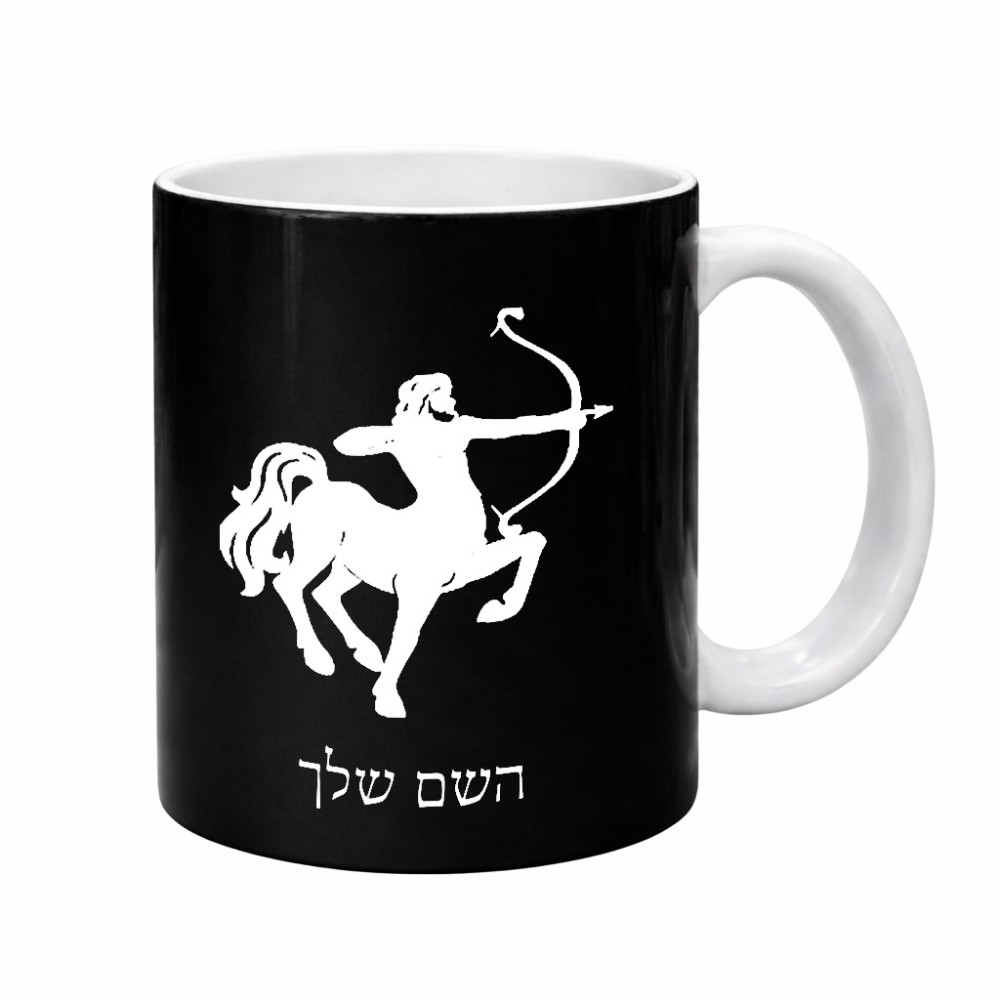 ספל תה \ קפה בעיצוב אישי עם השם שלך בעיצוב מזלות - קשת גדול הספל 325 מ"ל, הספל בעלת ידית לאחיזה יציבה. את השם המבוקש ניתן לציין בהזמנה, אם לא צויין אנחנו ניצור קשר לבירור.