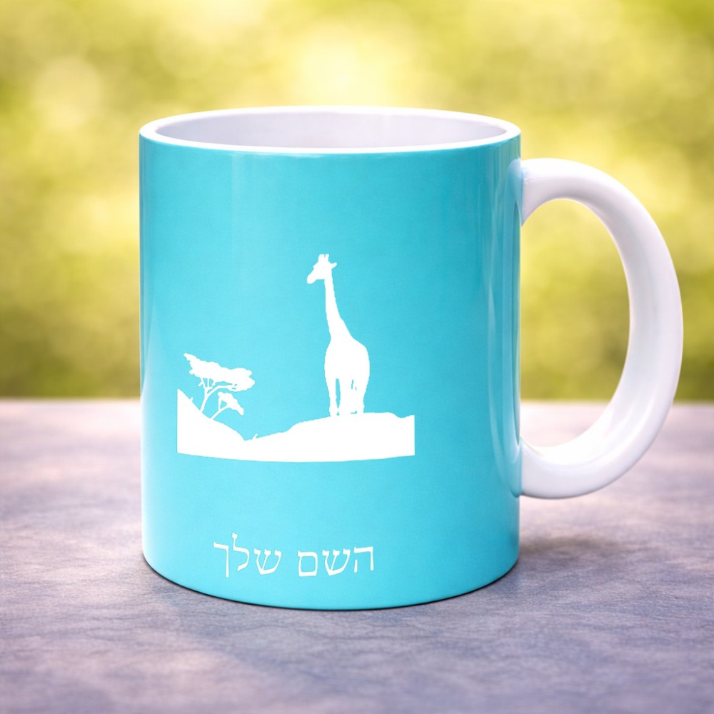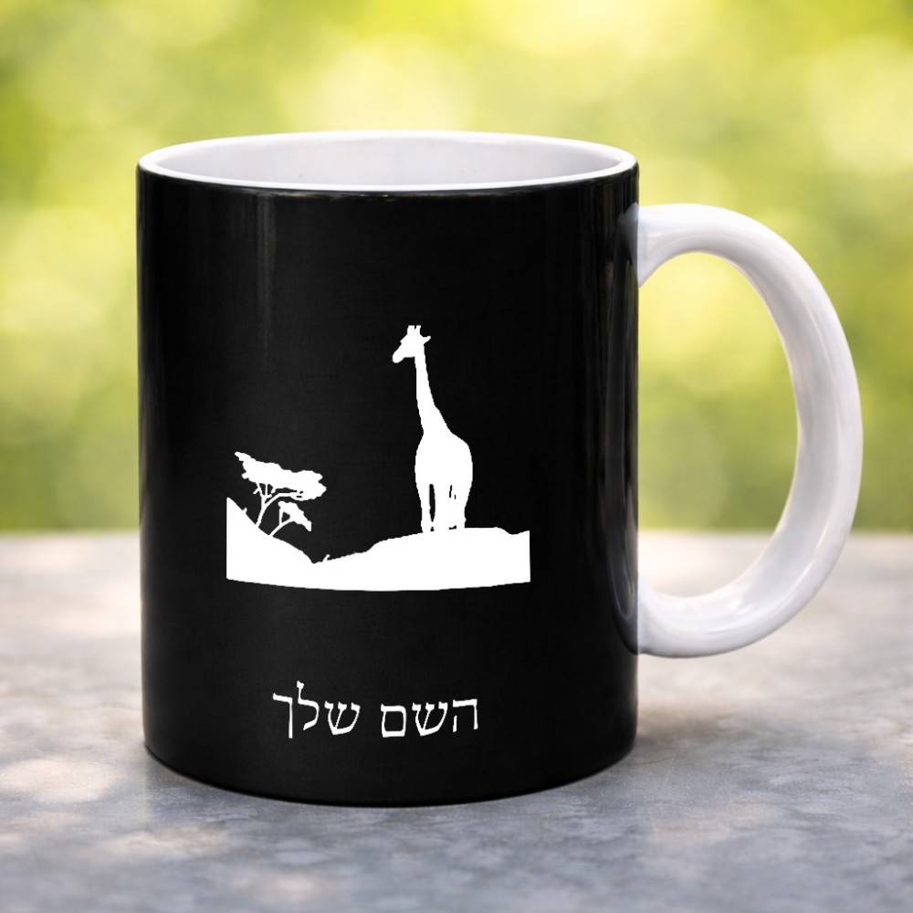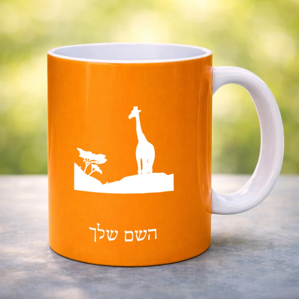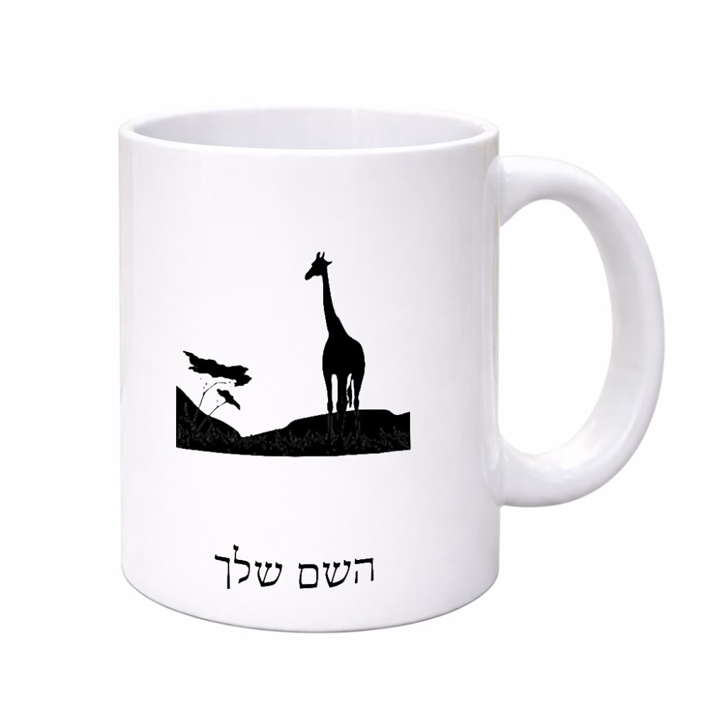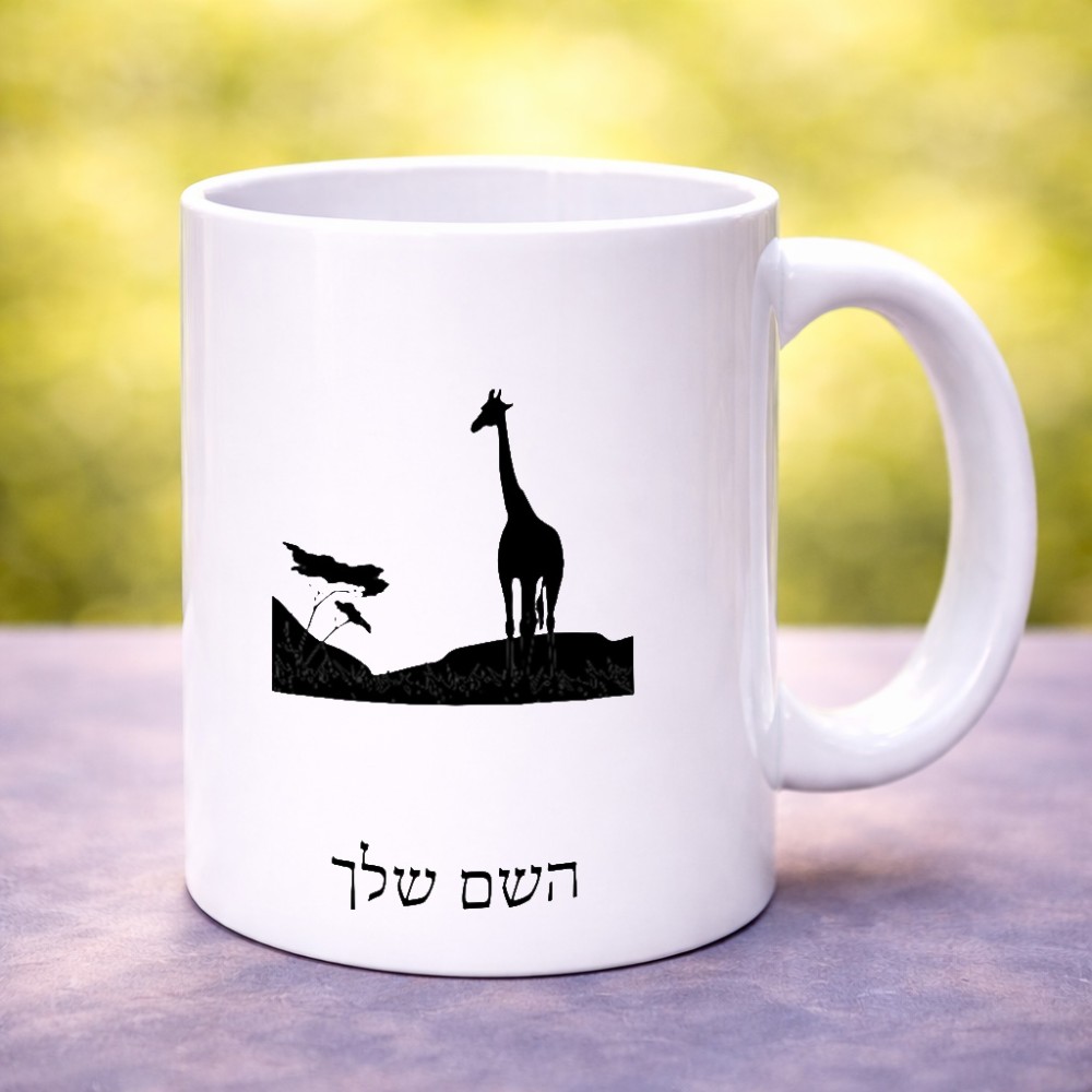 ספל תה \ קפה בעיצוב אישי עם השם שלך בעיצוב ג'ירפה באפריקה גדול הספל 325 מ"ל, הספל בעלת ידית לאחיזה יציבה. את השם המבוקש ניתן לציין בהזמנה, אם לא צויין אנחנו ניצור קשר לבירור.