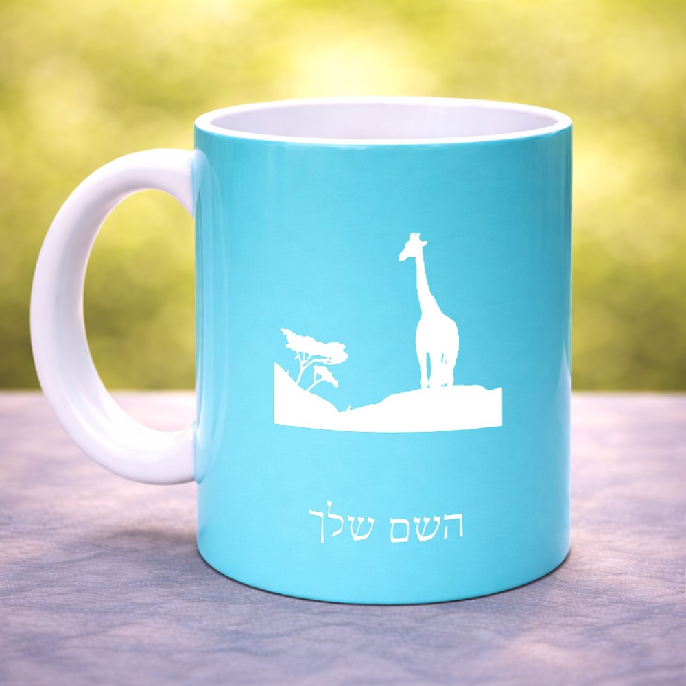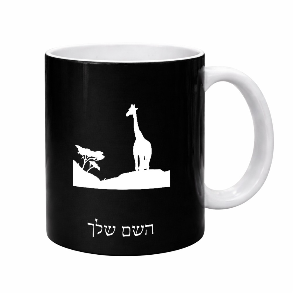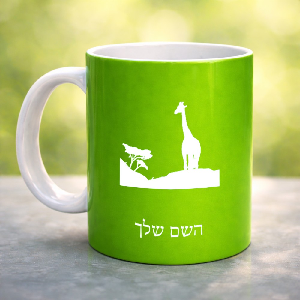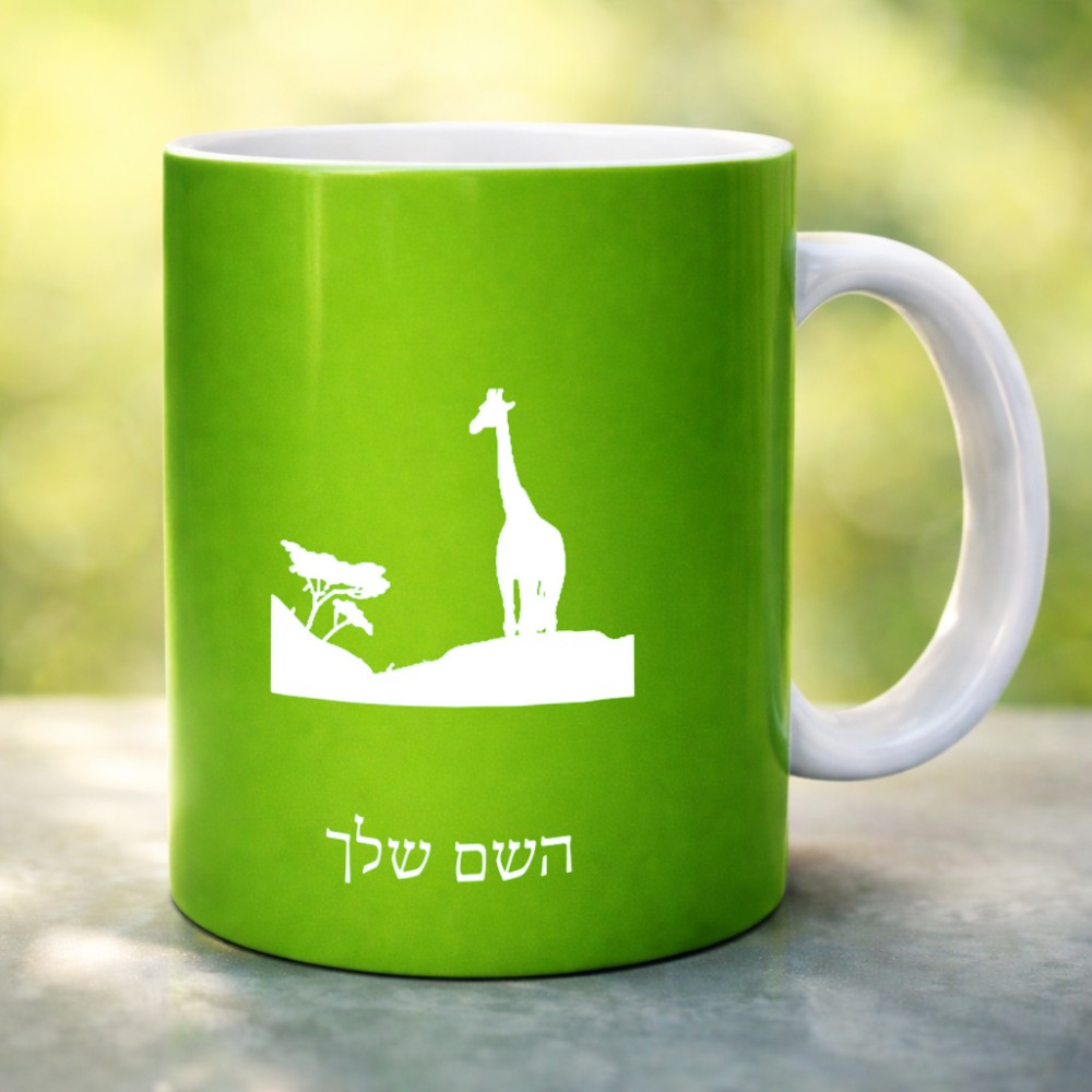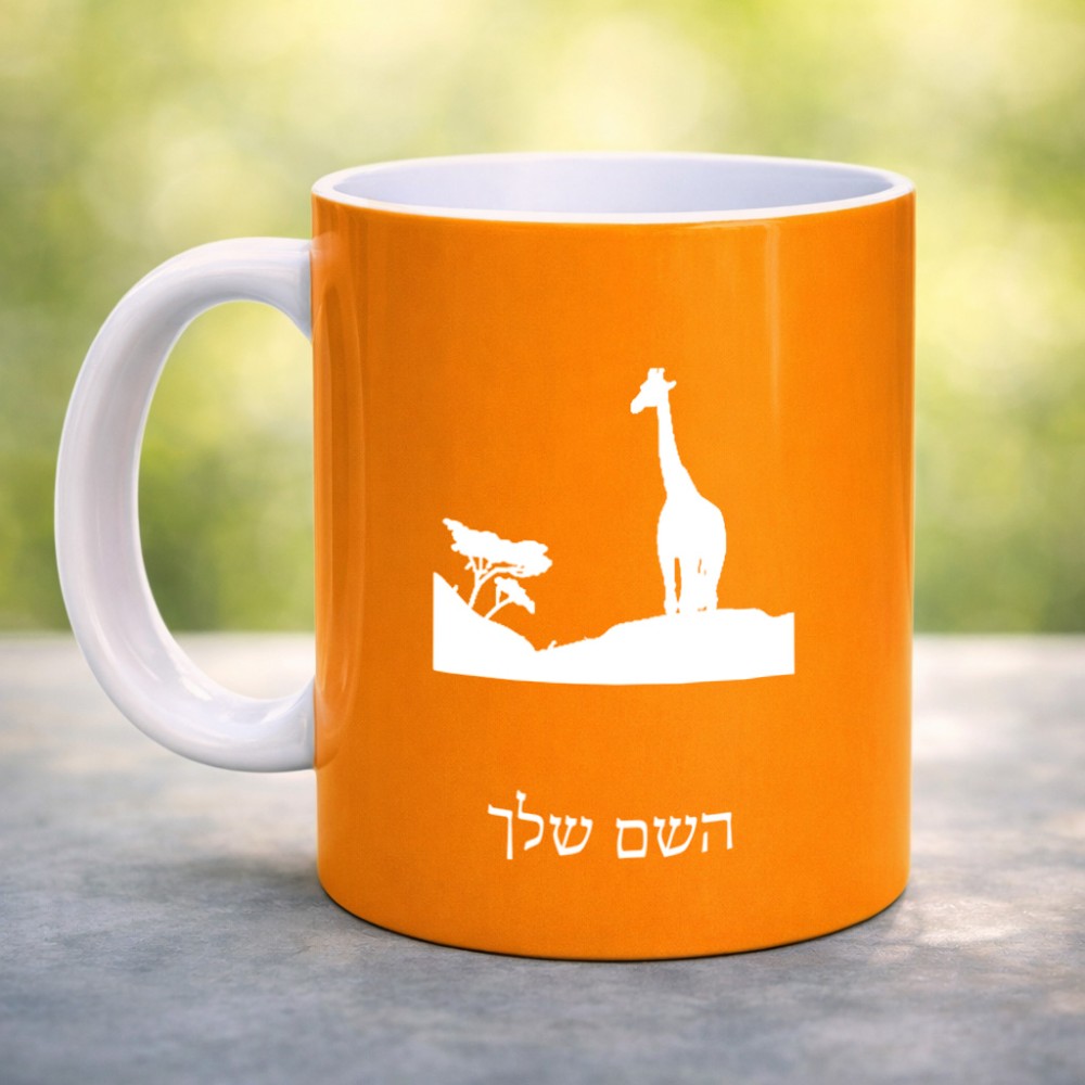 ספל תה \ קפה בעיצוב אישי עם השם שלך בעיצוב ג'ירפה באפריקה גדול הספל 325 מ"ל, הספל בעלת ידית לאחיזה יציבה. את השם המבוקש ניתן לציין בהזמנה, אם לא צויין אנחנו ניצור קשר לבירור.