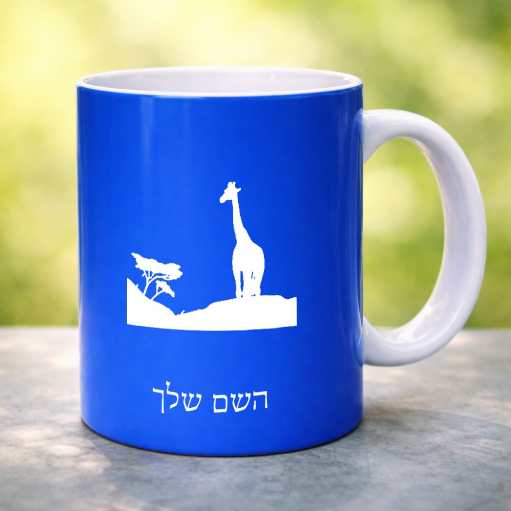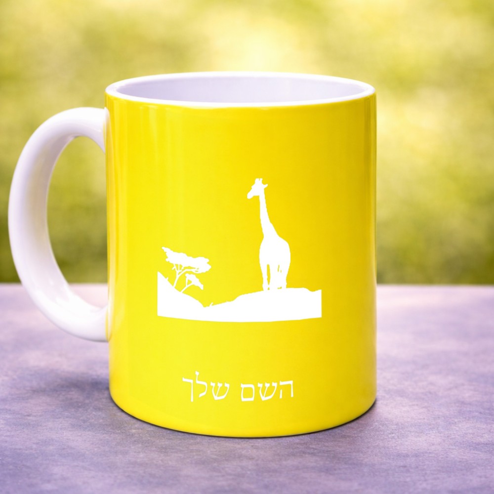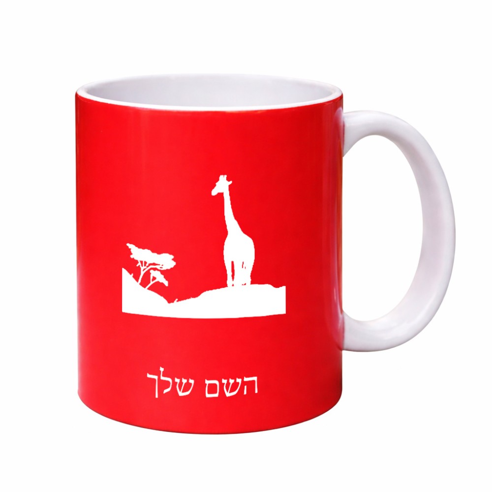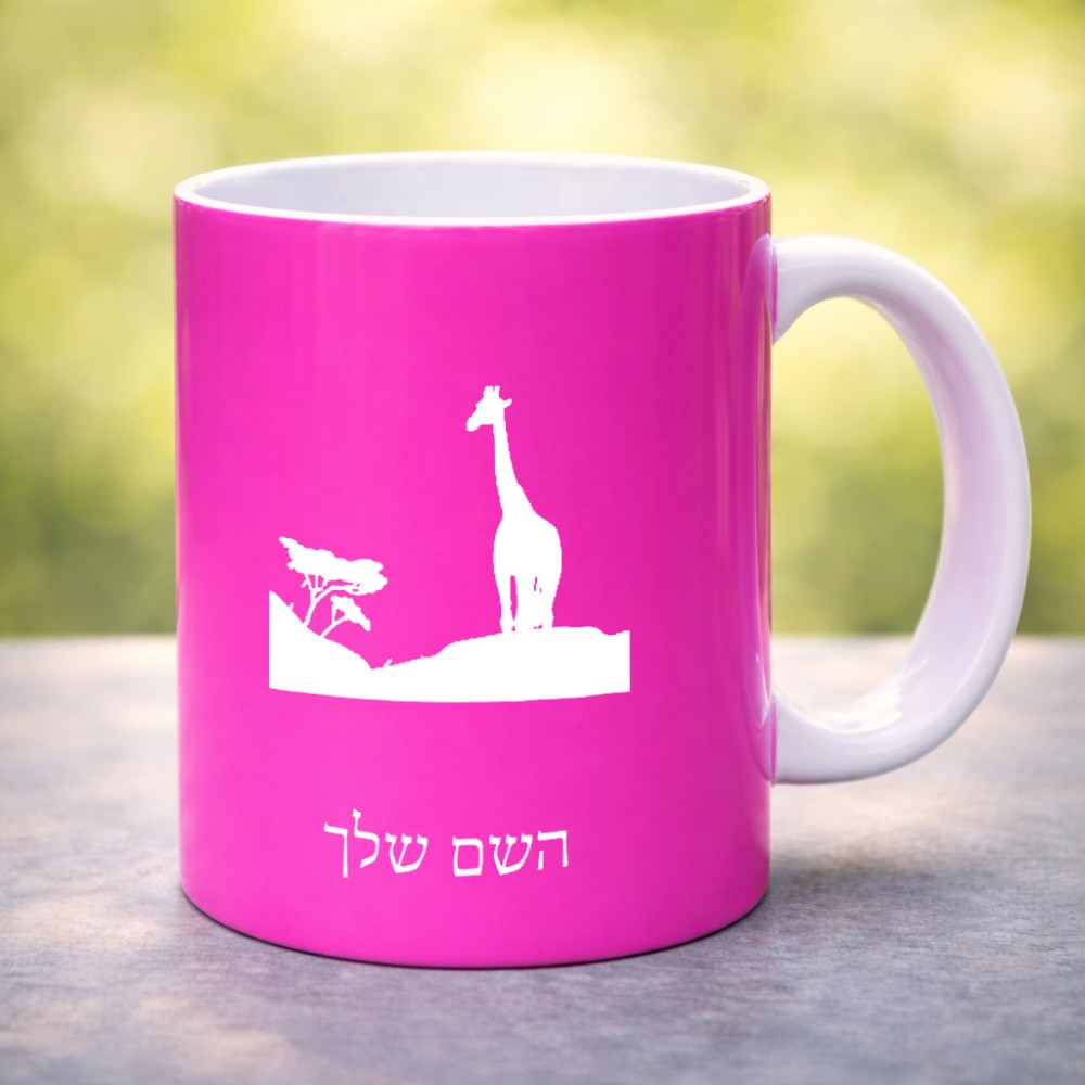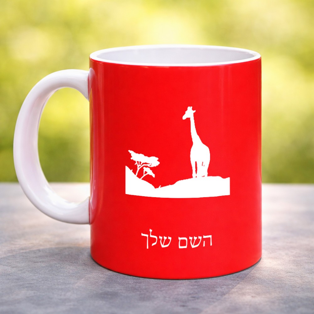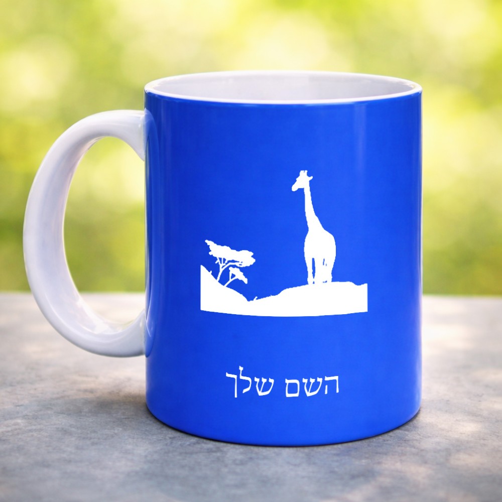 ספל תה \ קפה בעיצוב אישי עם השם שלך בעיצוב ג'ירפה באפריקה גדול הספל 325 מ"ל, הספל בעלת ידית לאחיזה יציבה. את השם המבוקש ניתן לציין בהזמנה, אם לא צויין אנחנו ניצור קשר לבירור.