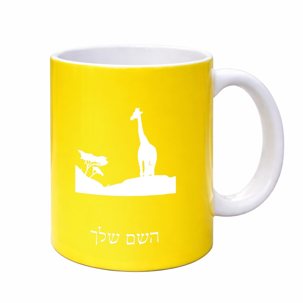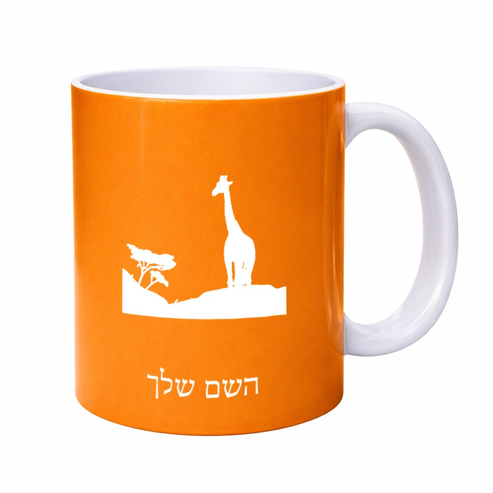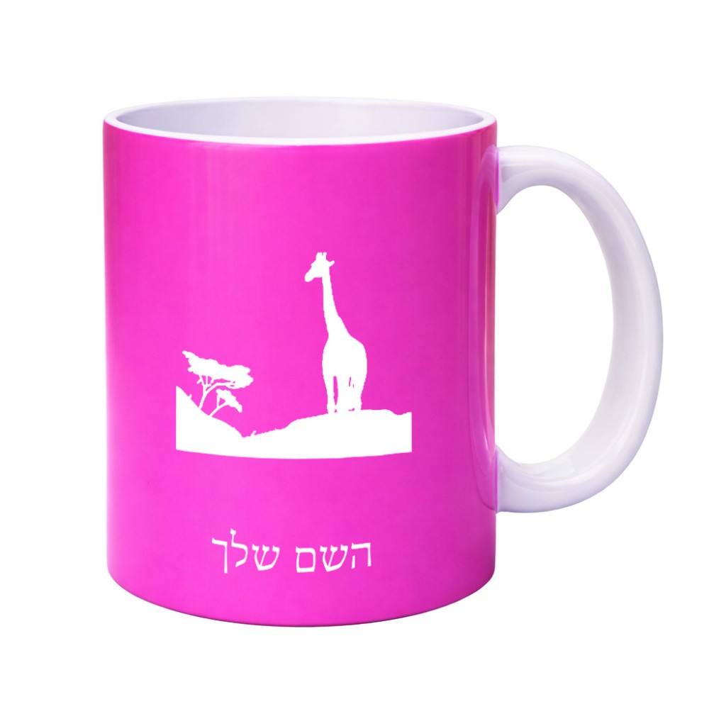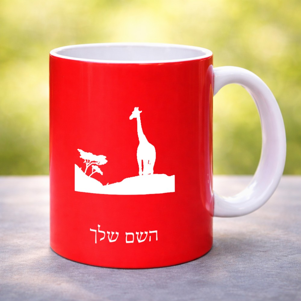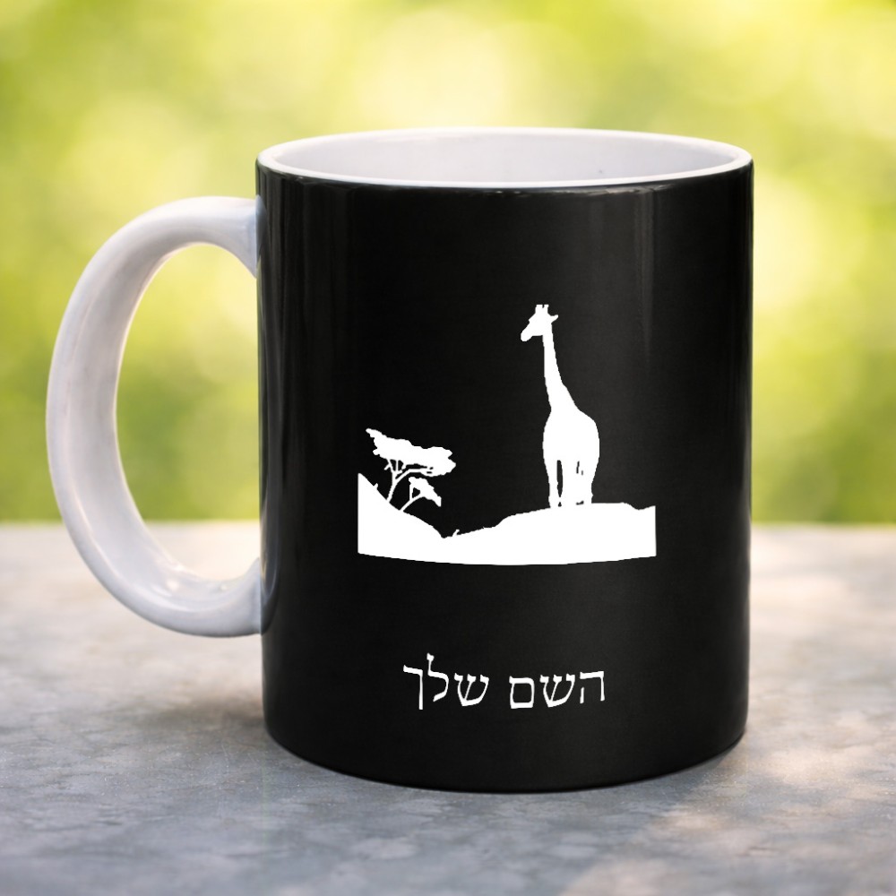 ספל תה \ קפה בעיצוב אישי עם השם שלך בעיצוב ג'ירפה באפריקה גדול הספל 325 מ"ל, הספל בעלת ידית לאחיזה יציבה. את השם המבוקש ניתן לציין בהזמנה, אם לא צויין אנחנו ניצור קשר לבירור.