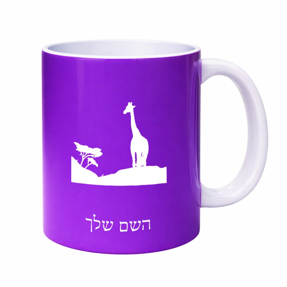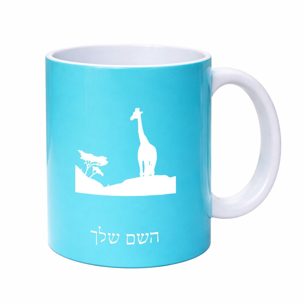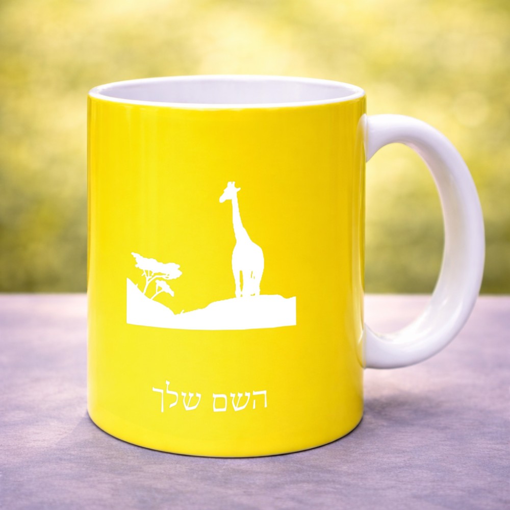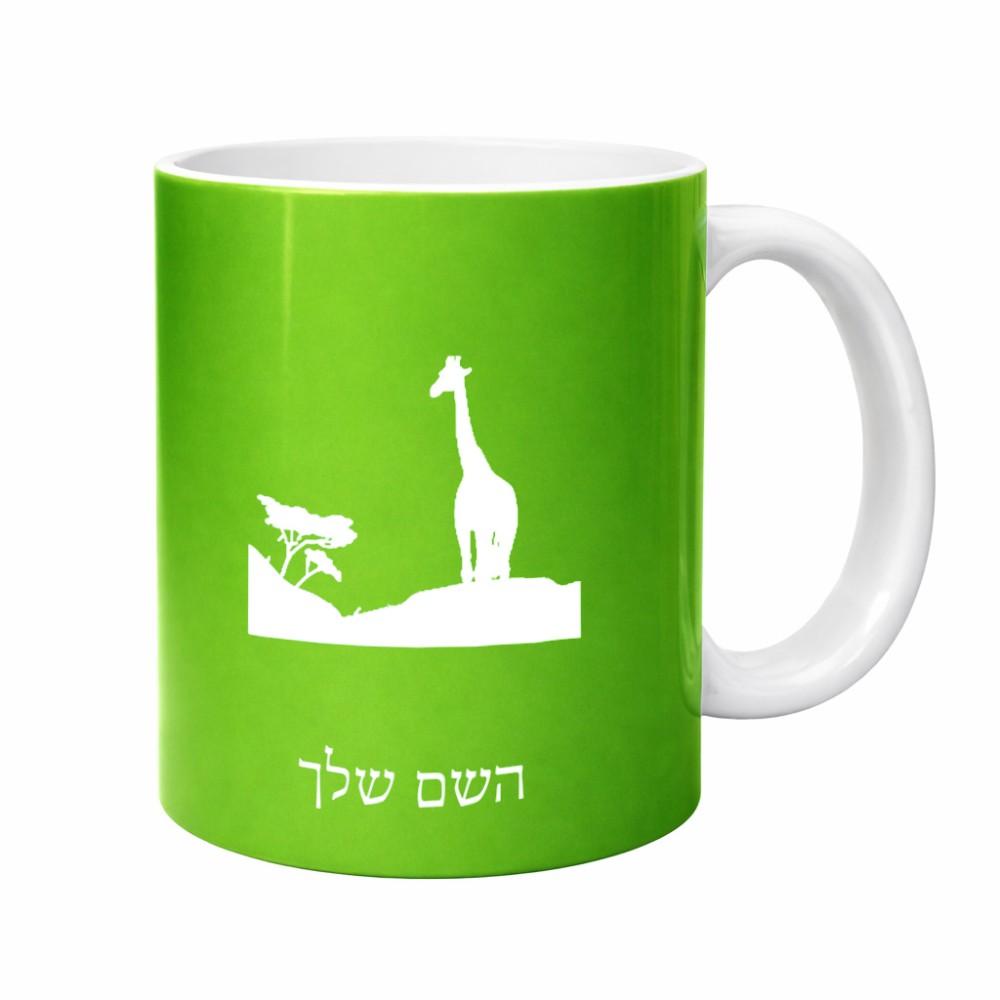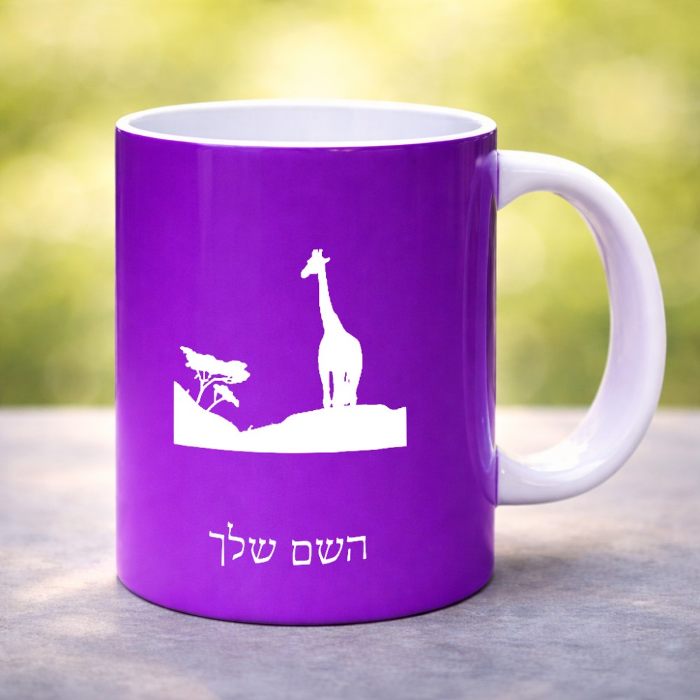 ספל תה \ קפה בעיצוב אישי עם השם שלך בעיצוב ג'ירפה באפריקה גדול הספל 325 מ"ל, הספל בעלת ידית לאחיזה יציבה. את השם המבוקש ניתן לציין בהזמנה, אם לא צויין אנחנו ניצור קשר לבירור.