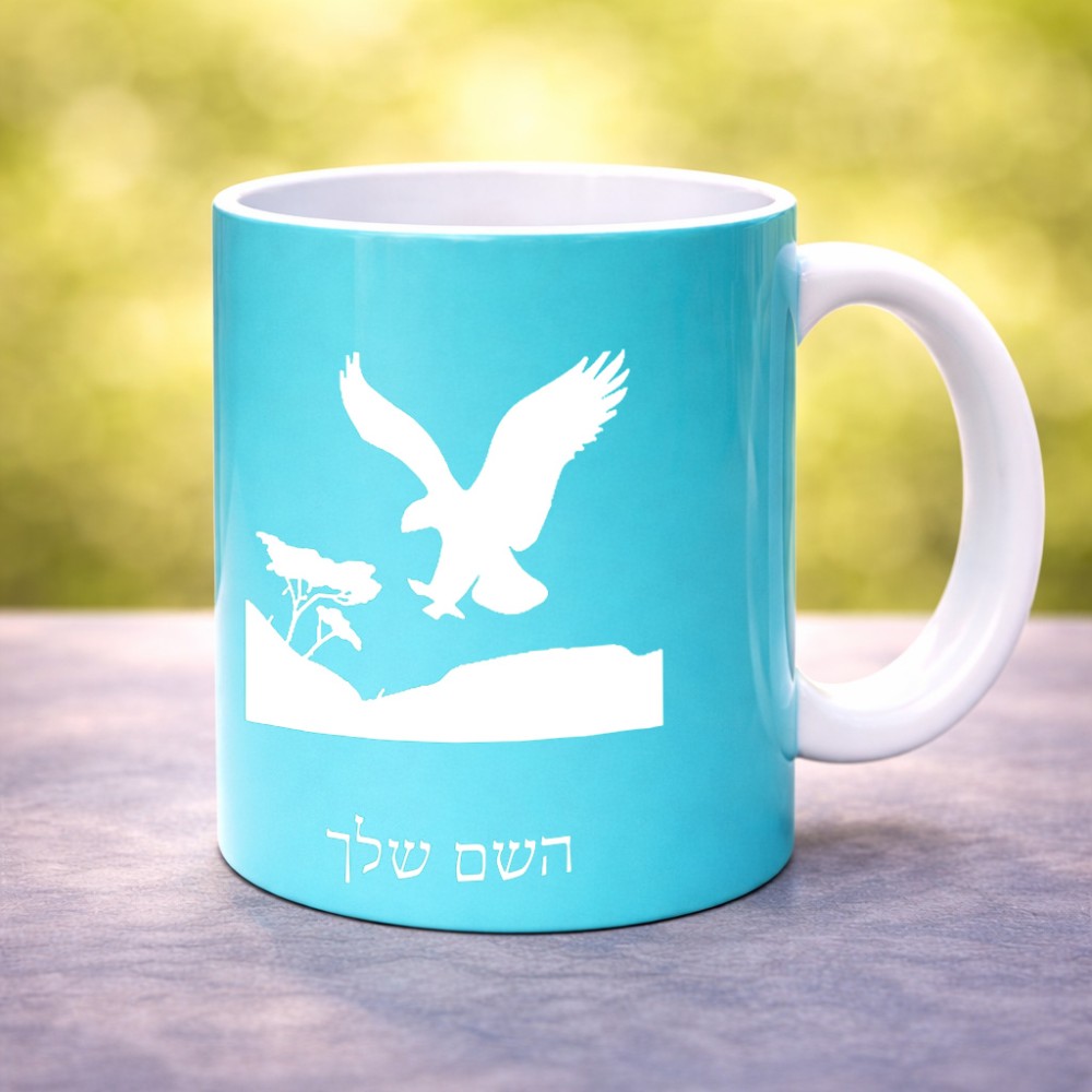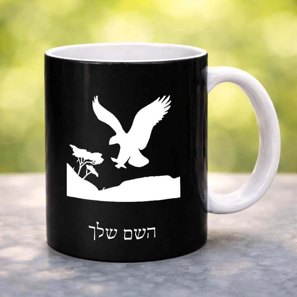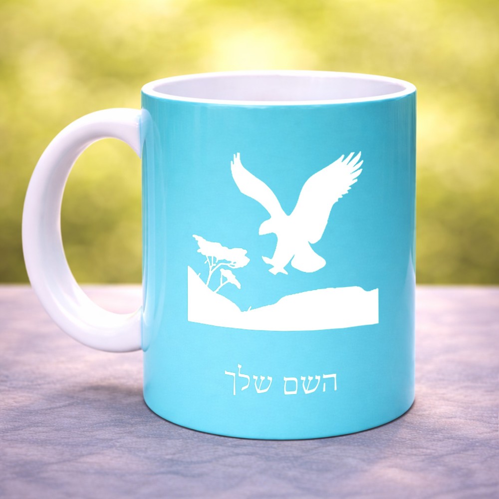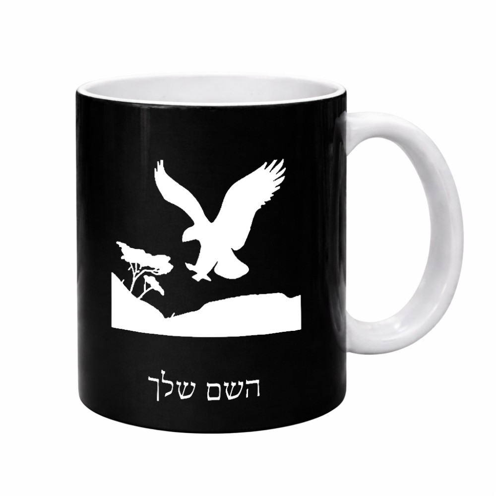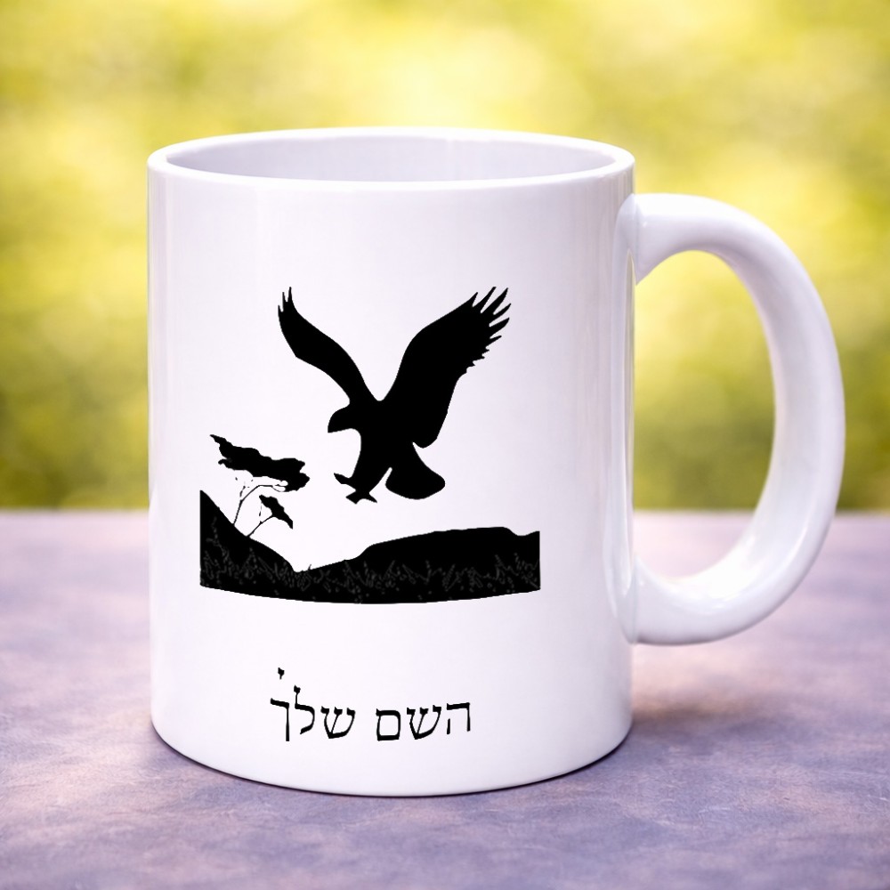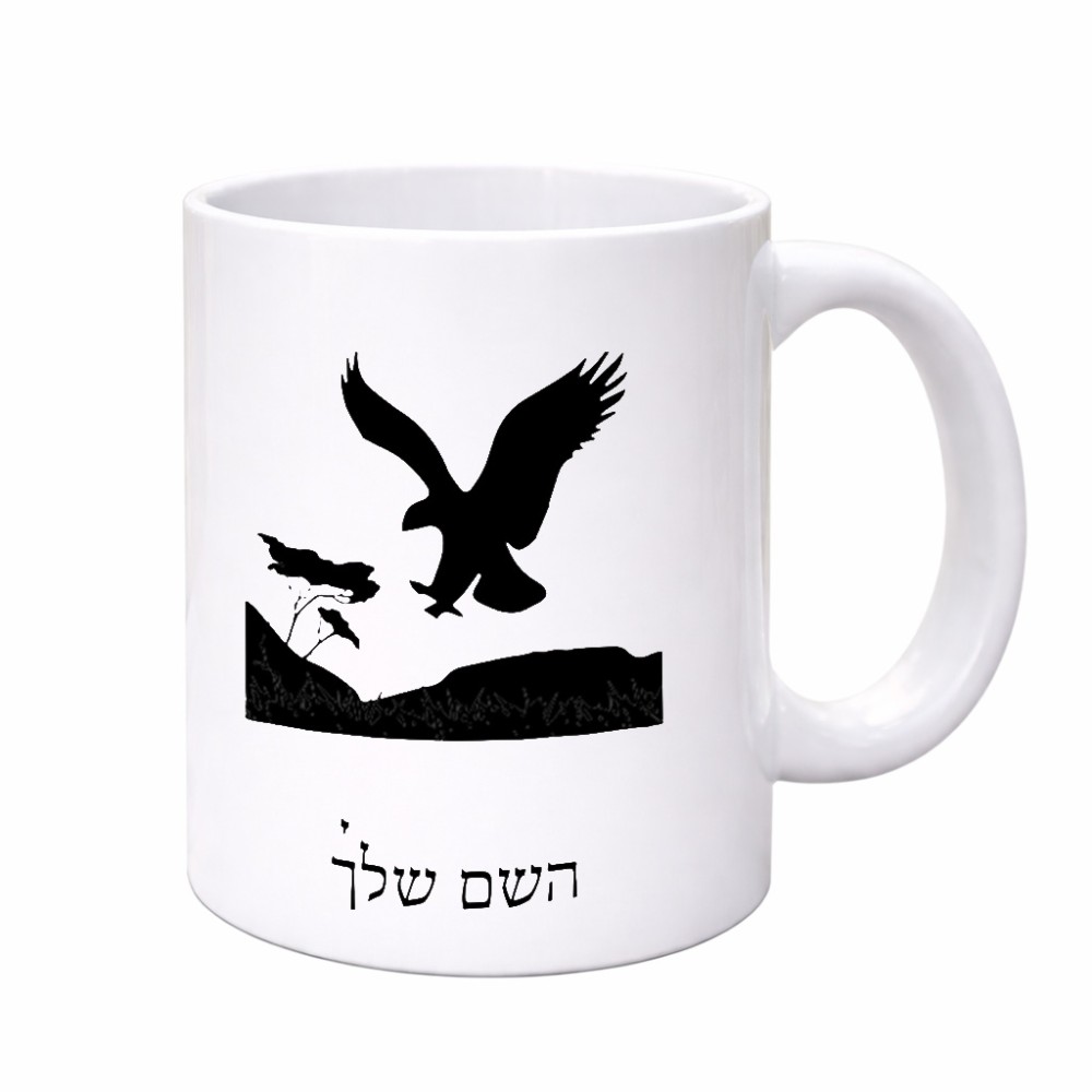 ספל תה \ קפה בעיצוב אישי עם השם שלך בעיצוב נשר אמריקאי גדול הספל 325 מ"ל, הספל בעלת ידית לאחיזה יציבה. את השם המבוקש ניתן לציין בהזמנה, אם לא צויין אנחנו ניצור קשר לבירור.