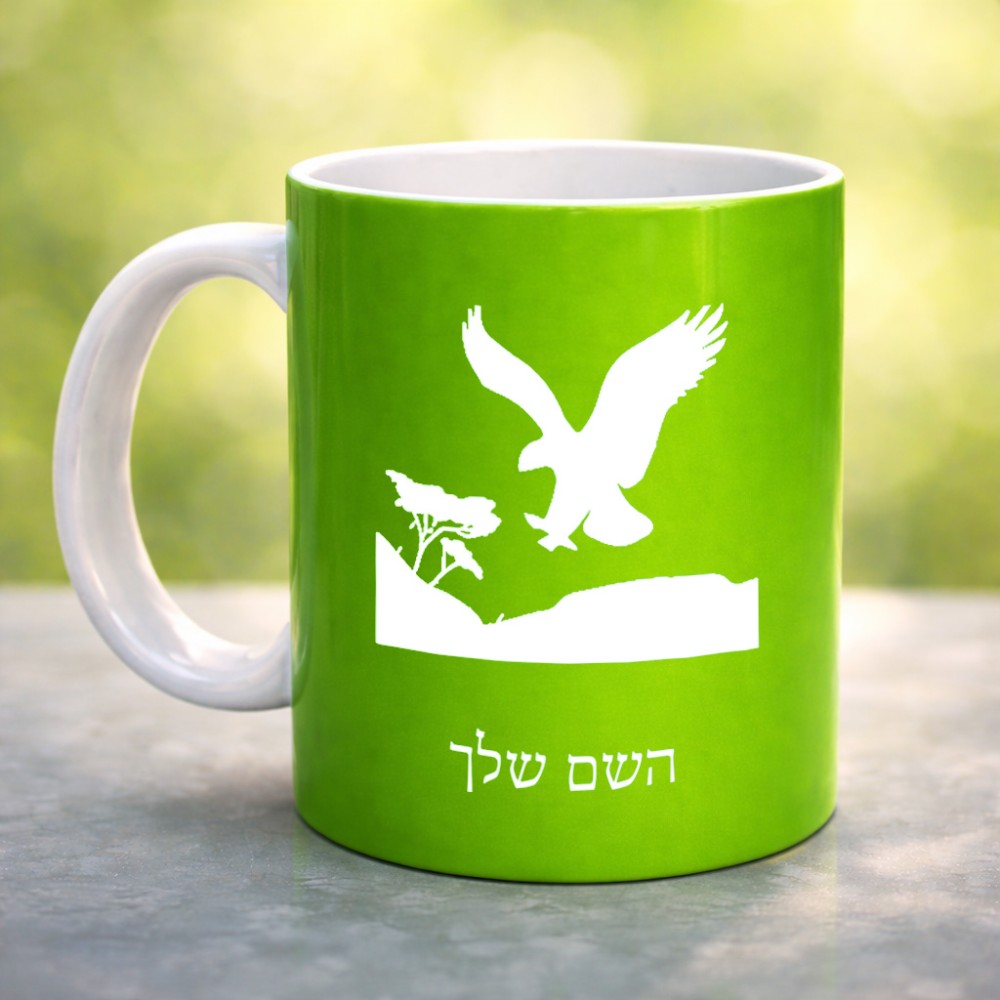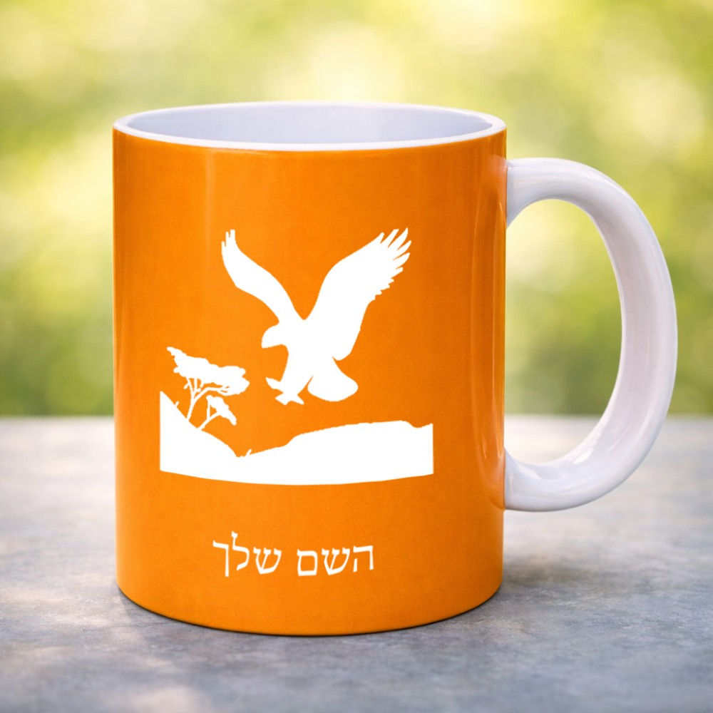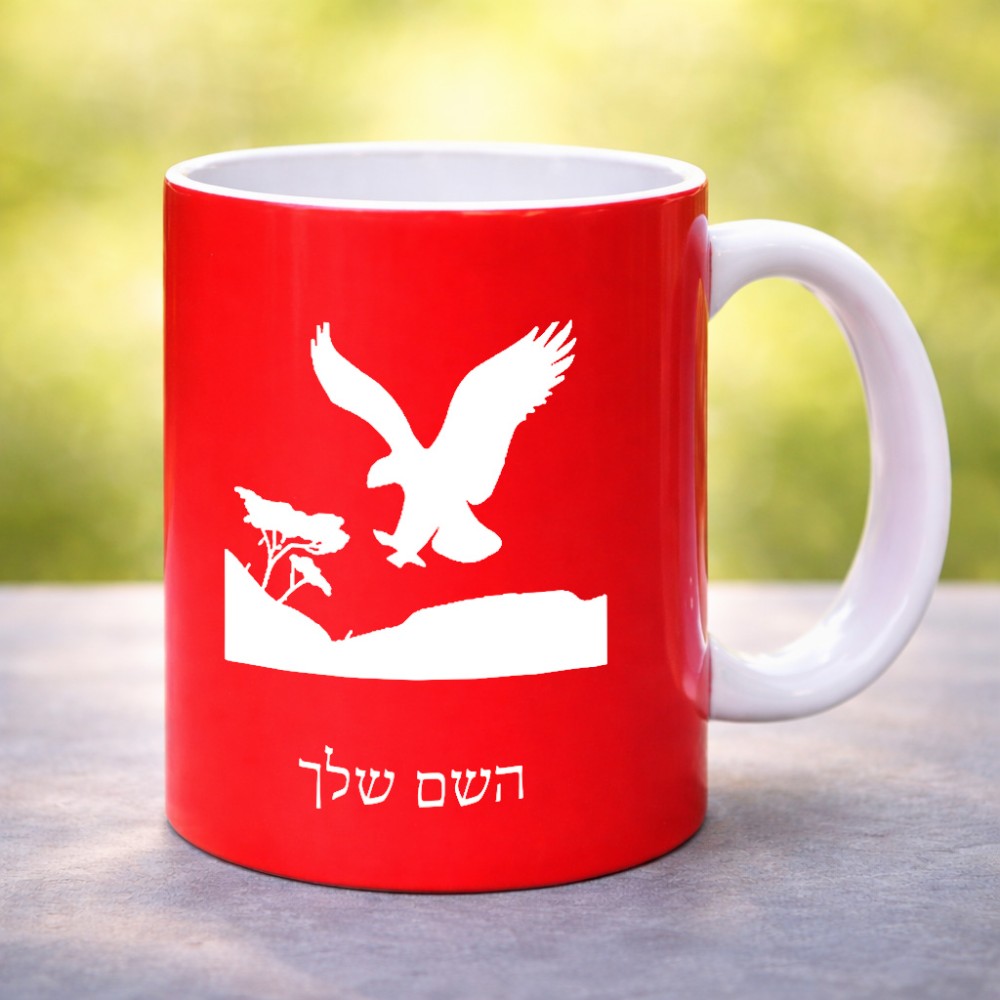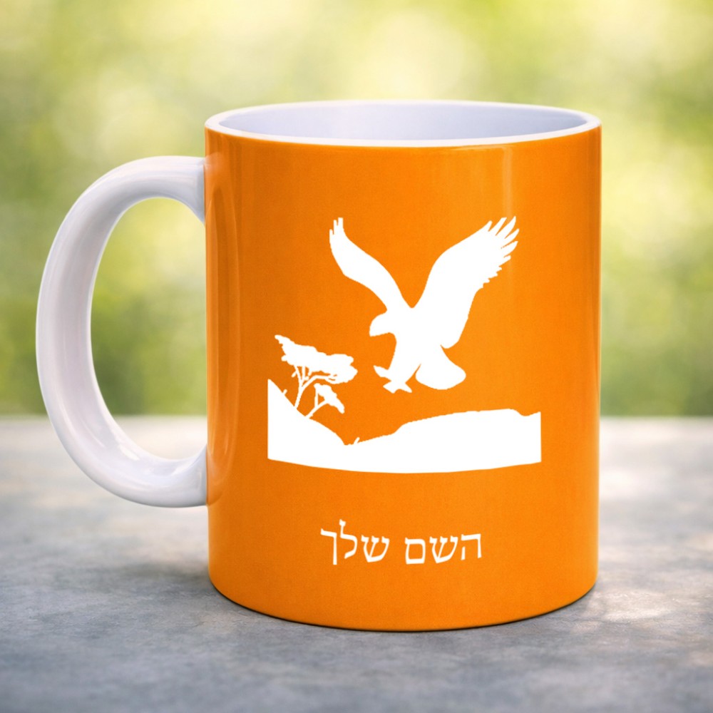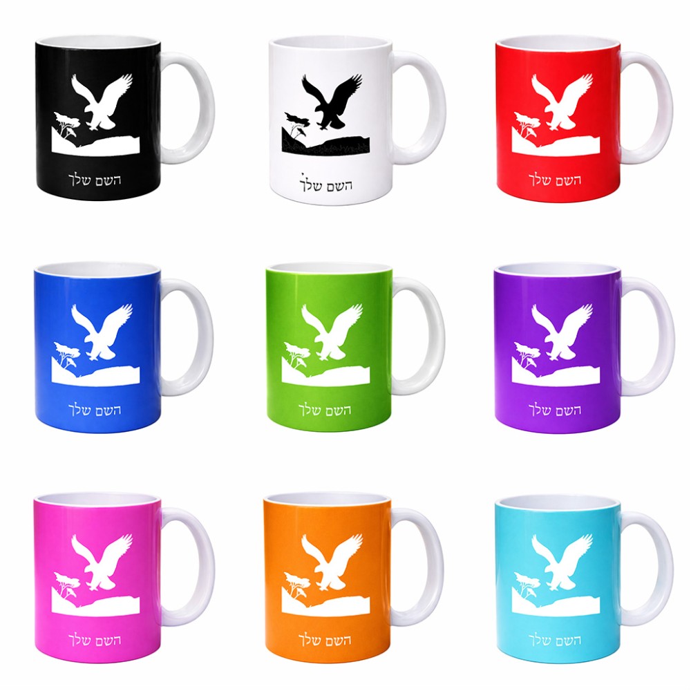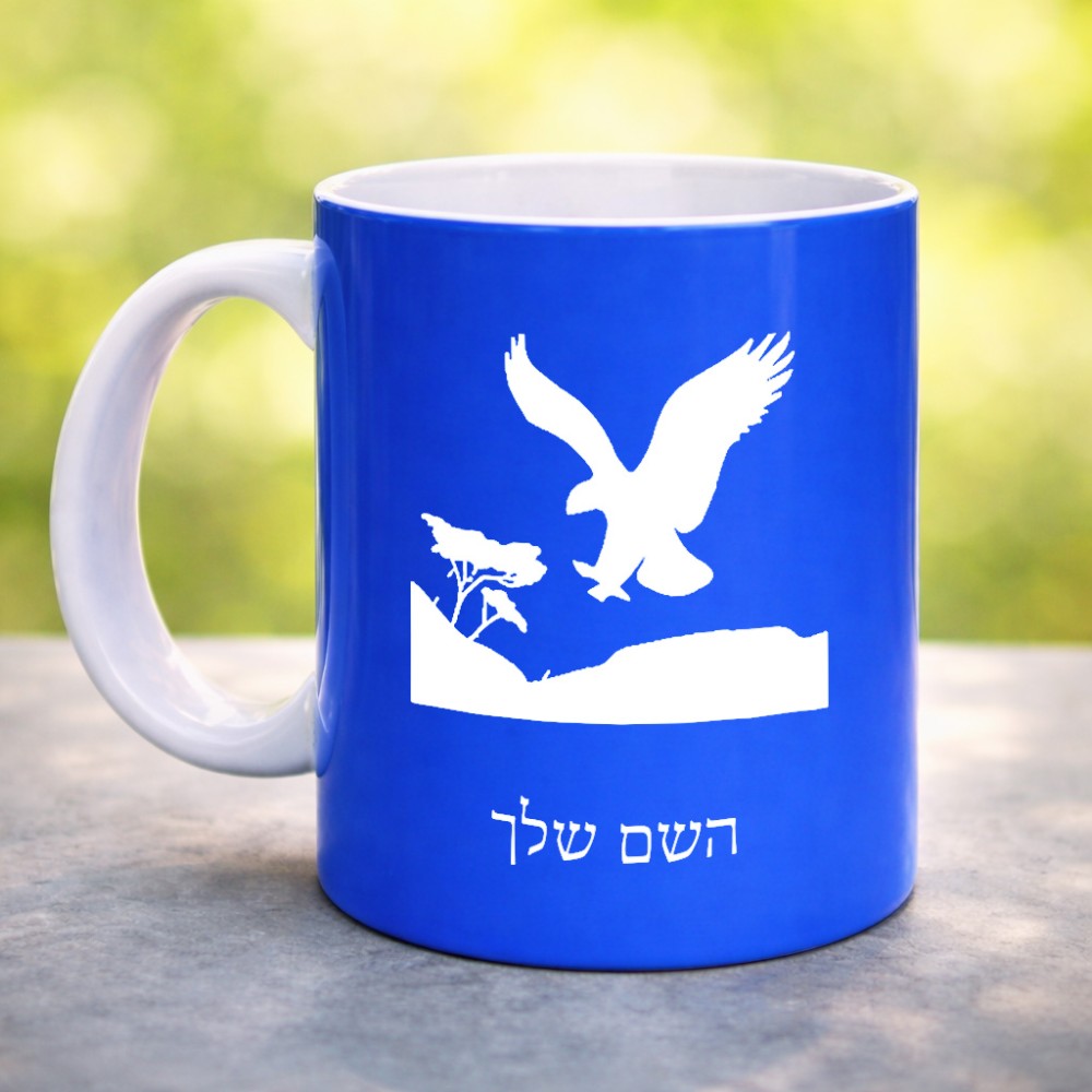 ספל תה \ קפה בעיצוב אישי עם השם שלך בעיצוב נשר אמריקאי גדול הספל 325 מ"ל, הספל בעלת ידית לאחיזה יציבה. את השם המבוקש ניתן לציין בהזמנה, אם לא צויין אנחנו ניצור קשר לבירור.