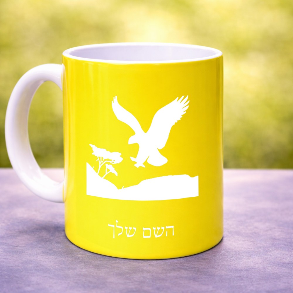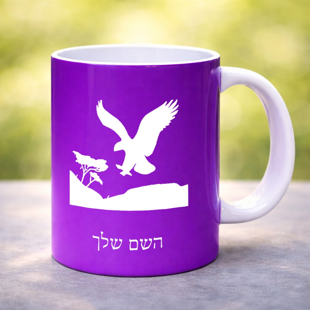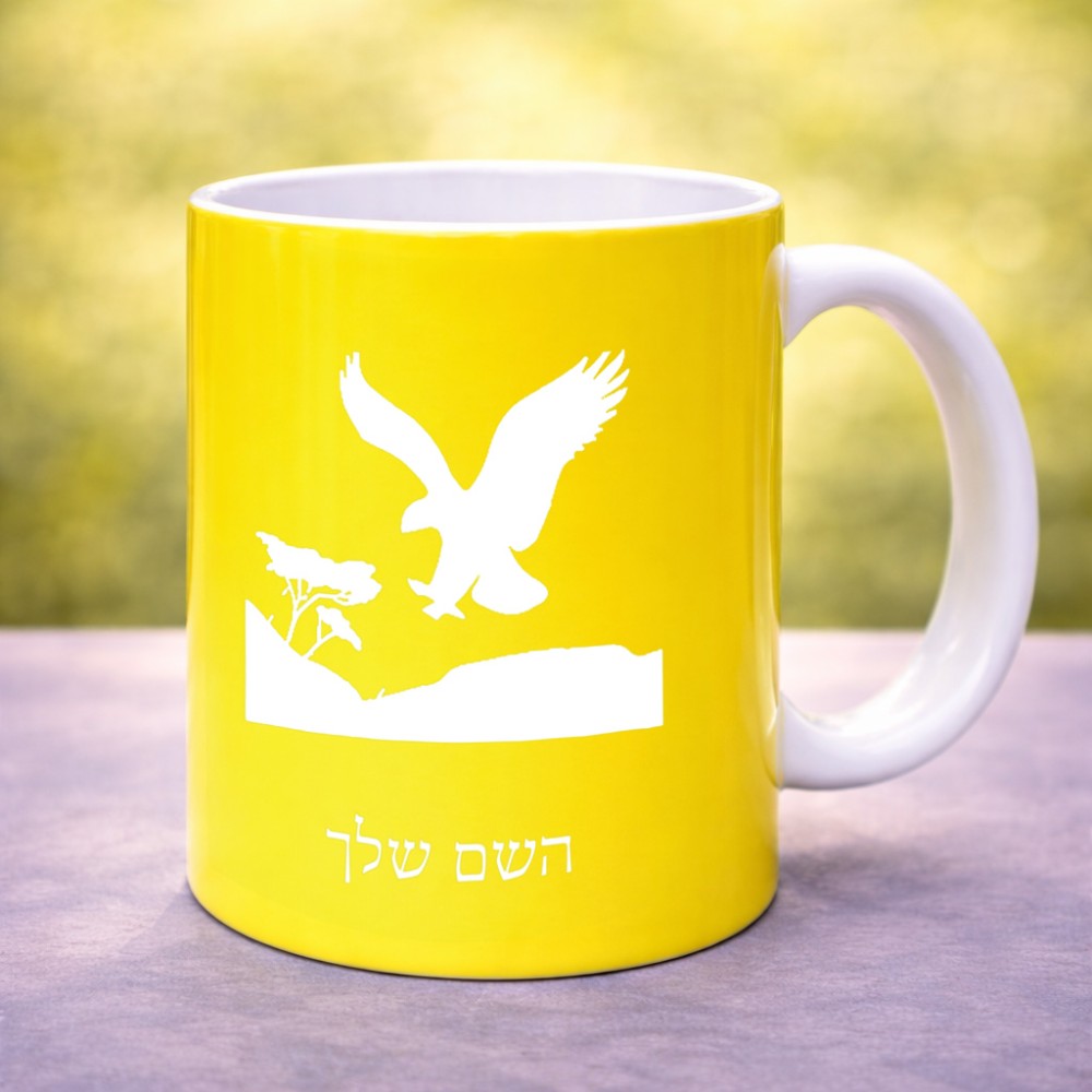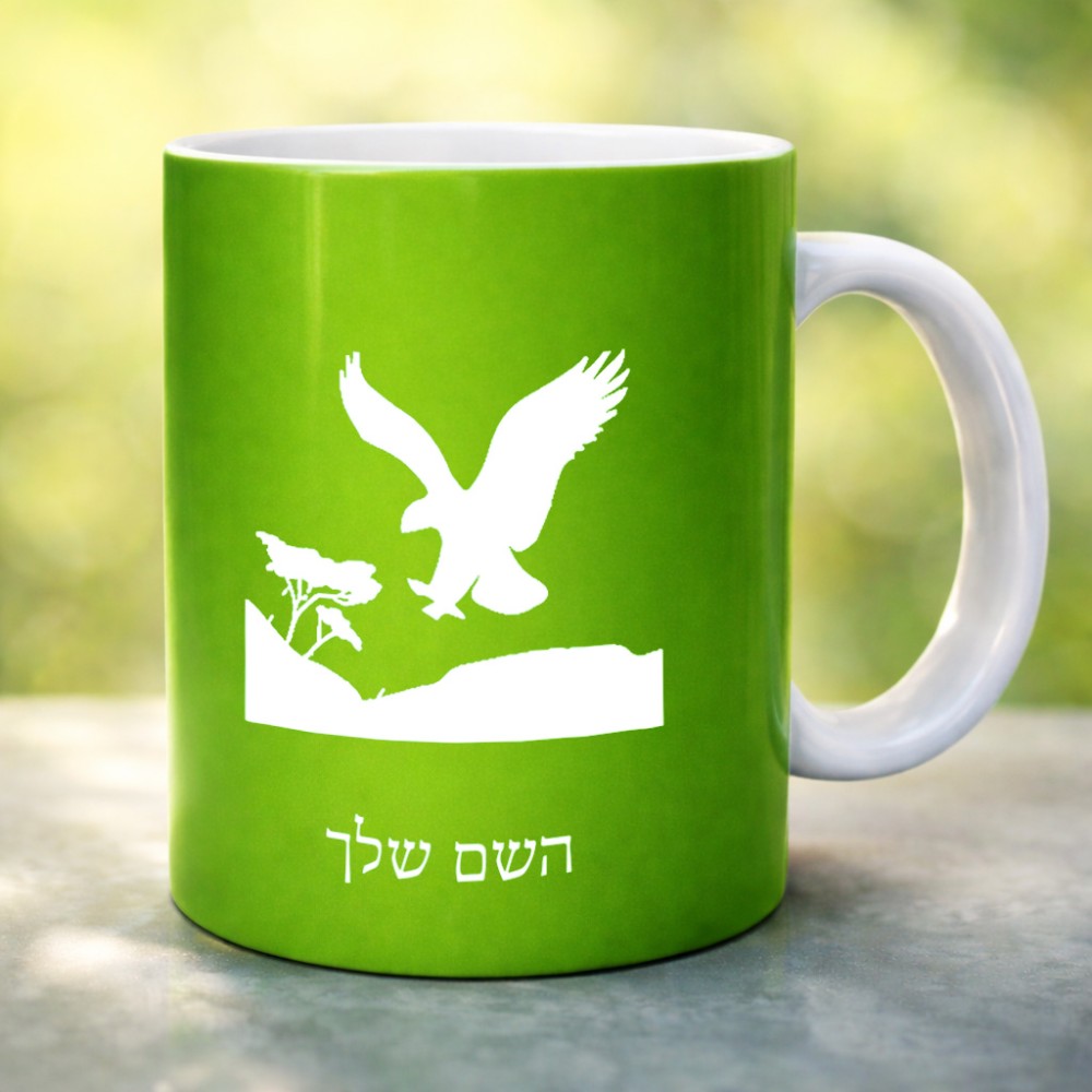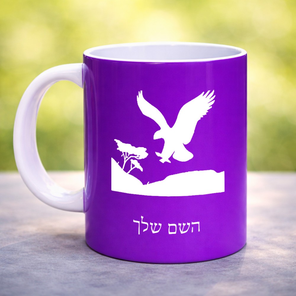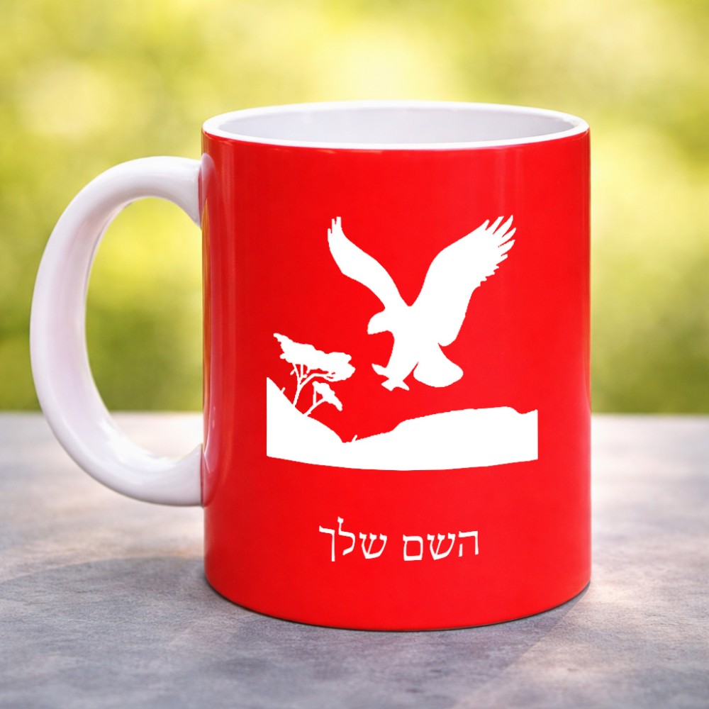 ספל תה \ קפה בעיצוב אישי עם השם שלך בעיצוב נשר אמריקאי גדול הספל 325 מ"ל, הספל בעלת ידית לאחיזה יציבה. את השם המבוקש ניתן לציין בהזמנה, אם לא צויין אנחנו ניצור קשר לבירור.