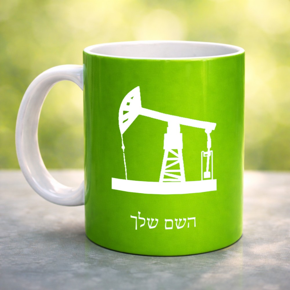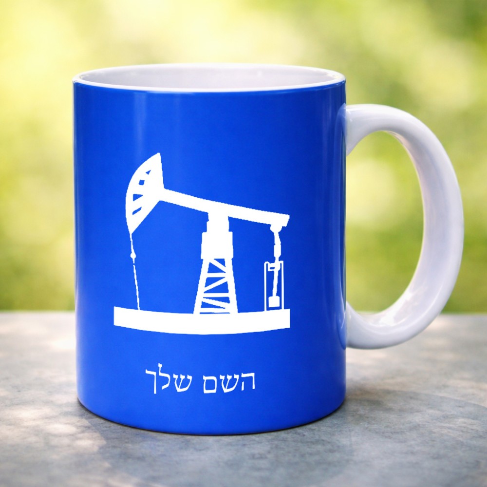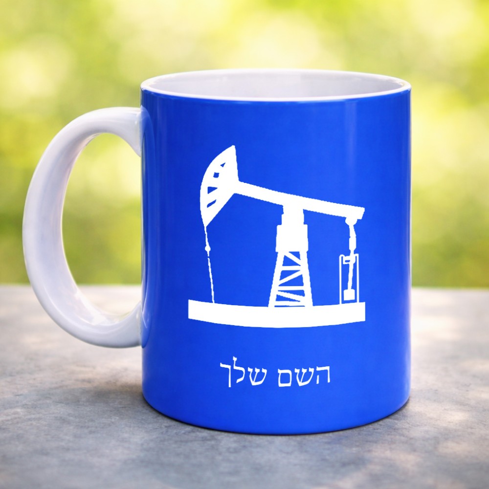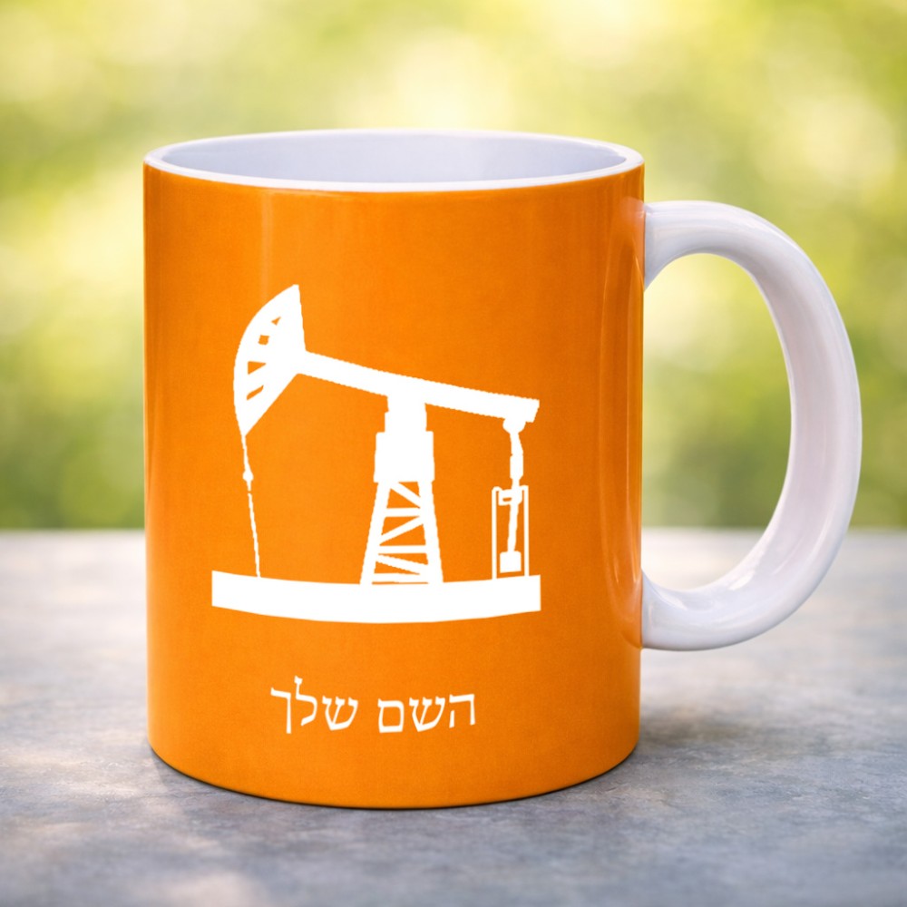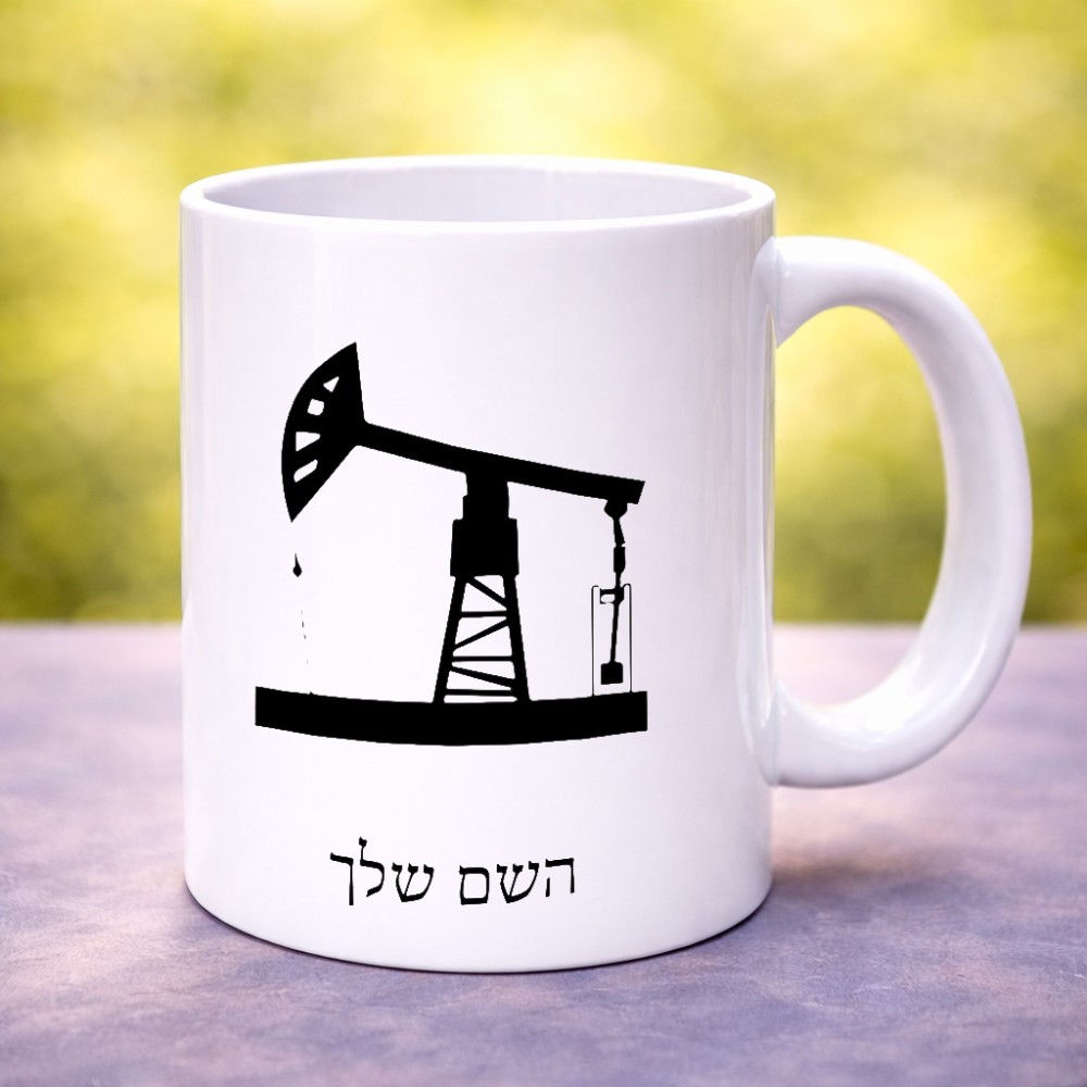 ספל תה \ קפה בעיצוב אישי עם השם שלך בעיצוב באר נפט גדול הספל 325 מ"ל, הספל בעלת ידית לאחיזה יציבה. את השם המבוקש ניתן לציין בהזמנה, אם לא צויין אנחנו ניצור קשר לבירור.