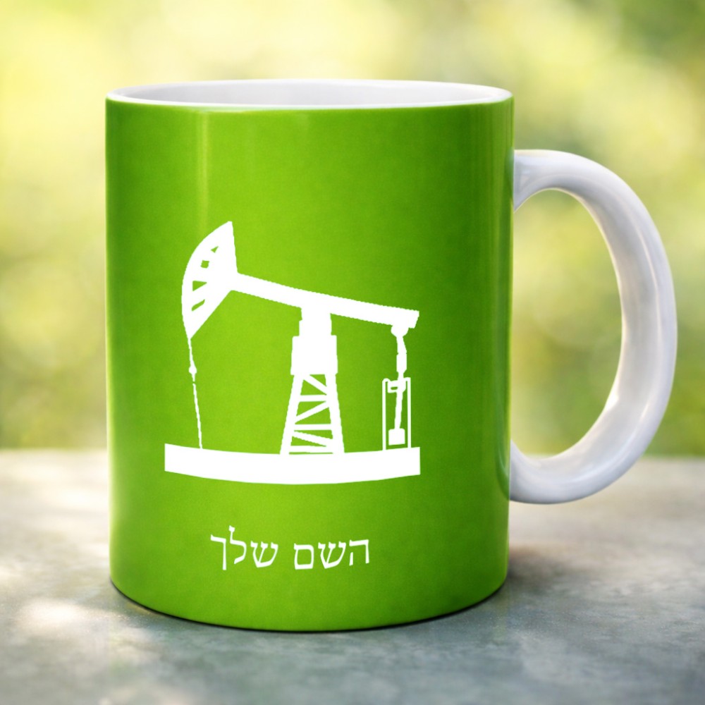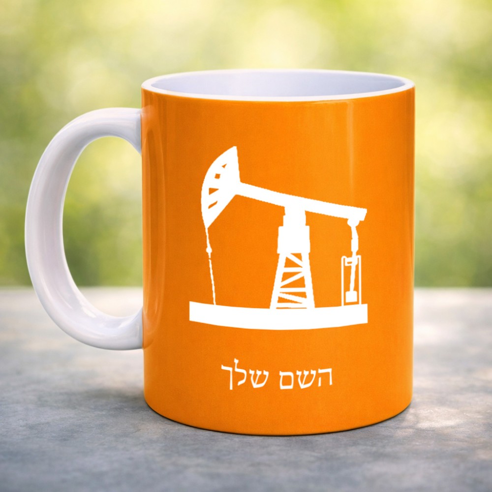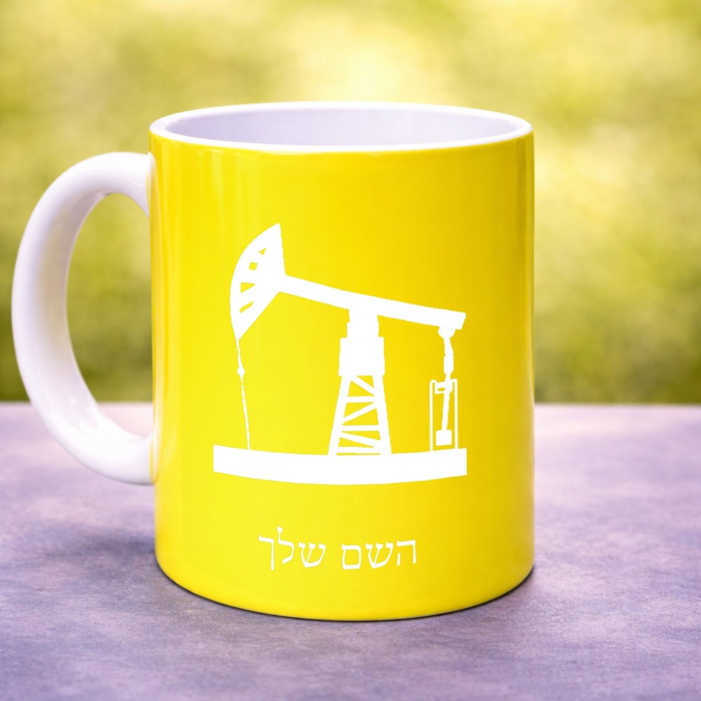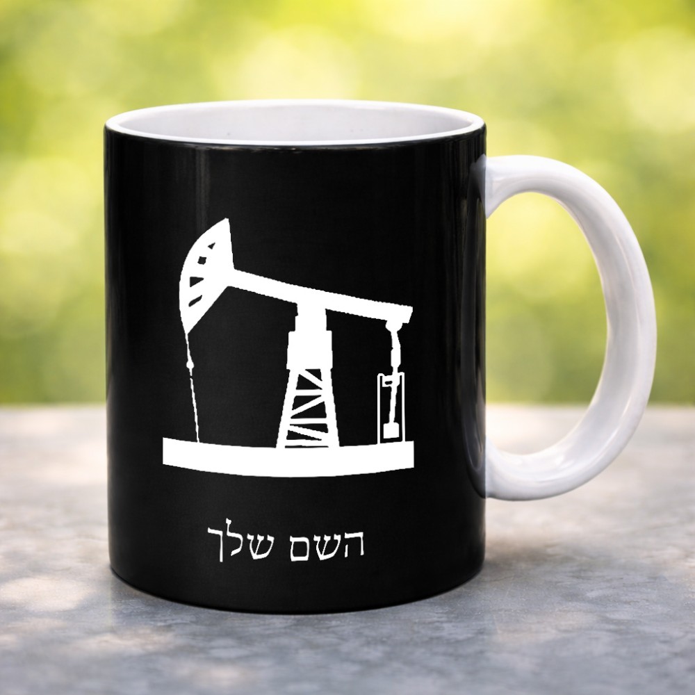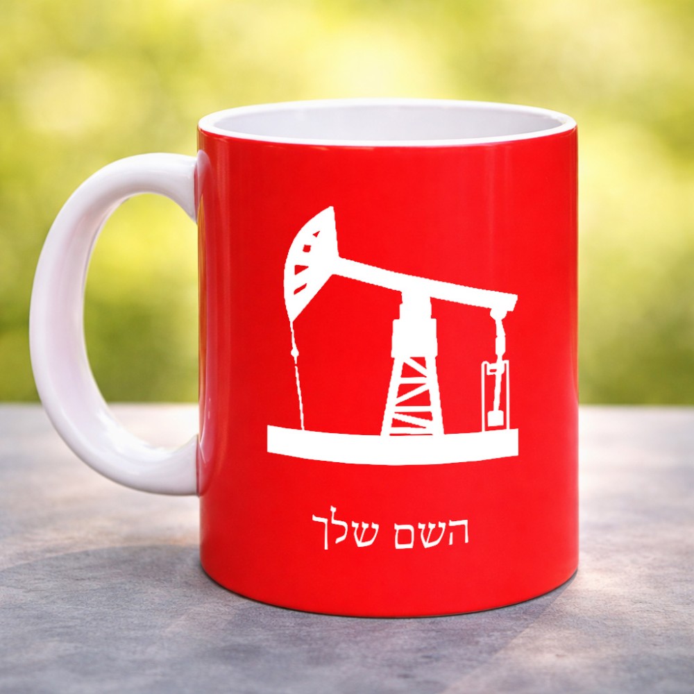 ספל תה \ קפה בעיצוב אישי עם השם שלך בעיצוב באר נפט גדול הספל 325 מ"ל, הספל בעלת ידית לאחיזה יציבה. את השם המבוקש ניתן לציין בהזמנה, אם לא צויין אנחנו ניצור קשר לבירור.