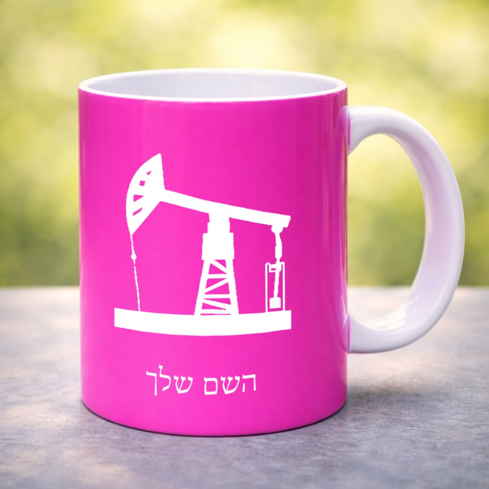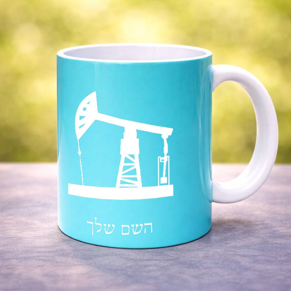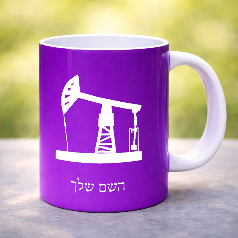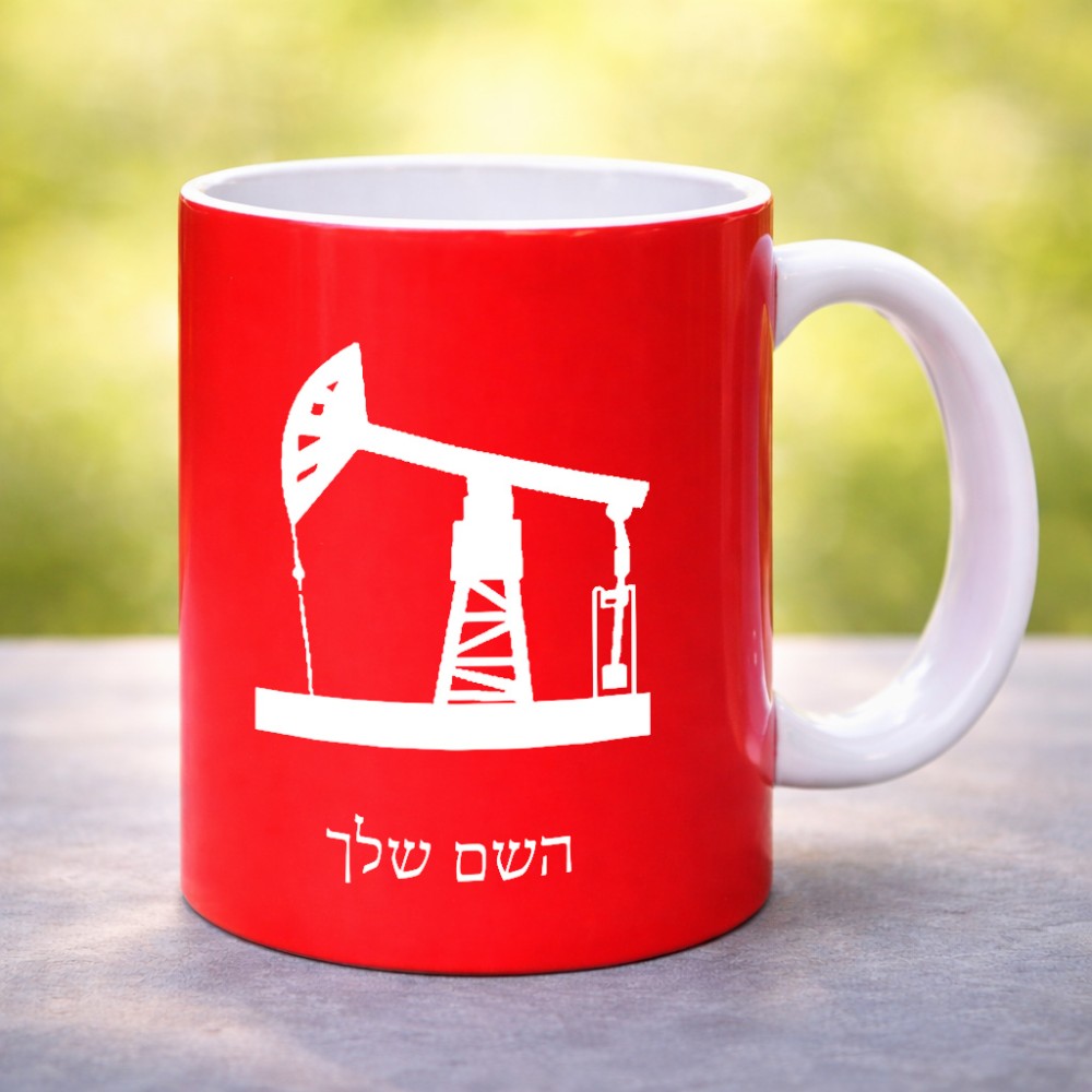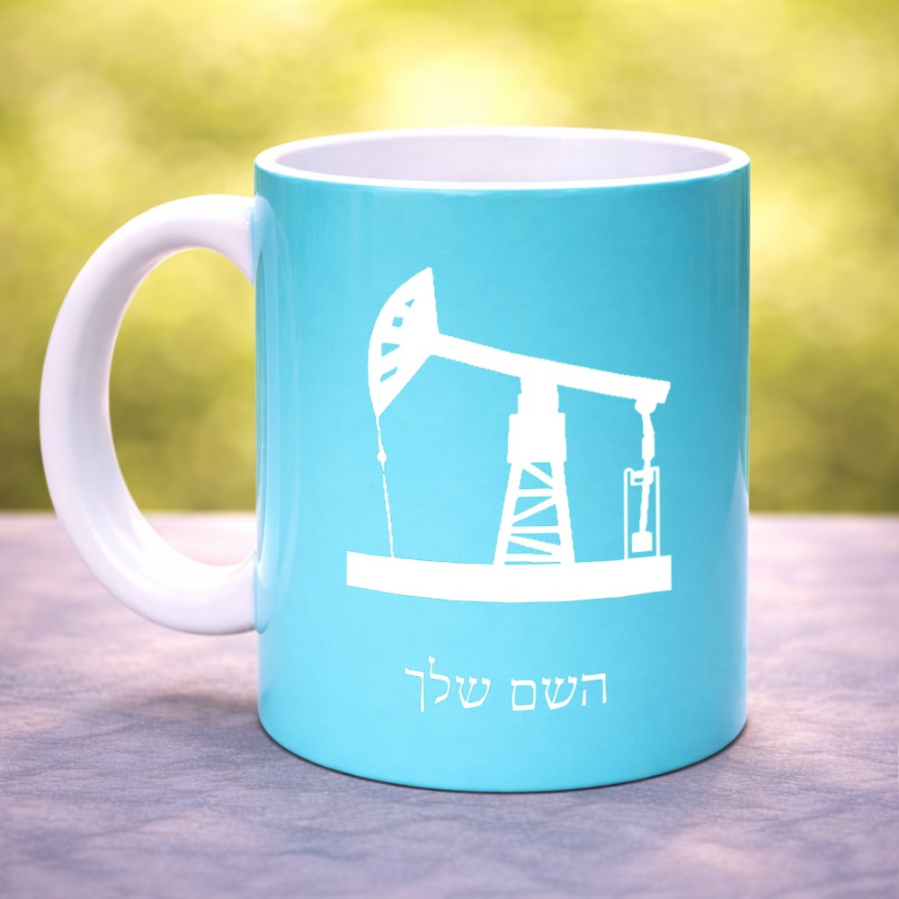 ספל תה \ קפה בעיצוב אישי עם השם שלך בעיצוב באר נפט גדול הספל 325 מ"ל, הספל בעלת ידית לאחיזה יציבה. את השם המבוקש ניתן לציין בהזמנה, אם לא צויין אנחנו ניצור קשר לבירור.