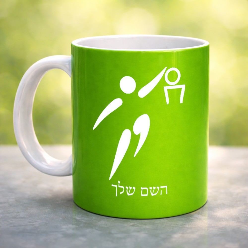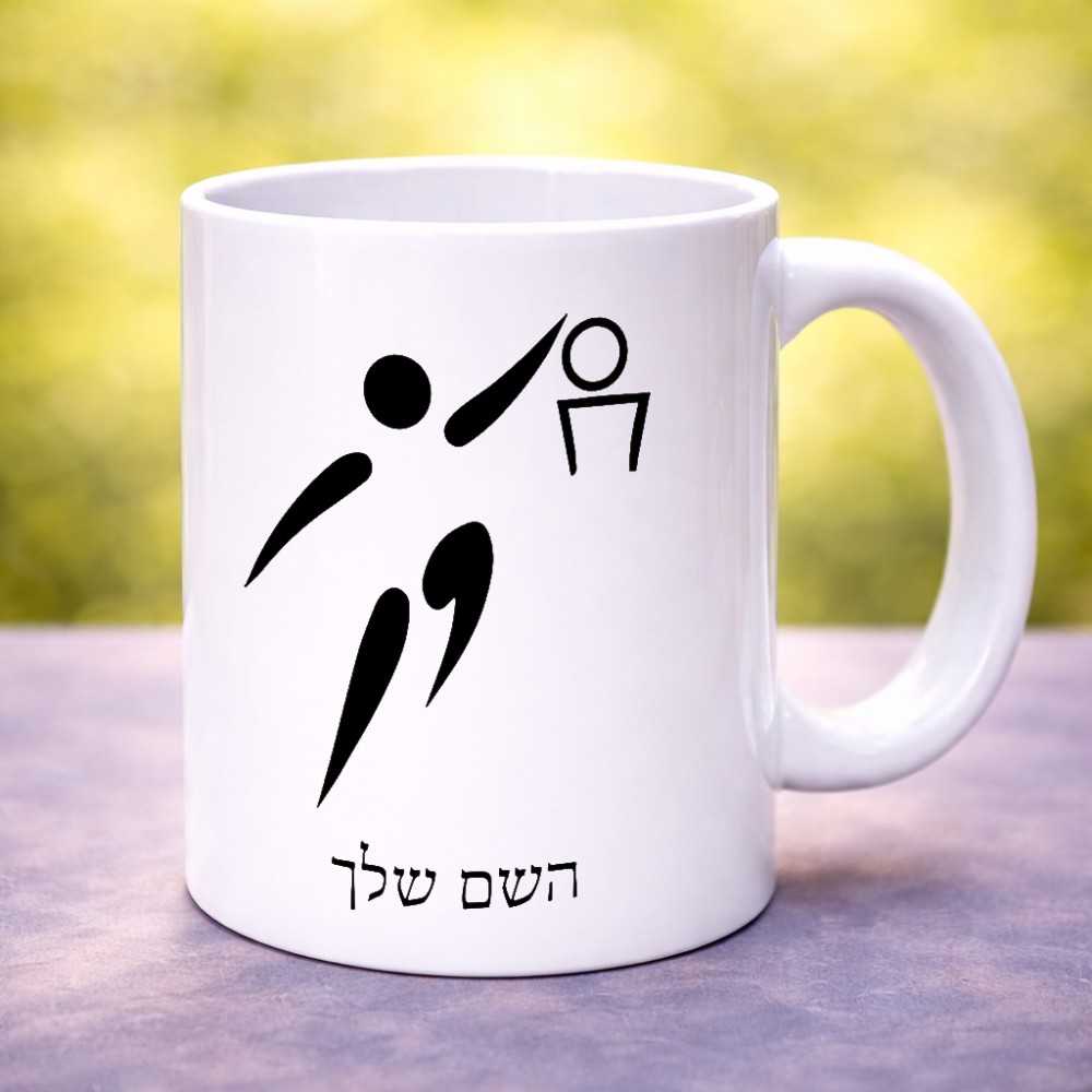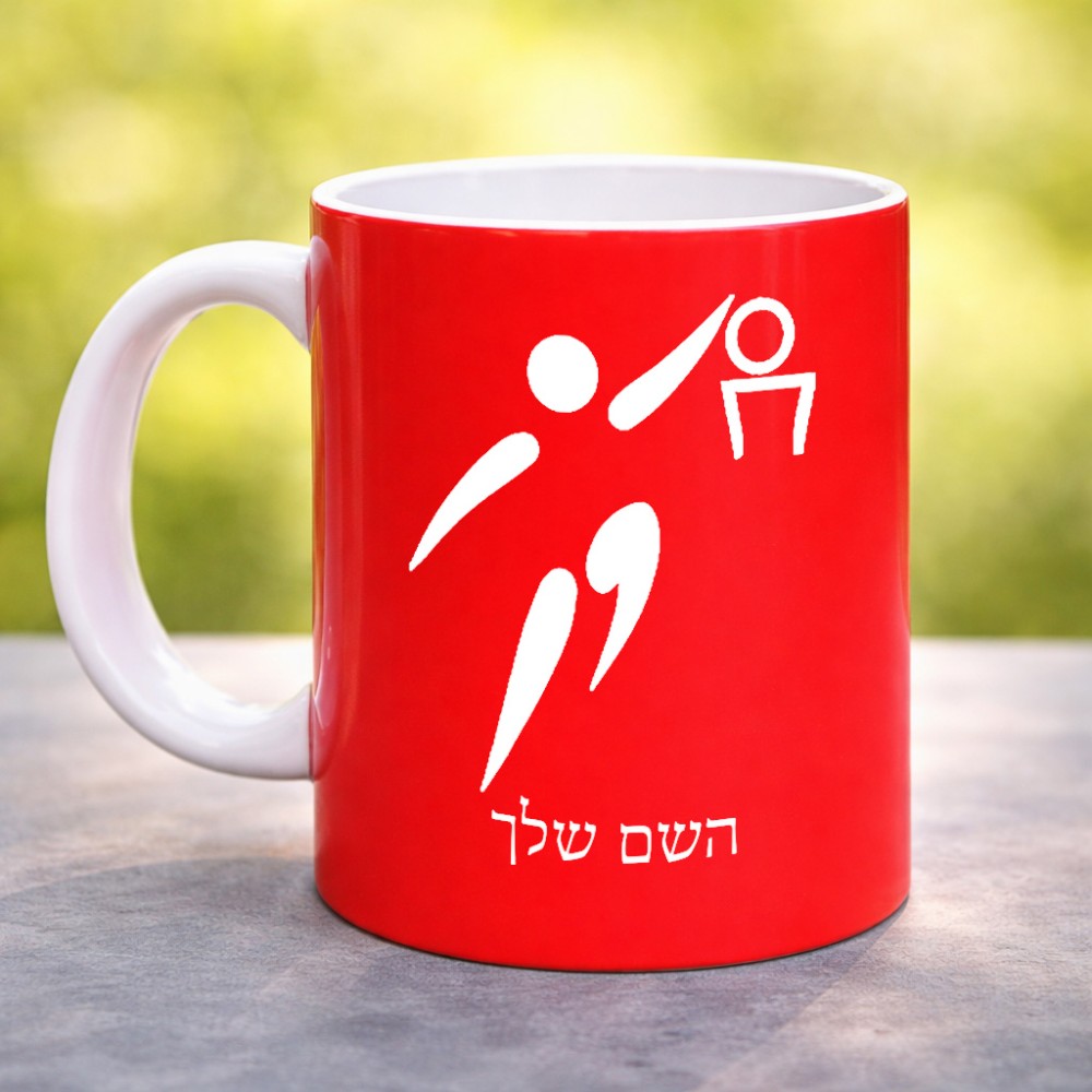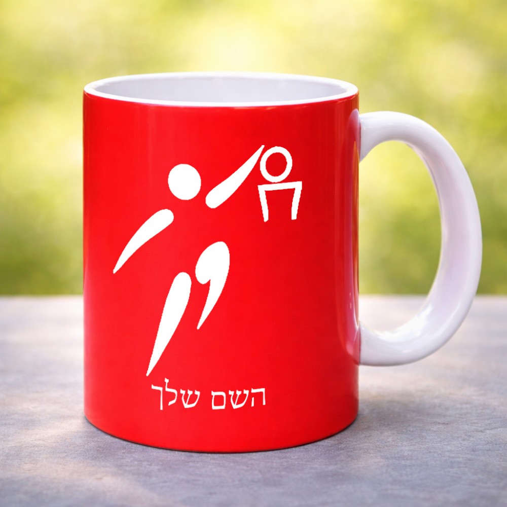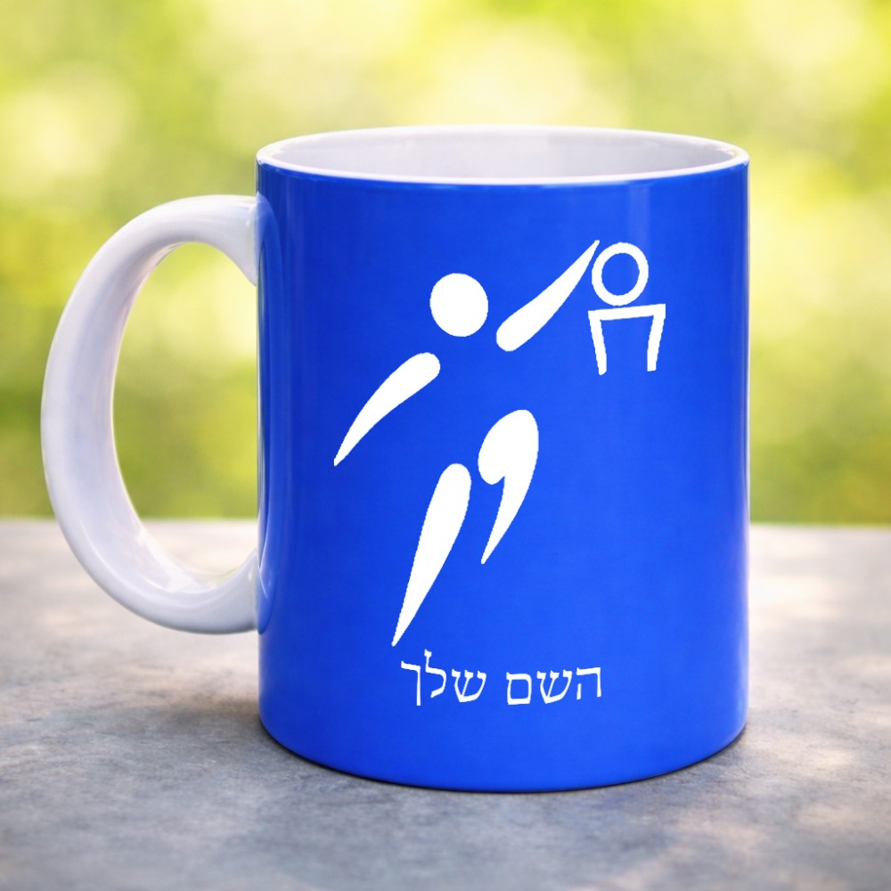ספל תה \ קפה בעיצוב אישי עם השם שלך בעיצוב כדורסל אולימפי גדול הספל 325 מ"ל, הספל בעלת ידית לאחיזה יציבה. את השם המבוקש ניתן לציין בהזמנה, אם לא צויין אנחנו ניצור קשר לבירור.