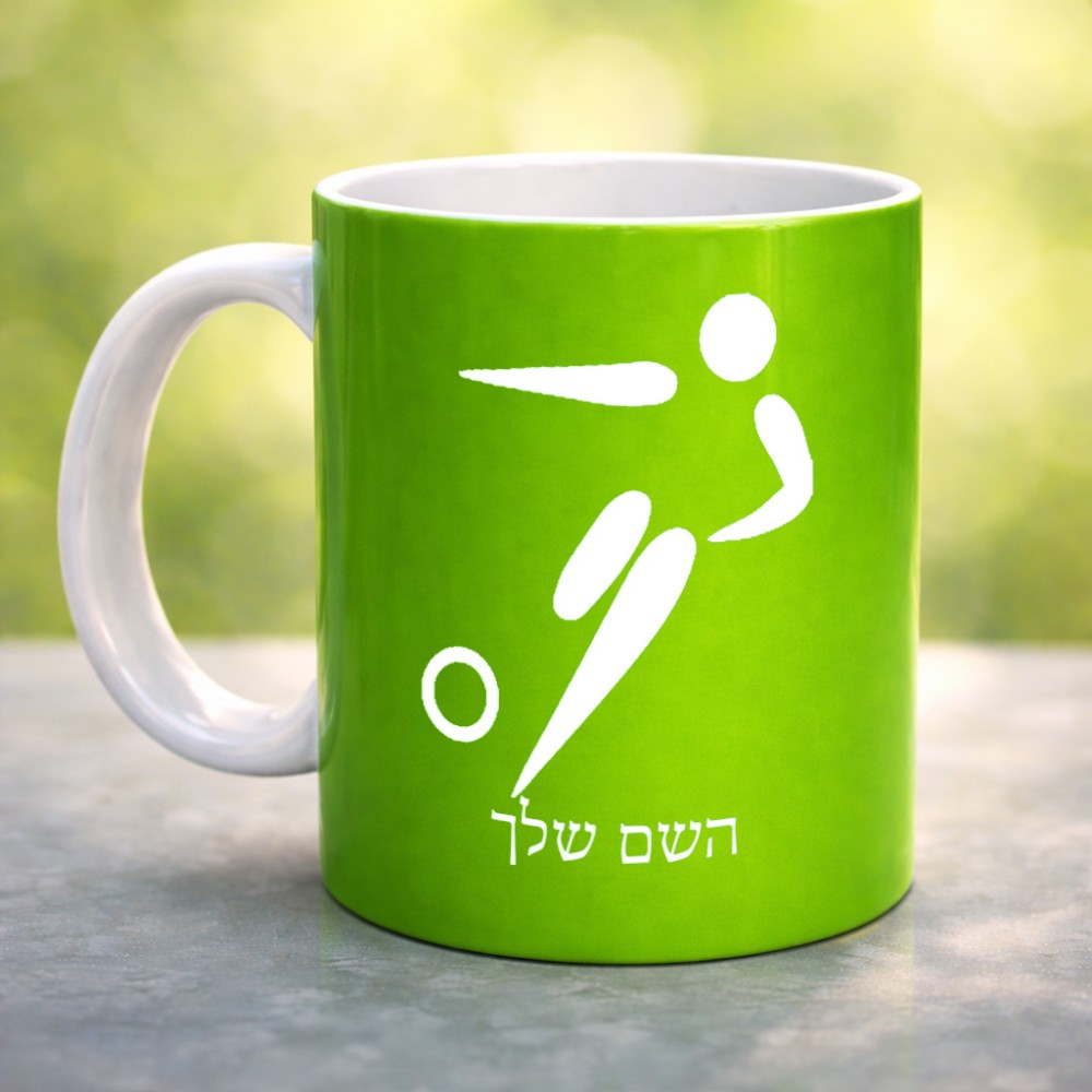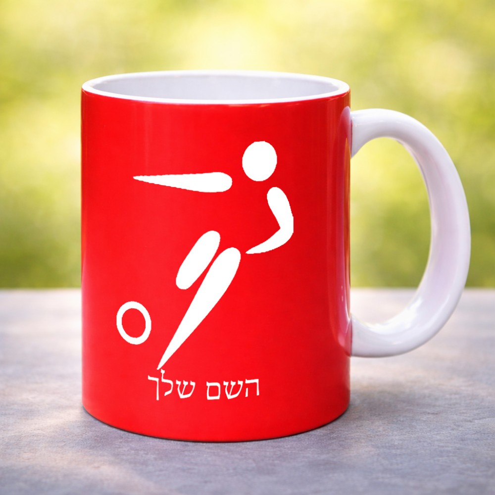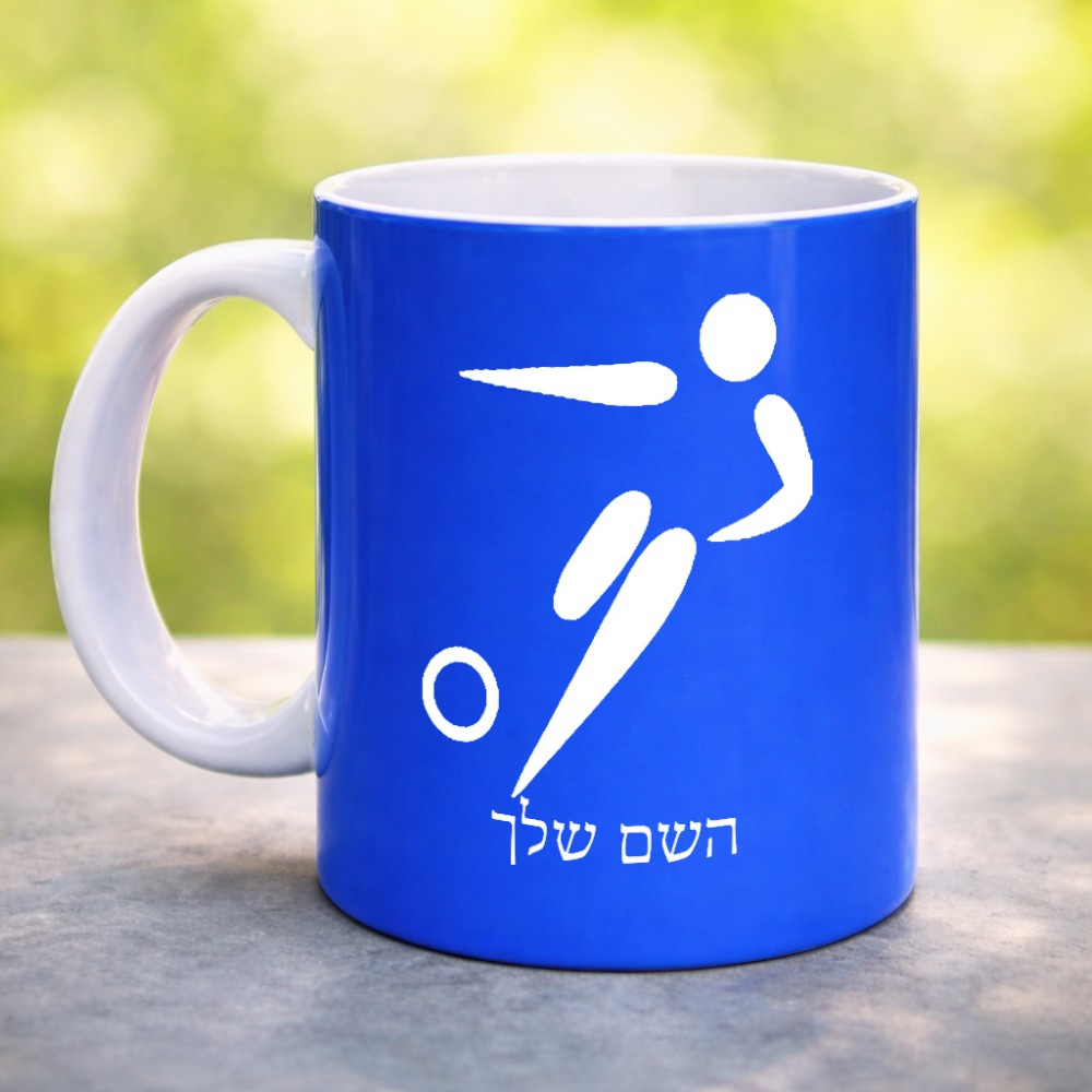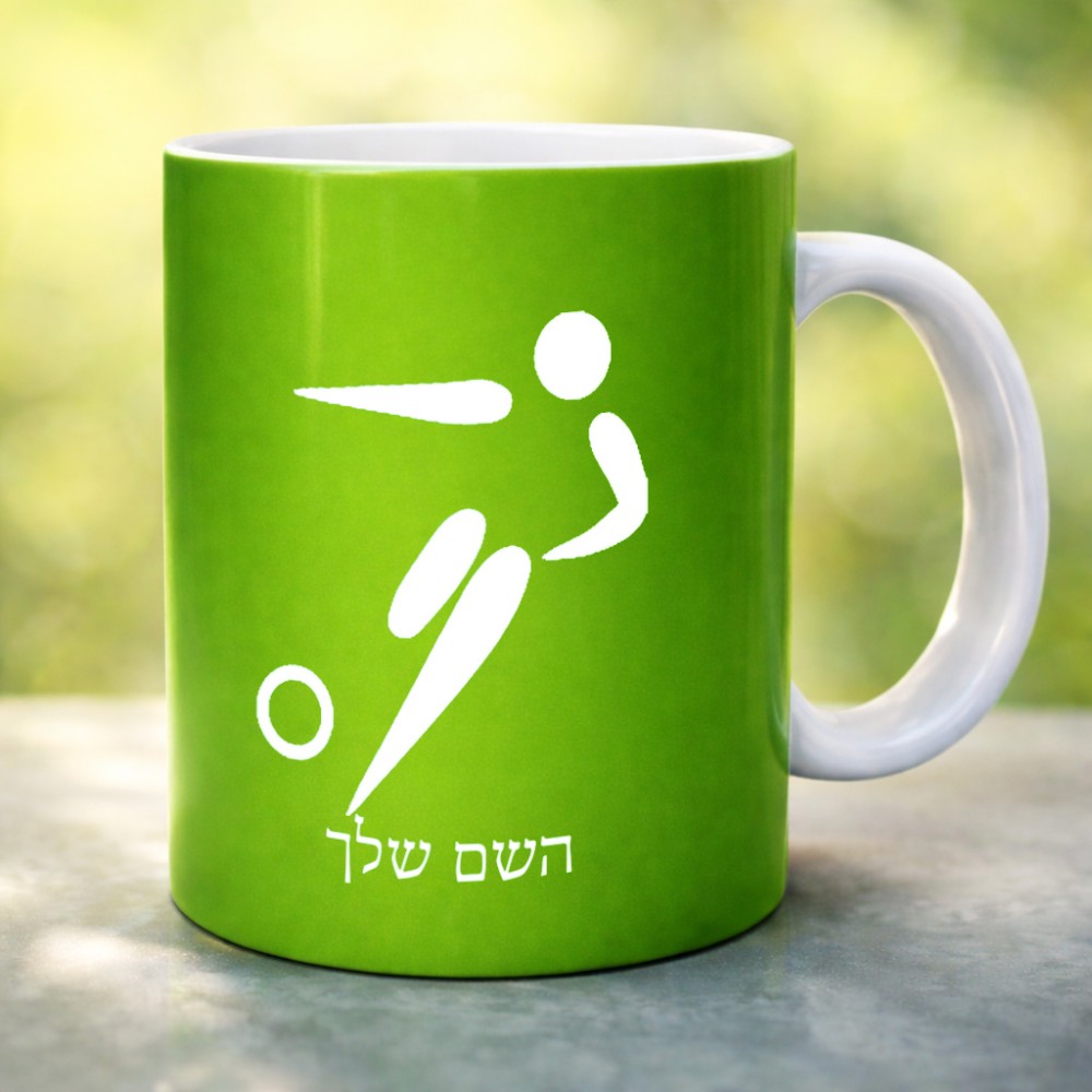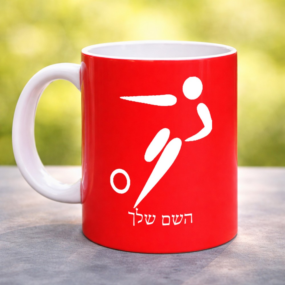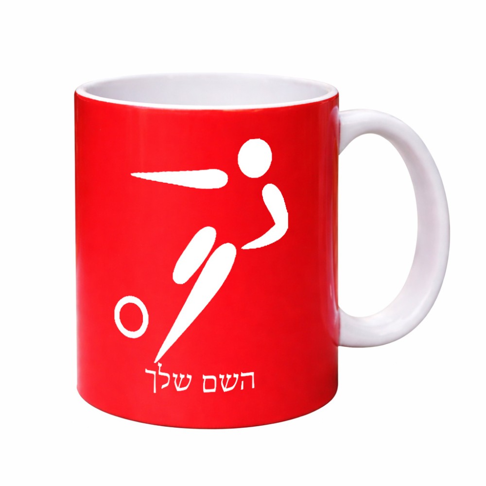 ספל תה \ קפה בעיצוב אישי עם השם שלך בעיצוב כדורגל אולימפי גדול הספל 325 מ"ל, הספל בעלת ידית לאחיזה יציבה. את השם המבוקש ניתן לציין בהזמנה, אם לא צויין אנחנו ניצור קשר לבירור.