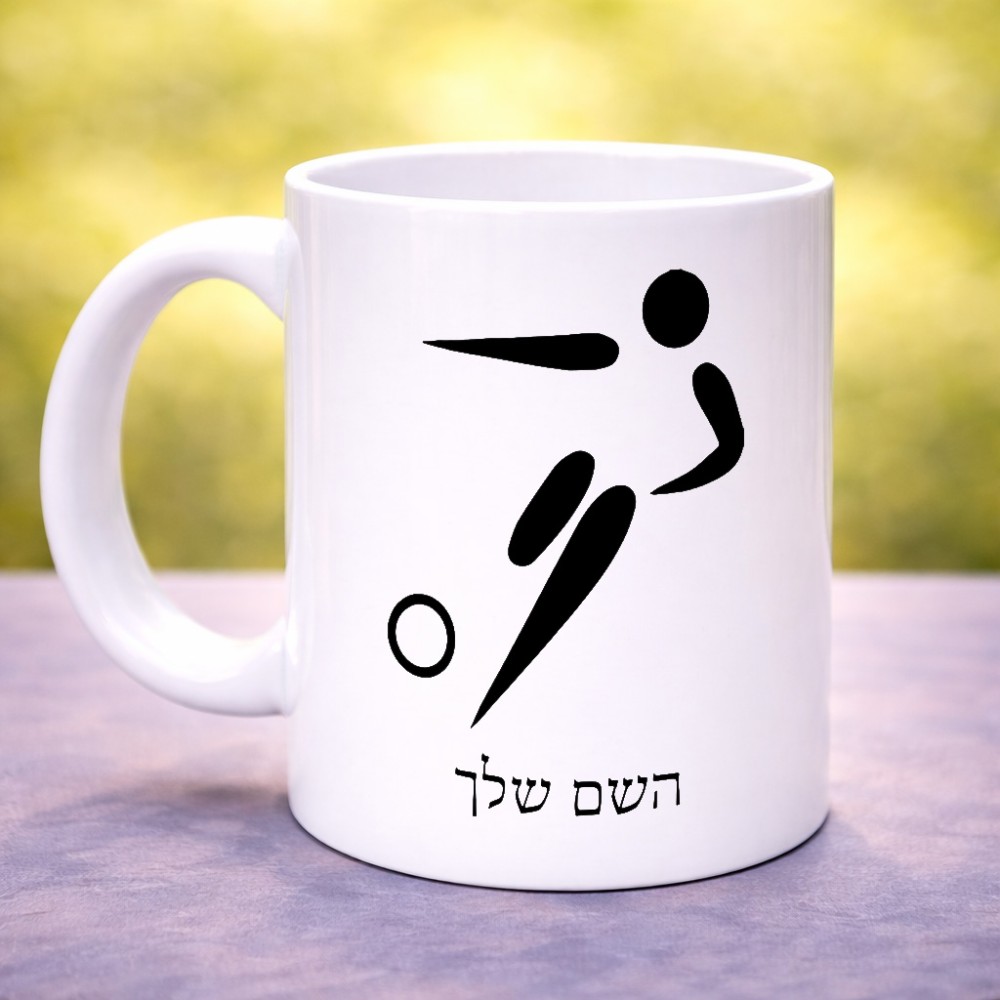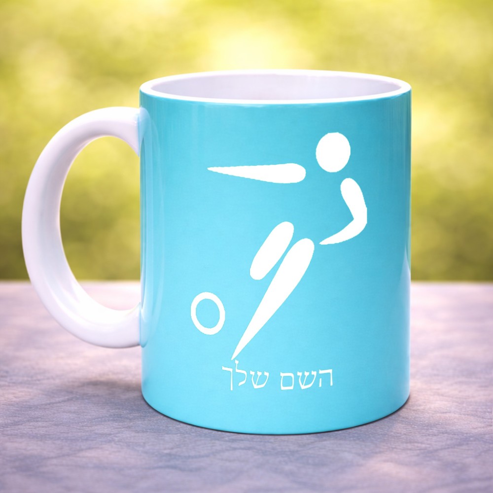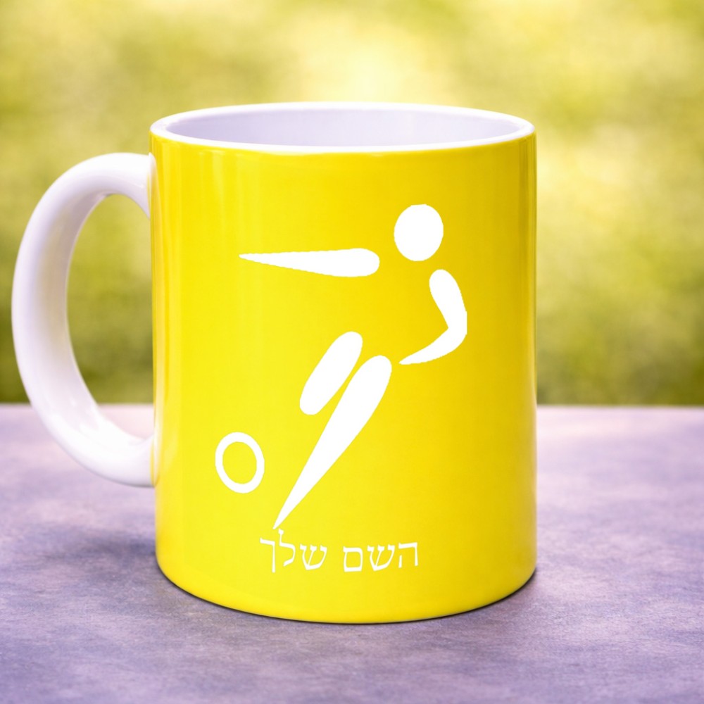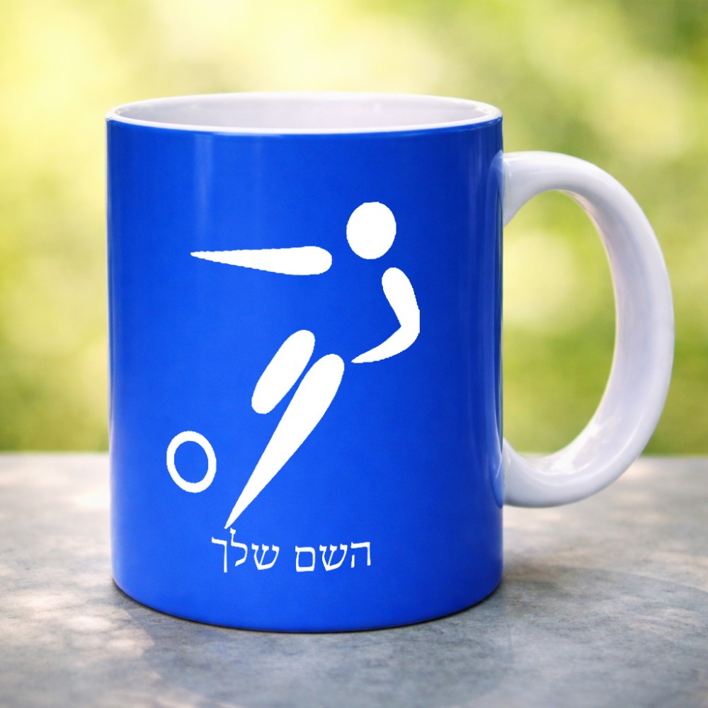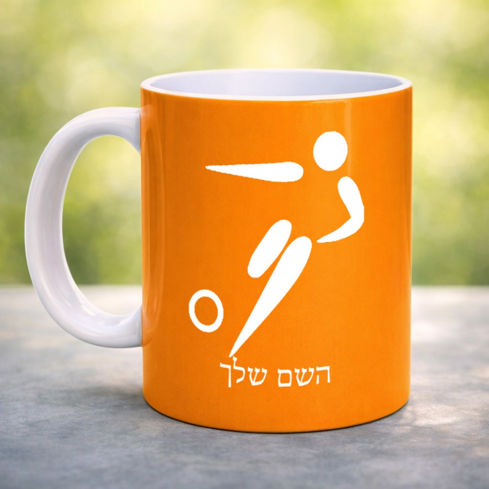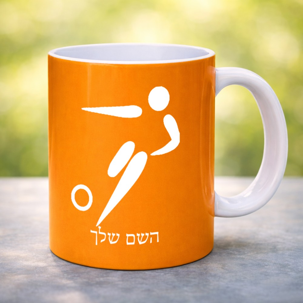 ספל תה \ קפה בעיצוב אישי עם השם שלך בעיצוב כדורגל אולימפי גדול הספל 325 מ"ל, הספל בעלת ידית לאחיזה יציבה. את השם המבוקש ניתן לציין בהזמנה, אם לא צויין אנחנו ניצור קשר לבירור.