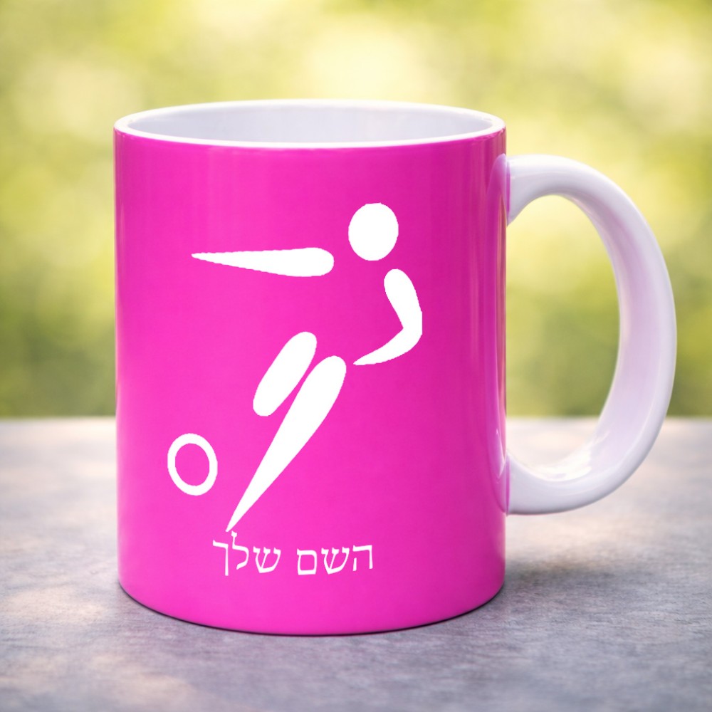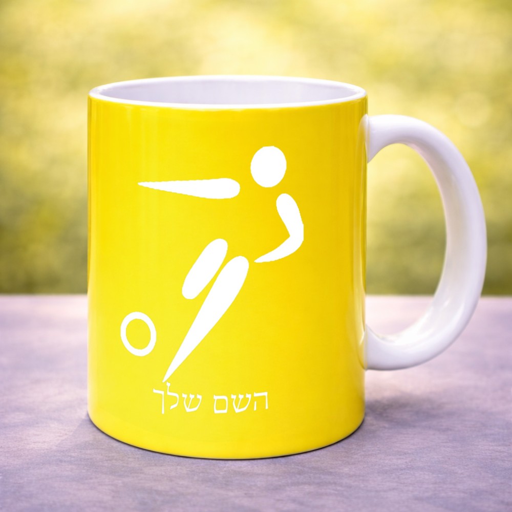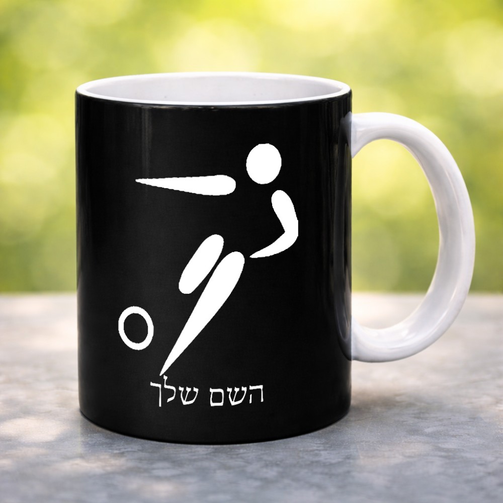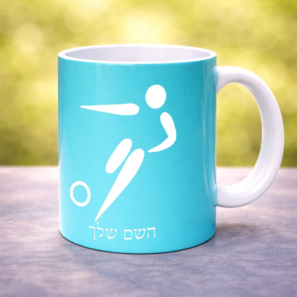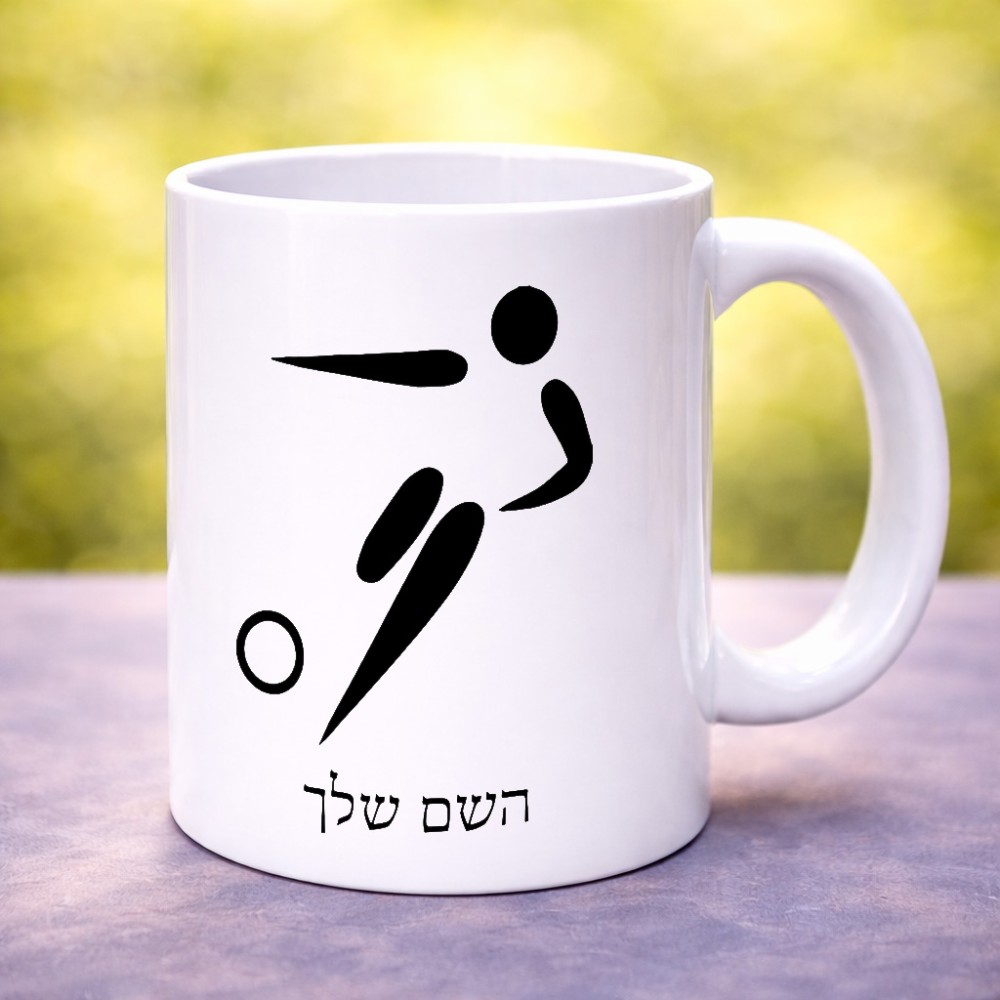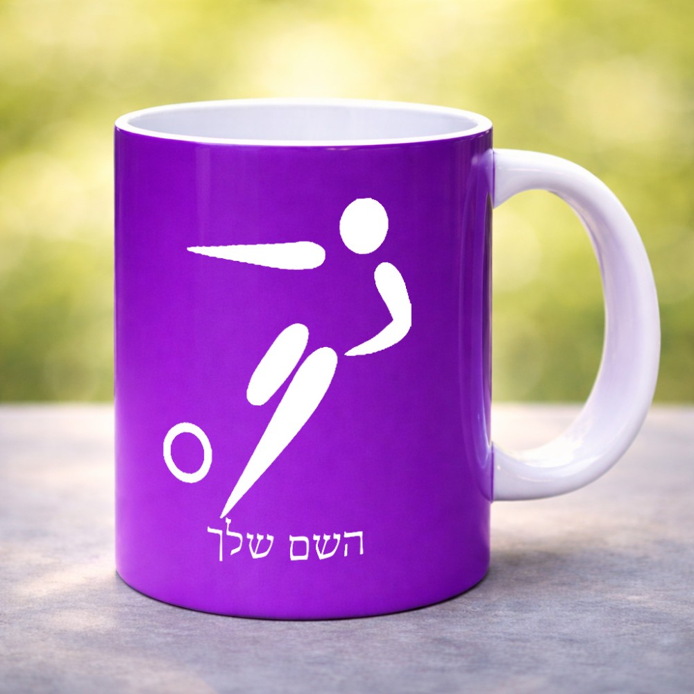 ספל תה \ קפה בעיצוב אישי עם השם שלך בעיצוב כדורגל אולימפי גדול הספל 325 מ"ל, הספל בעלת ידית לאחיזה יציבה. את השם המבוקש ניתן לציין בהזמנה, אם לא צויין אנחנו ניצור קשר לבירור.